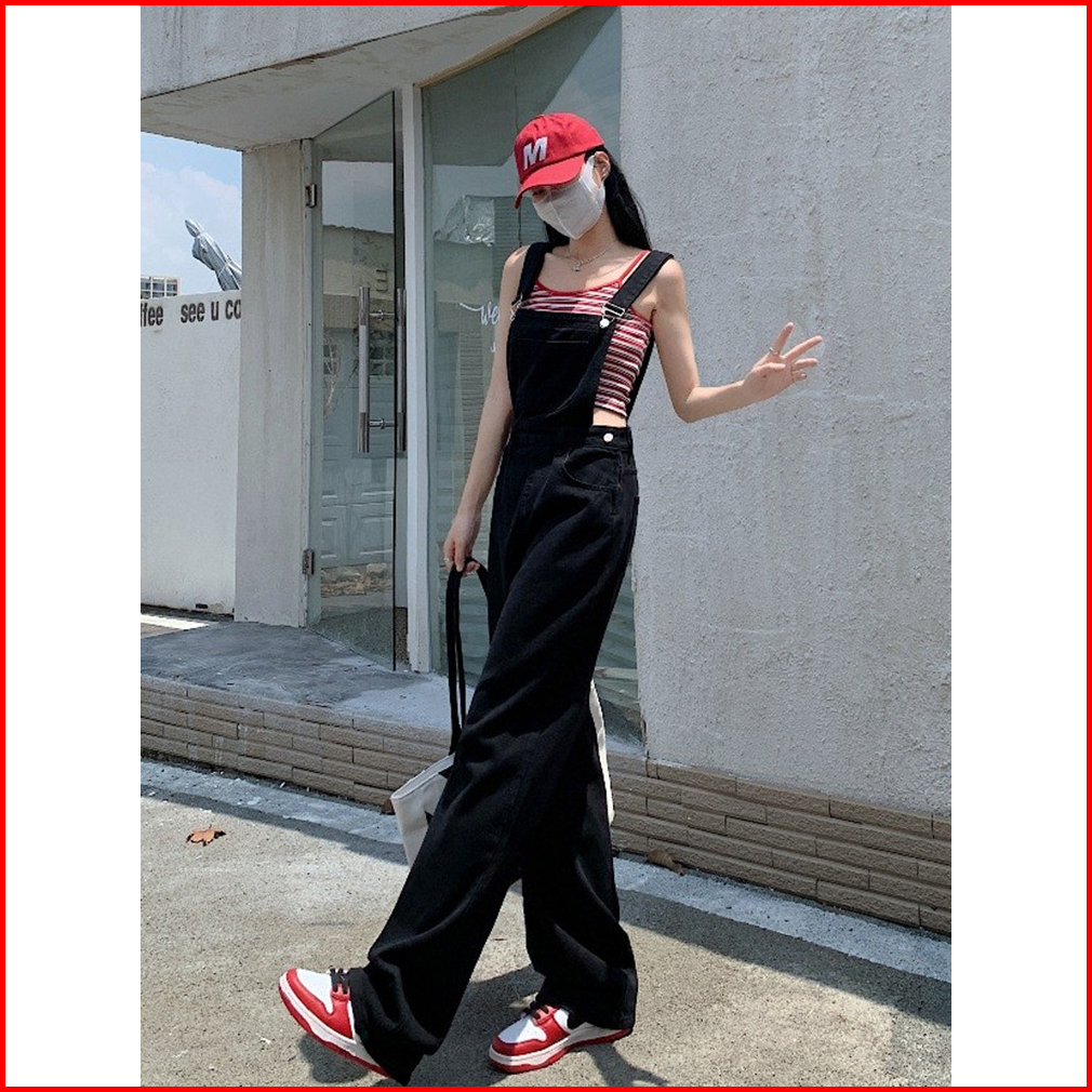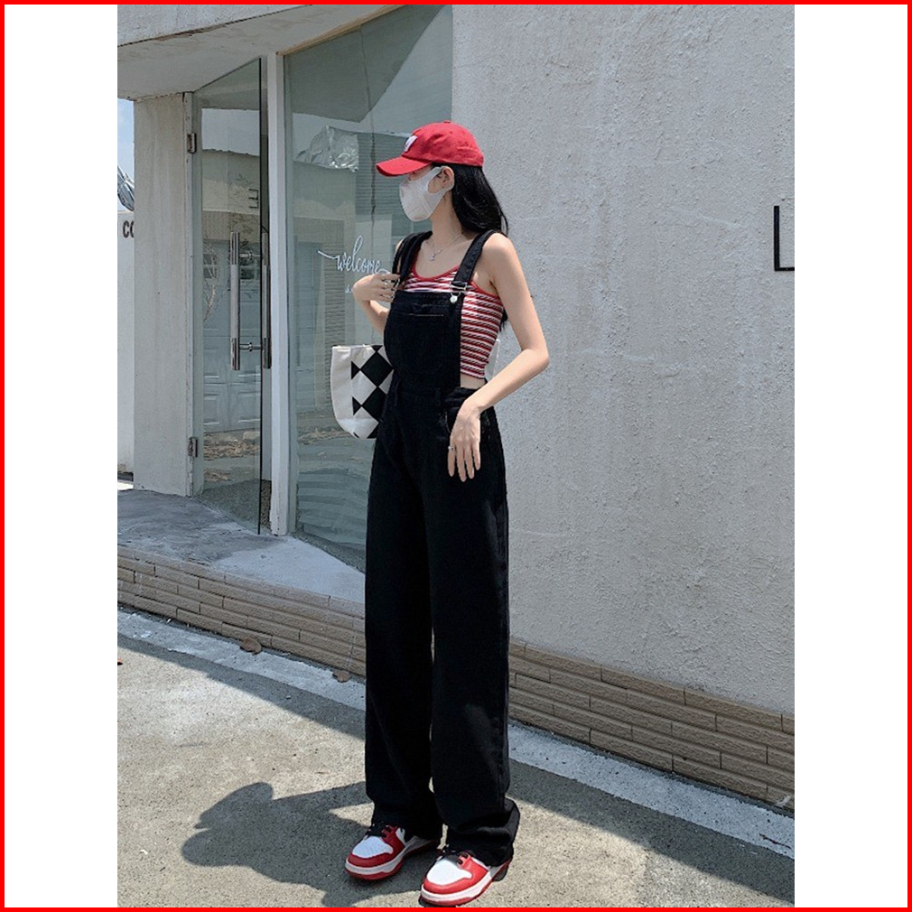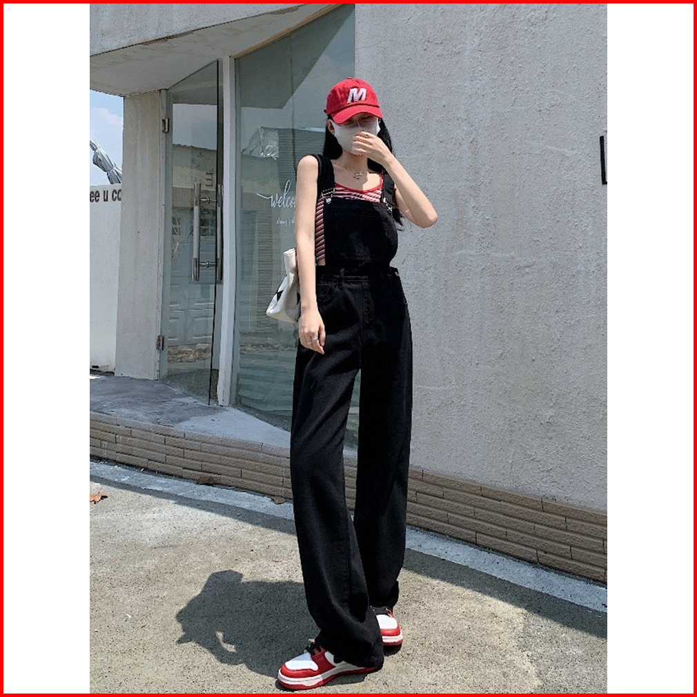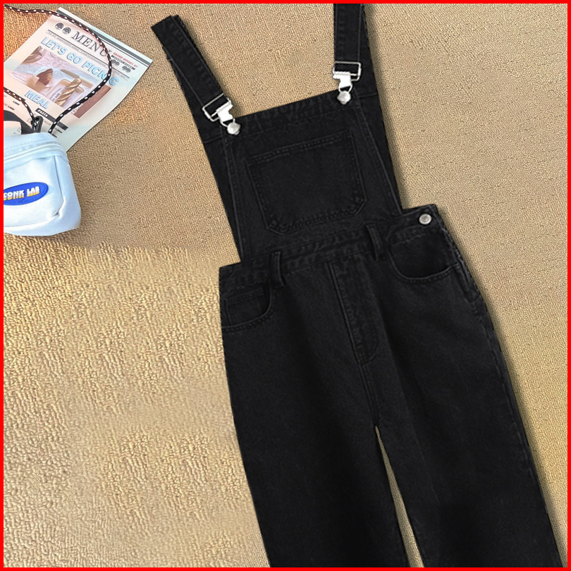Po Floret Jumpsuit Denim Wanita Jumpsuit Longgar Model Kaki Lurus Ramping Ala Korea Mengepel Lantai Celana Lebar Kaki