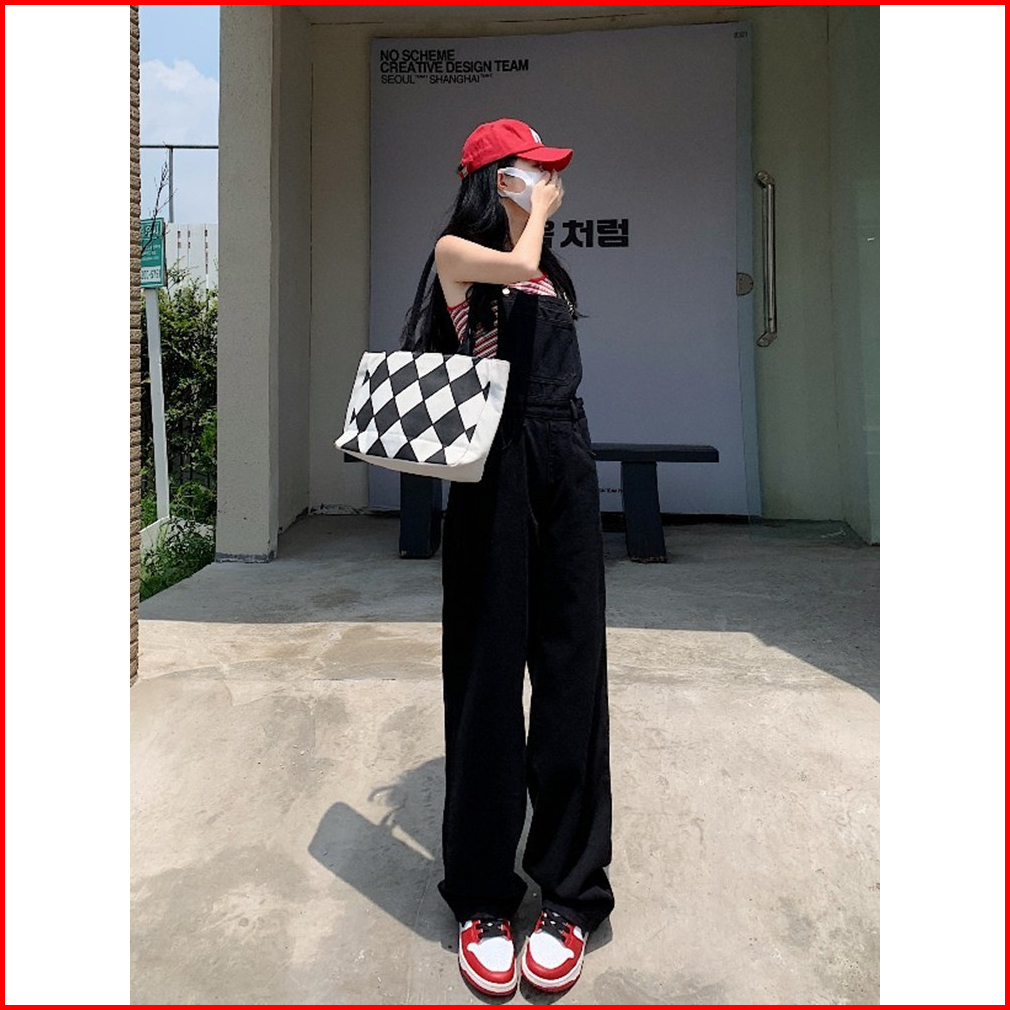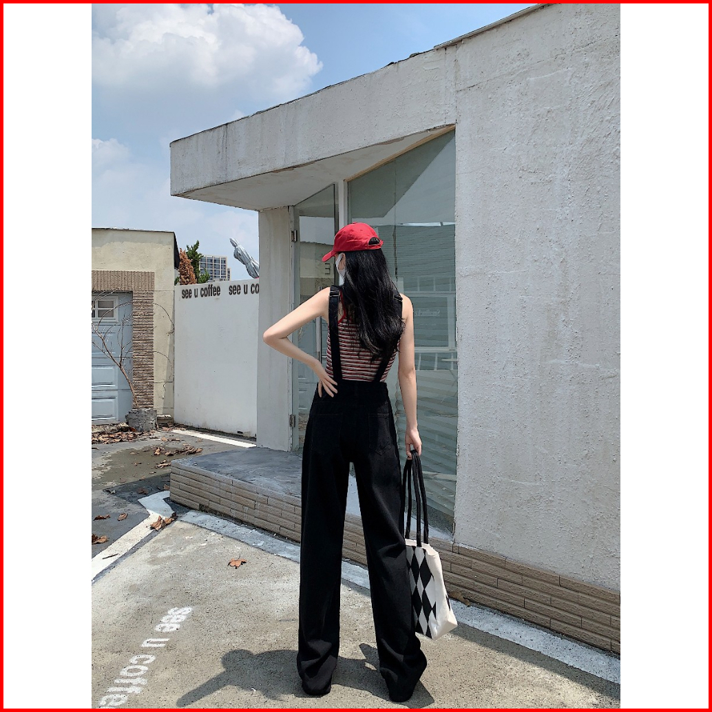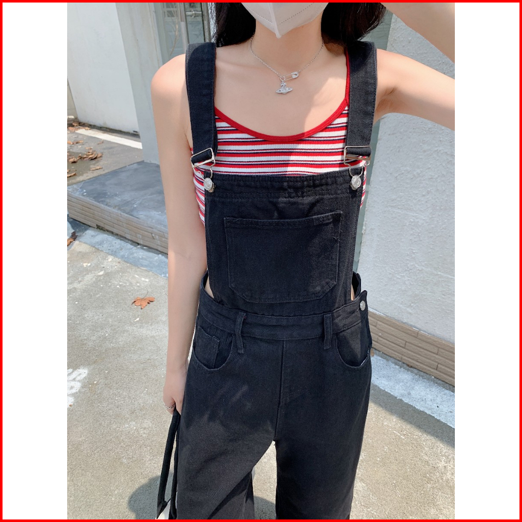Po Floret Jumpsuit Denim Wanita Jumpsuit Longgar Model Kaki Lurus Ramping Ala Korea Mengepel Lantai Celana Lebar Kaki