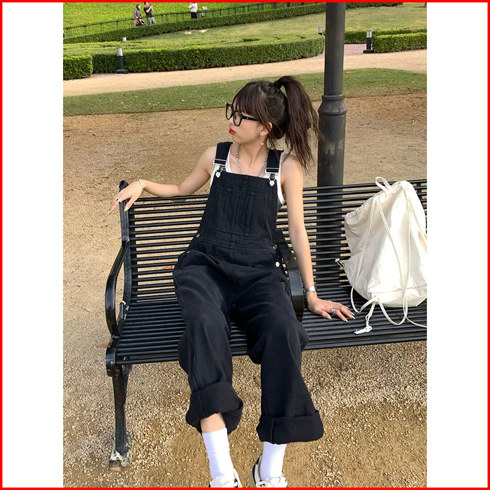 Overall Jeans Wanita Hitam Celana Kodok Jeans Jumpsuit Jeans Wanita