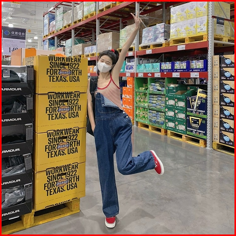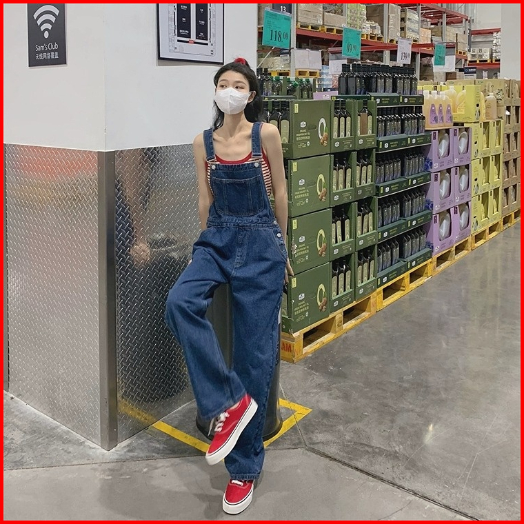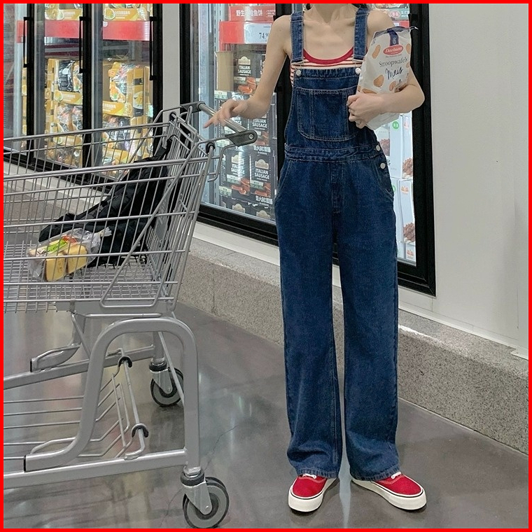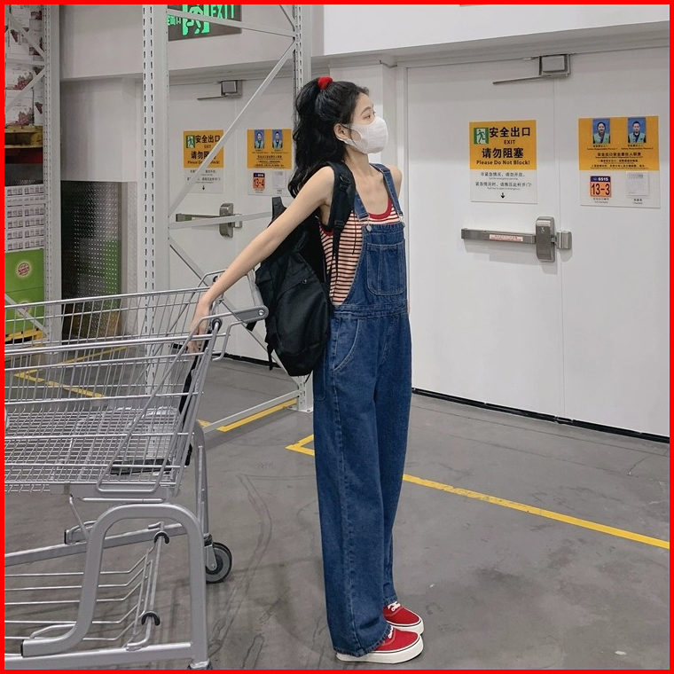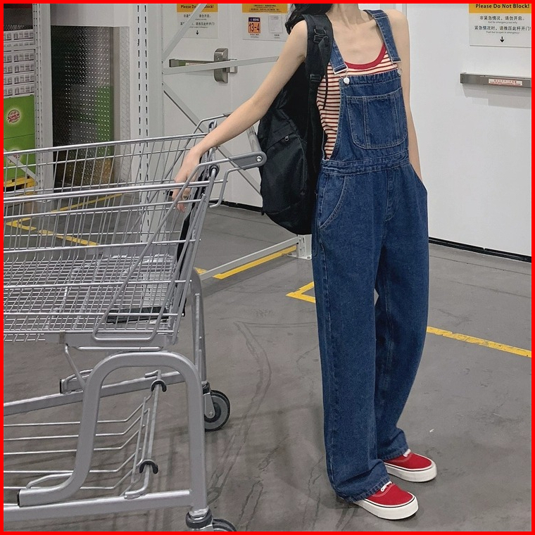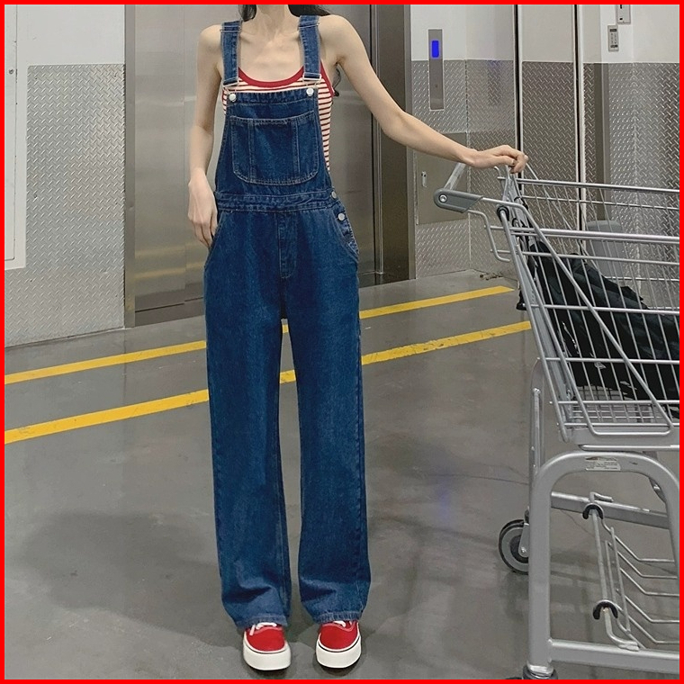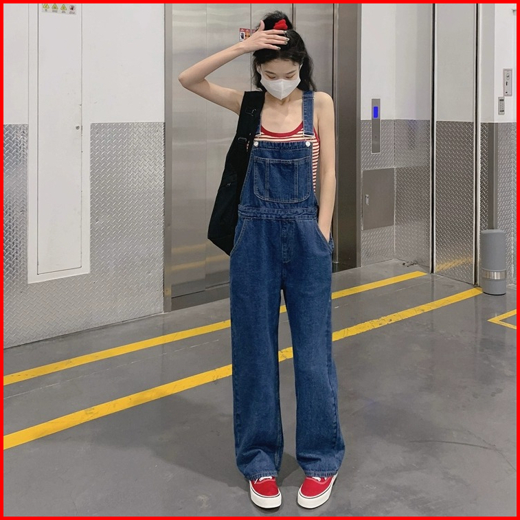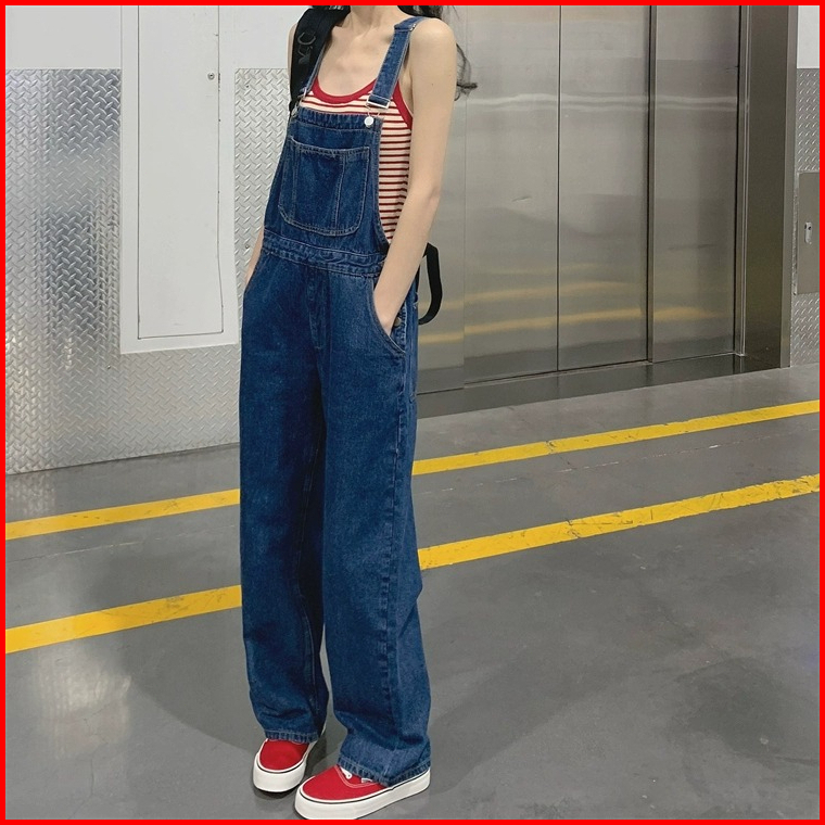 Ct Jeans Jumpsuit Jeans Wanita Overall Kaki Lebar Longgar Pinggang Tinggi Gaya Wanita Korean Style