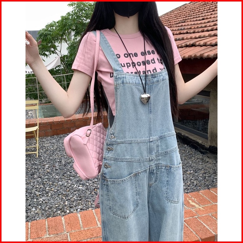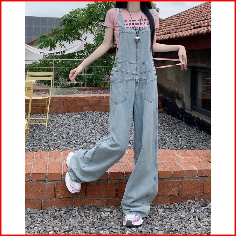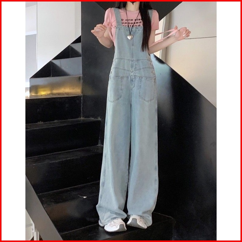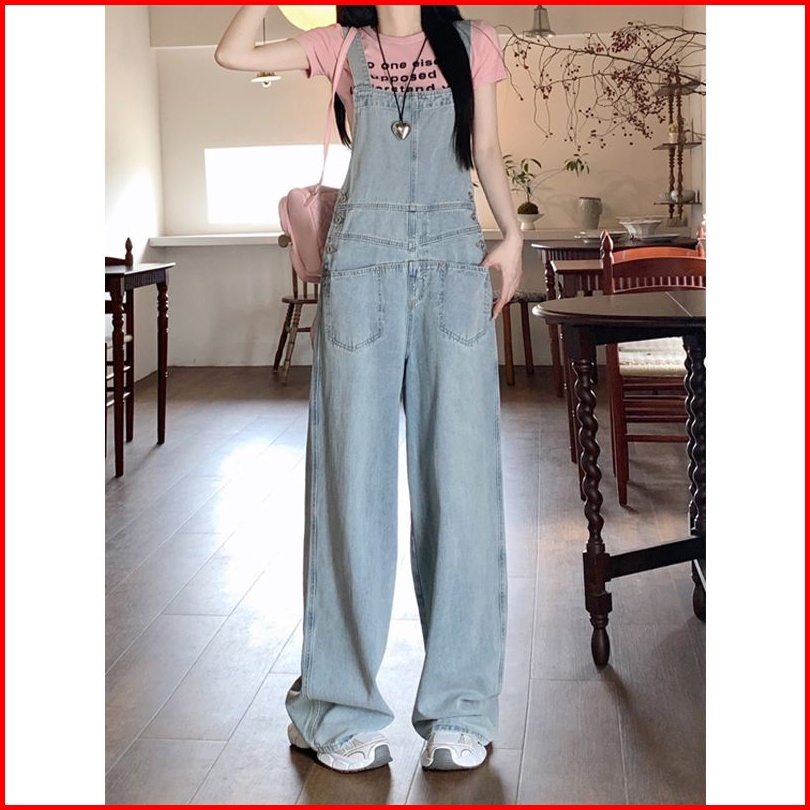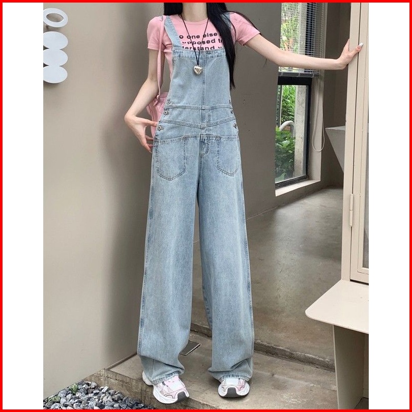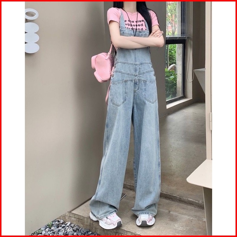 Celana Dungaree Wanita Dengan Pinggang Tinggi Dan Kaki Lebar