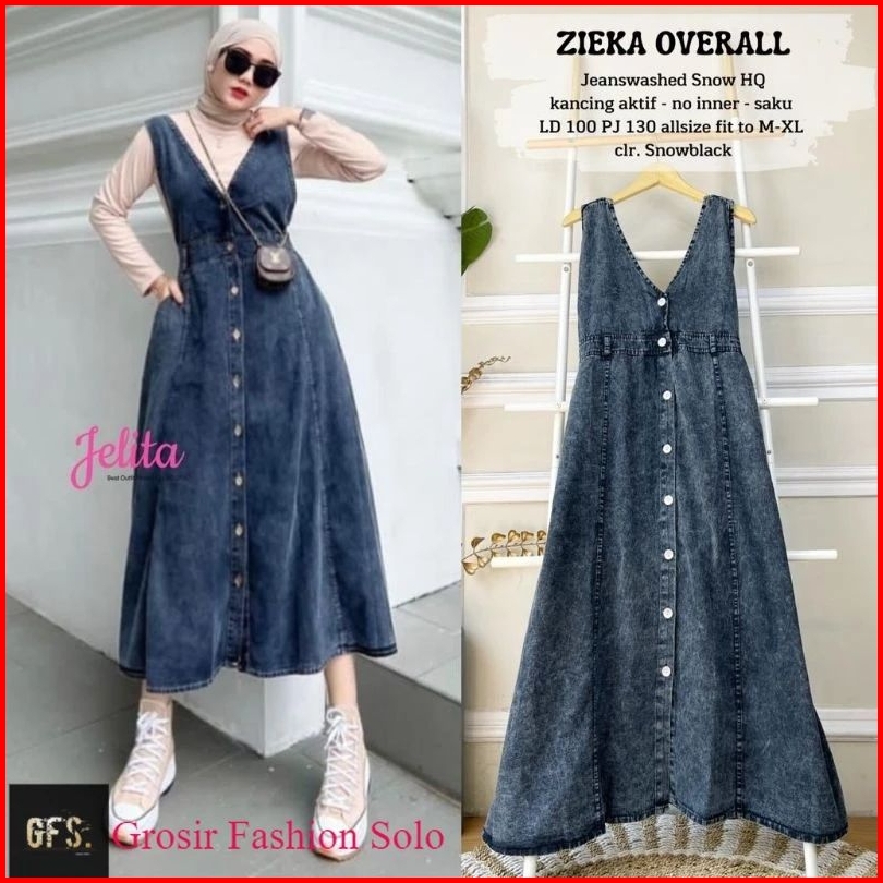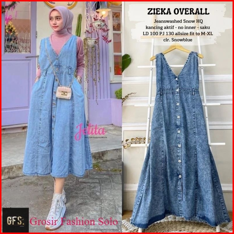 Zieka Overall Jeans Jumsuit Baju Kodok Wanita Kekinian Overall Dress Jeans Wanita Korean Style Terbaru