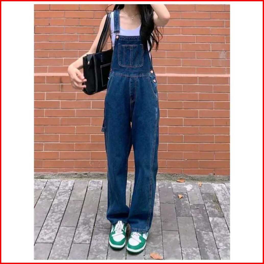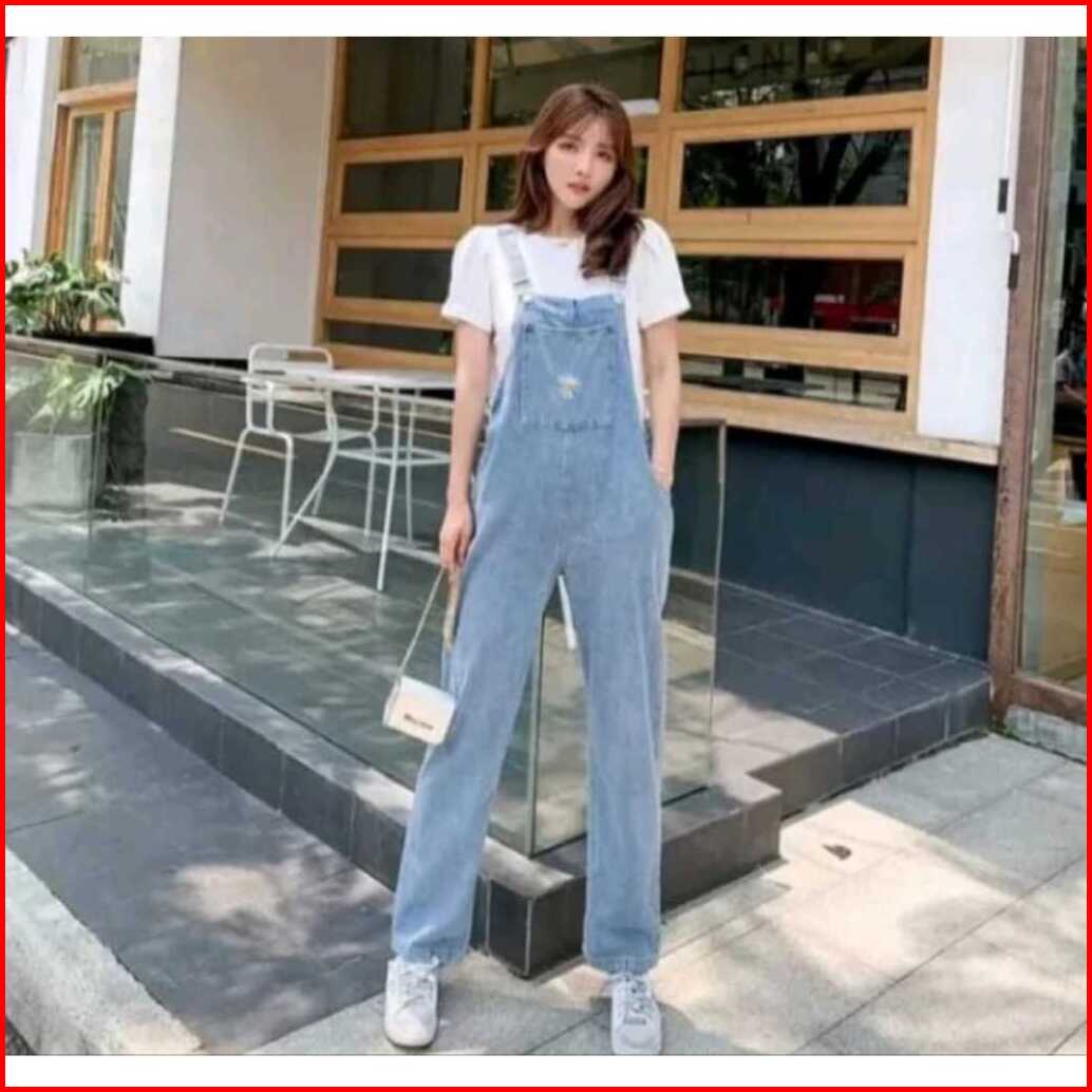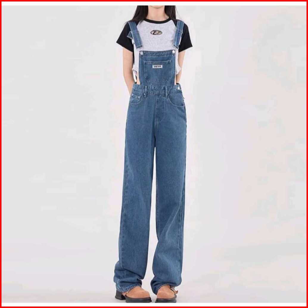 Promo Overall Jumsuit Jeans Wanita Dewasa Pinggang Tinggi Lurus Longgar Terbaru Celana Jeans Wanita