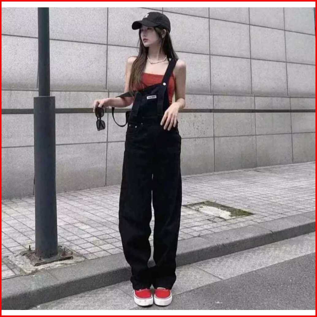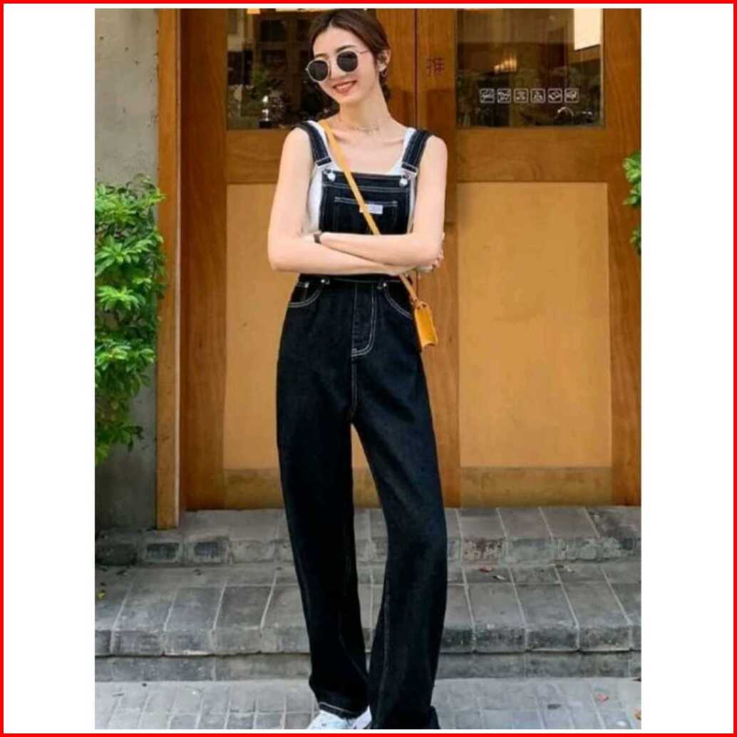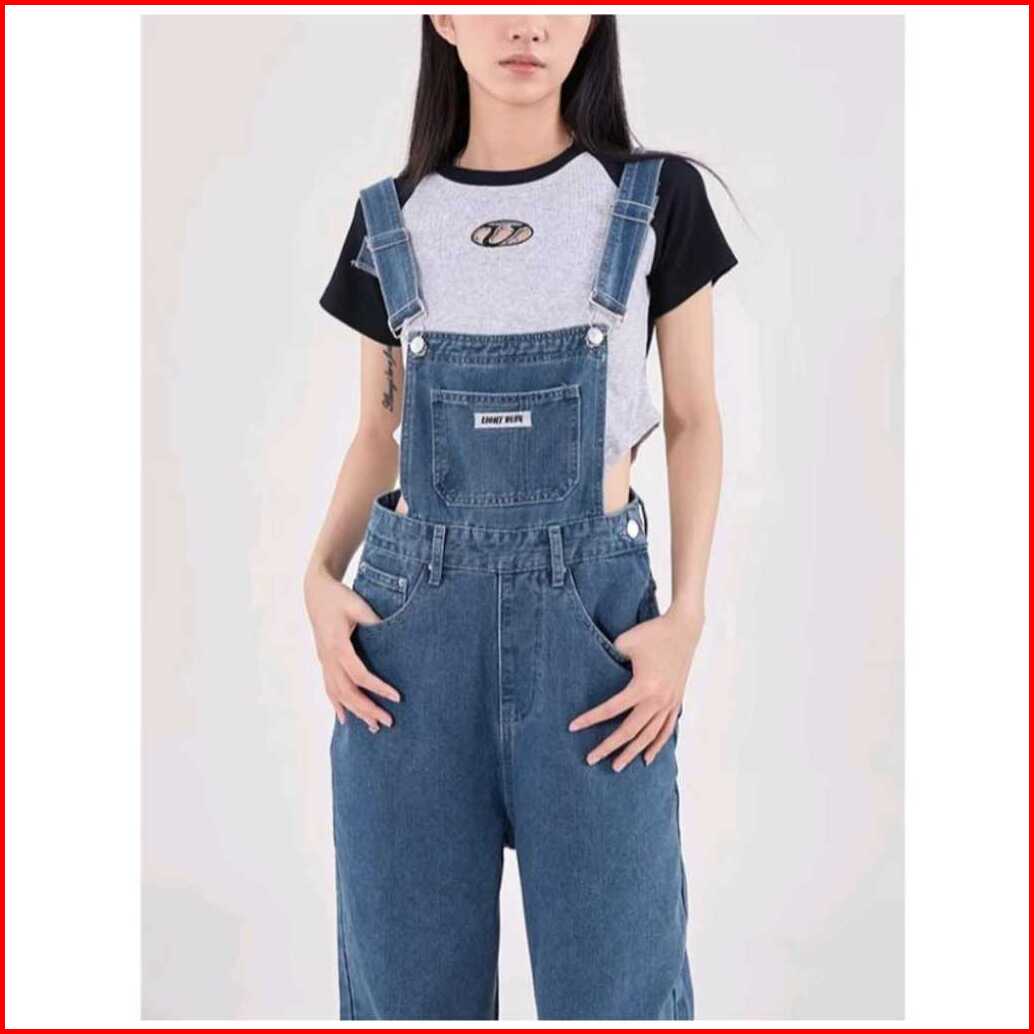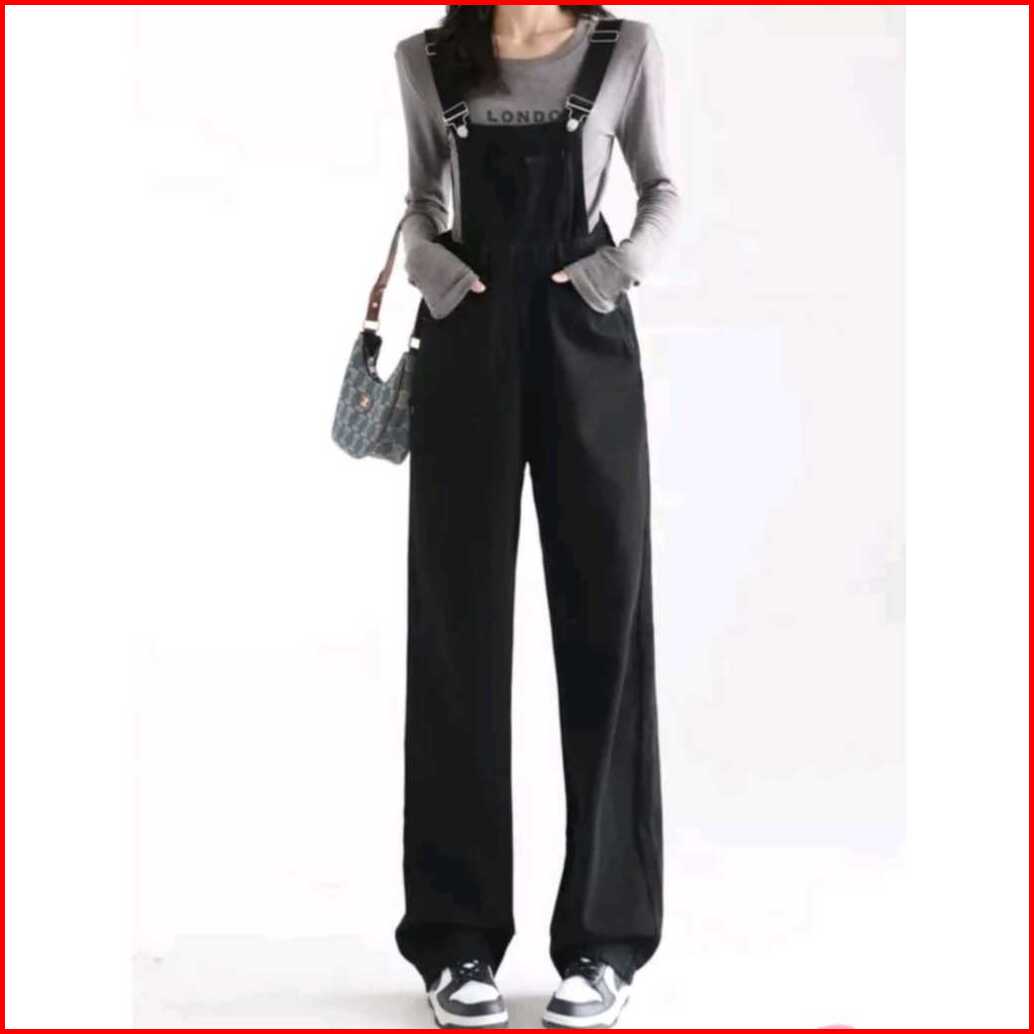 Promo Overall Jumsuit Jeans Wanita Dewasa Pinggang Tinggi Lurus Longgar Terbaru Celana Jeans Wanita