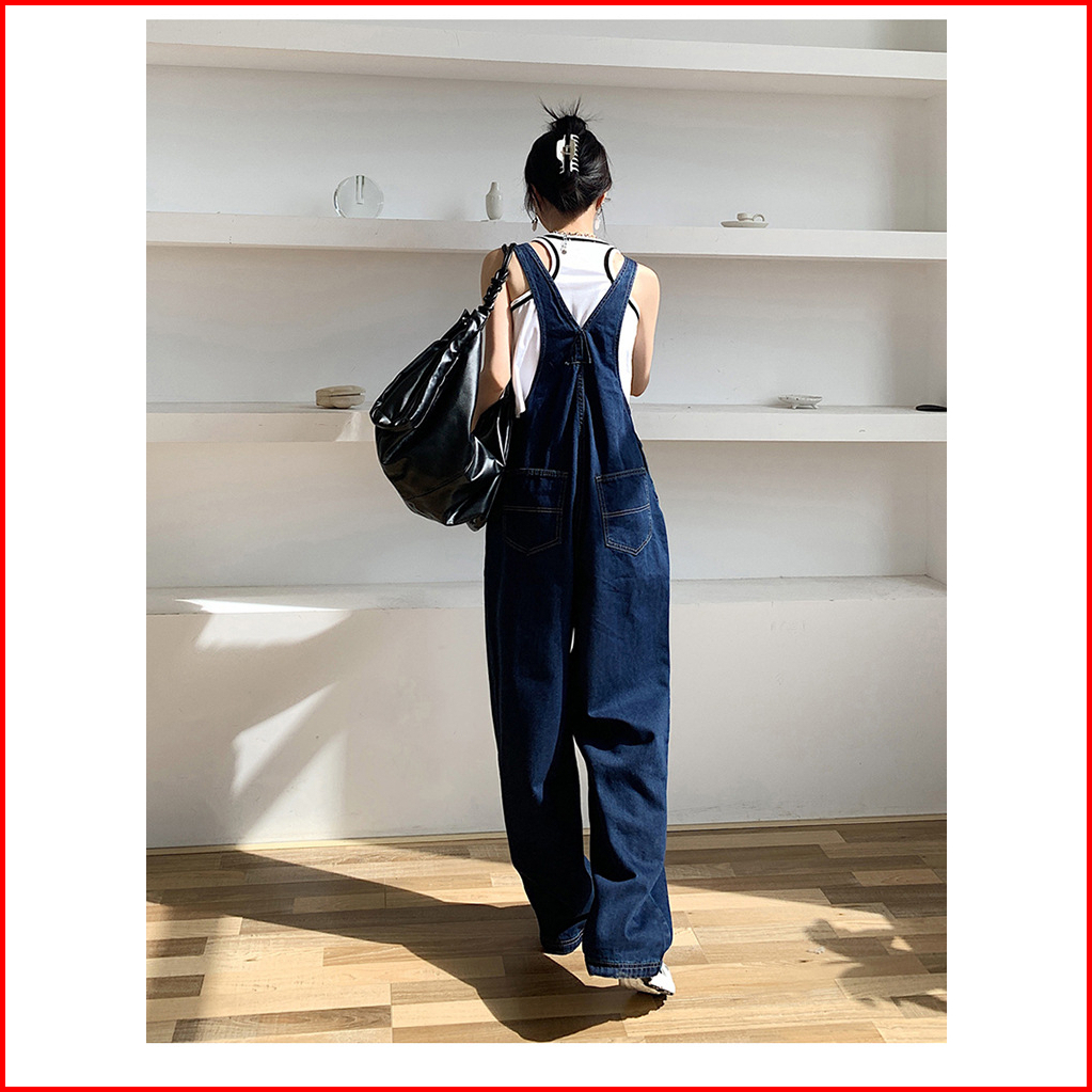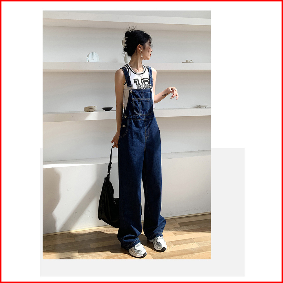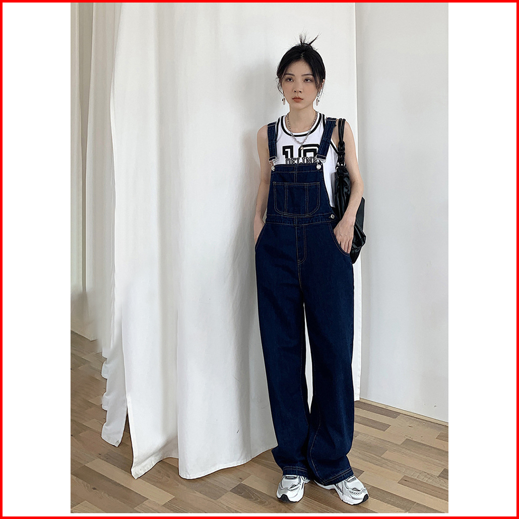 Overall Jeans Korean Navy Denim Wanita S-2xl
