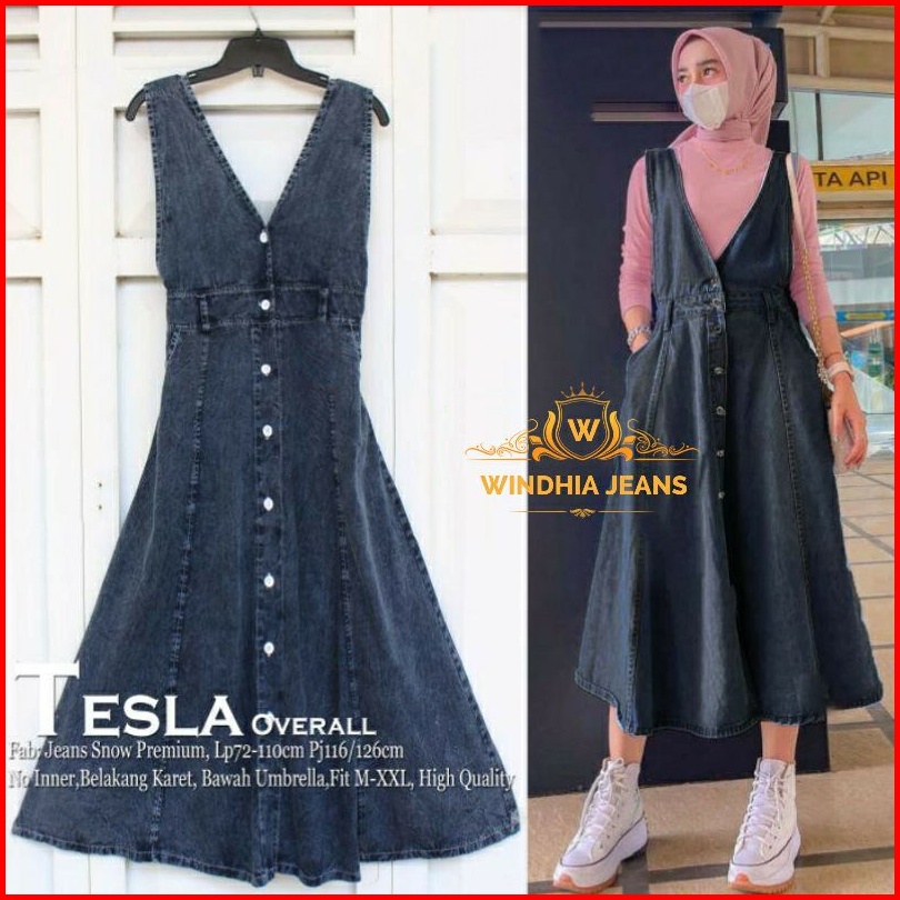 Tesla Overall Overal Rok Kodok Jeans Denim Wanita