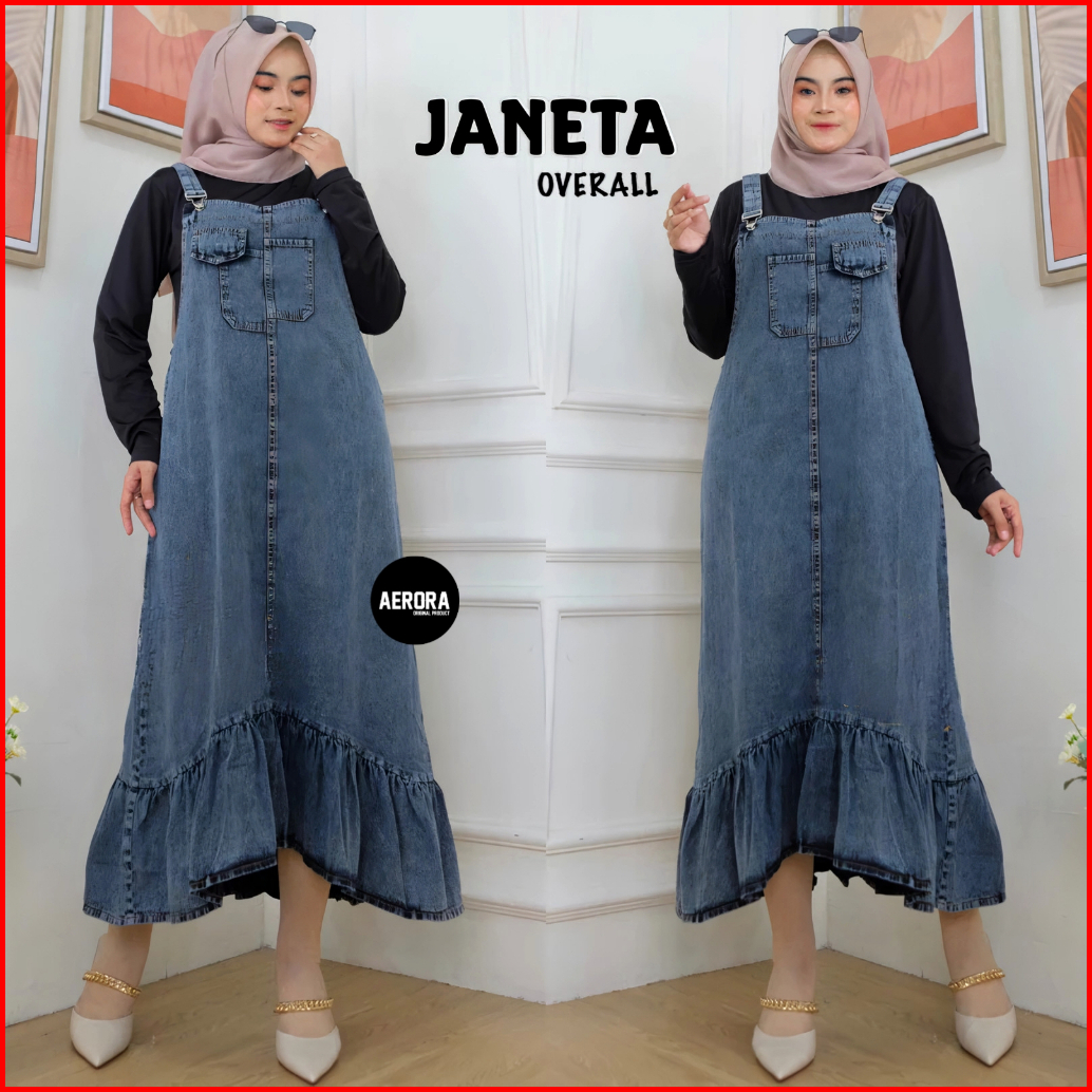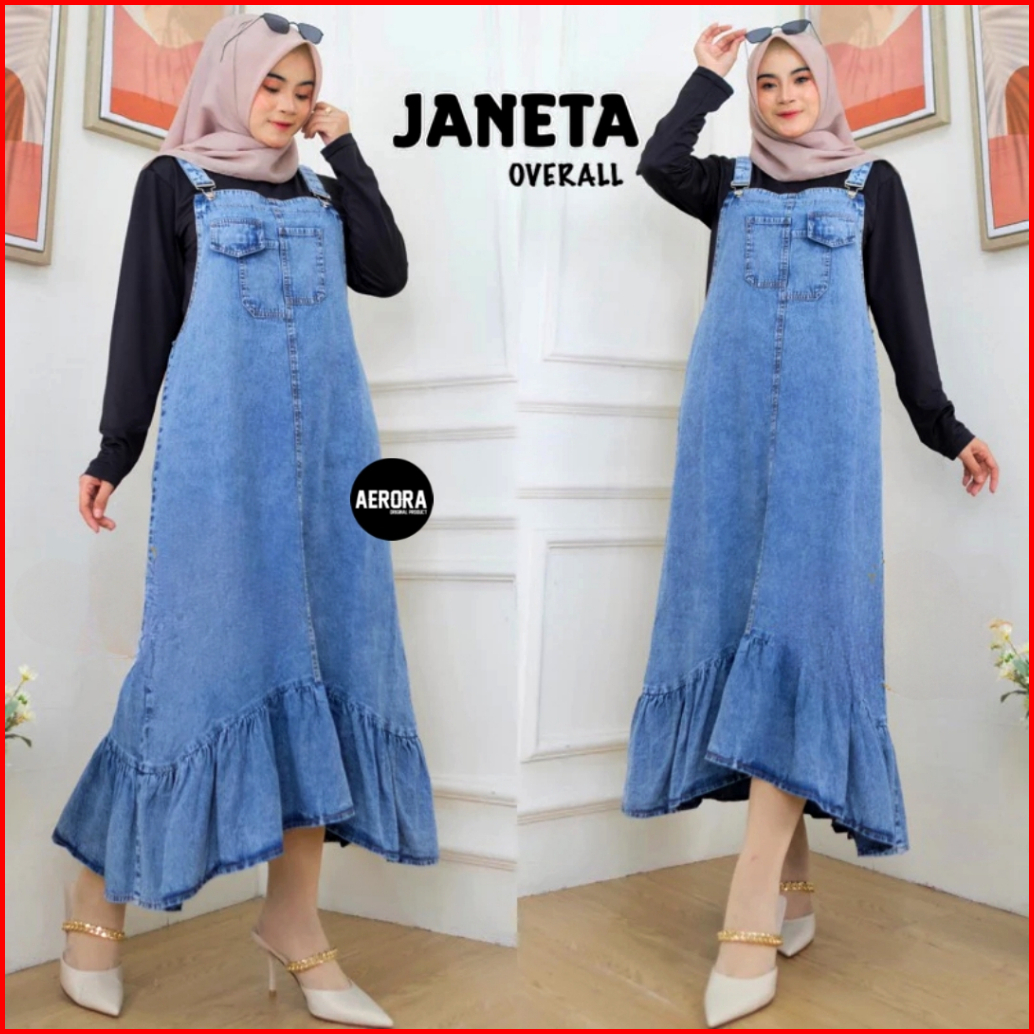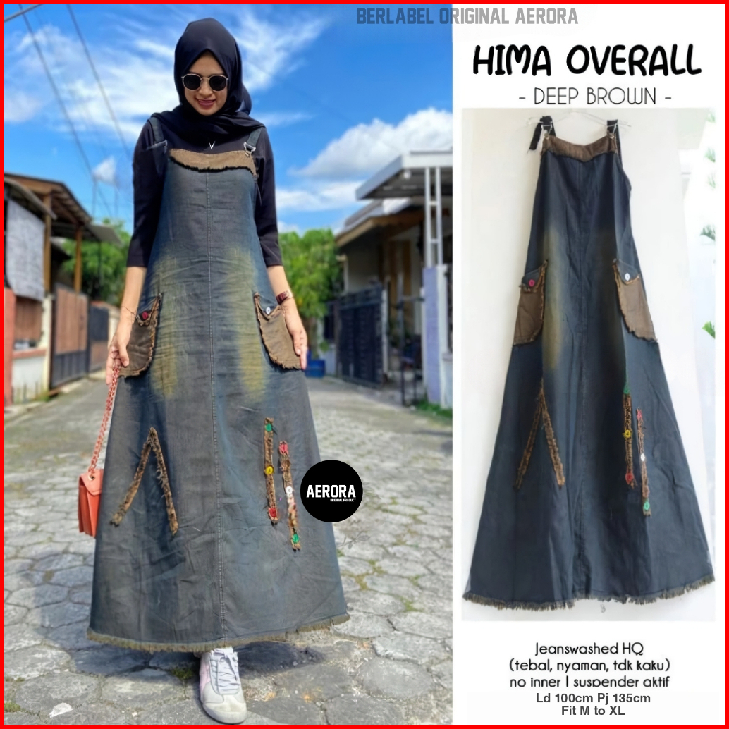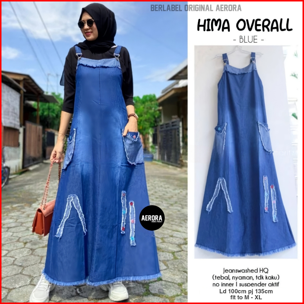 Aerora Baju Kodok Overall Overal Dress Jeans Wanita Motif Bordir Rawis Premium Terbaru 2025 Hima