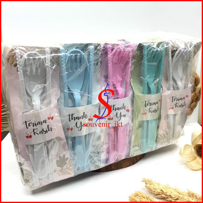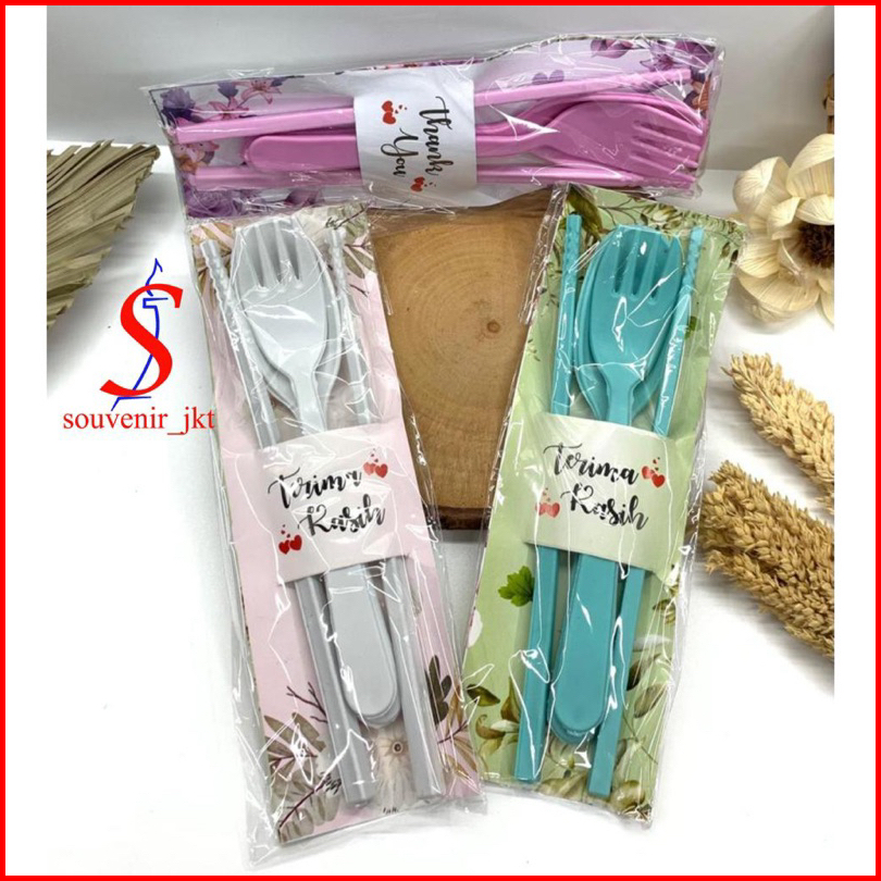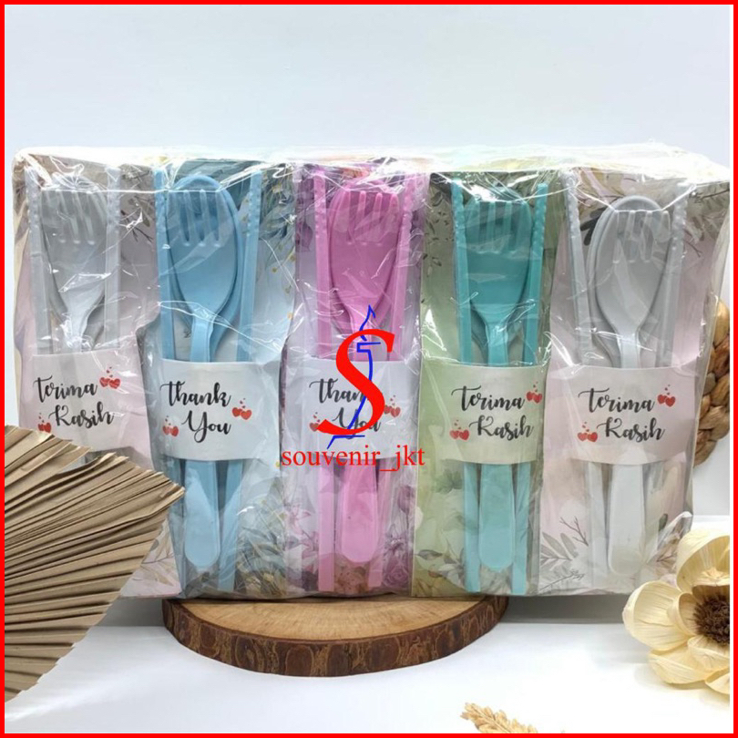 100pcs Souvenir Travel Set Lokal Sendok - Garpu- Sumpit Kemas Plastik Dan Alas Shaby