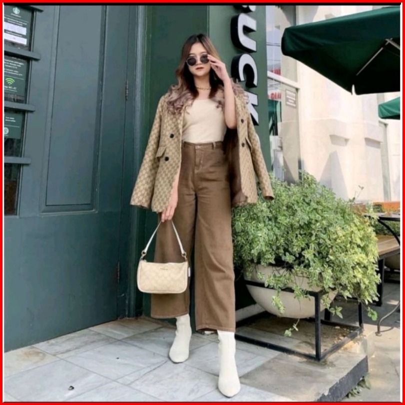 Bf Celana Bawahan Haigwaist Kulot Jeans Warna Mozza Jeans Culotte Wanita