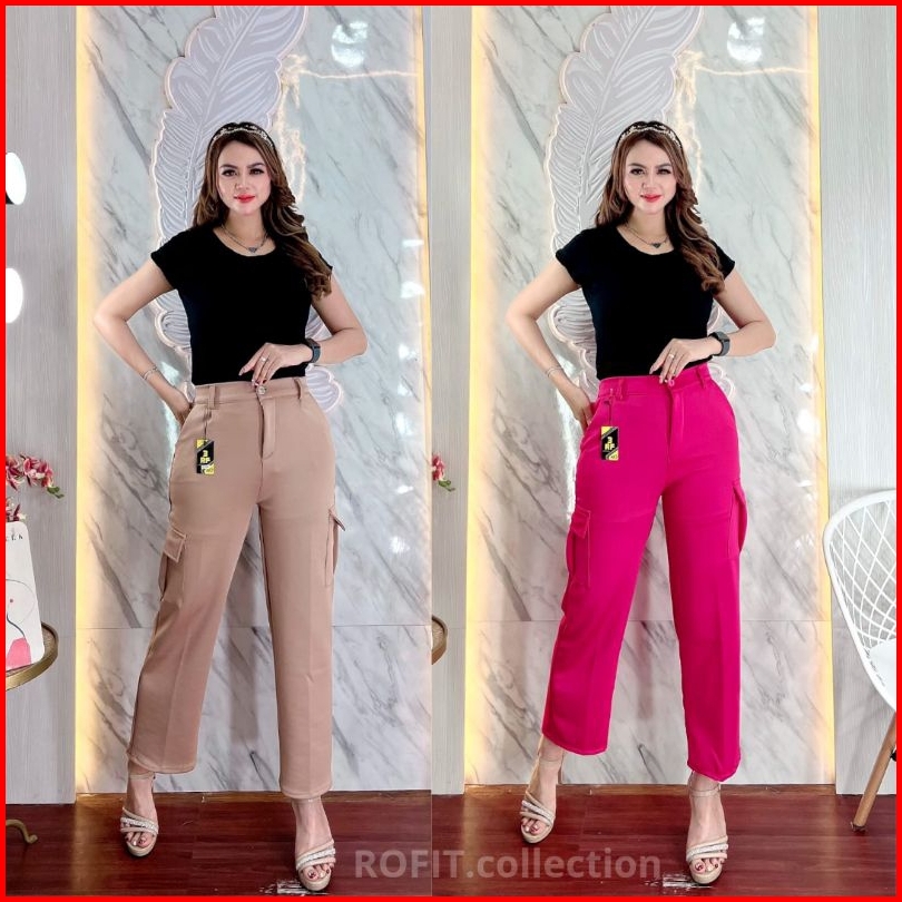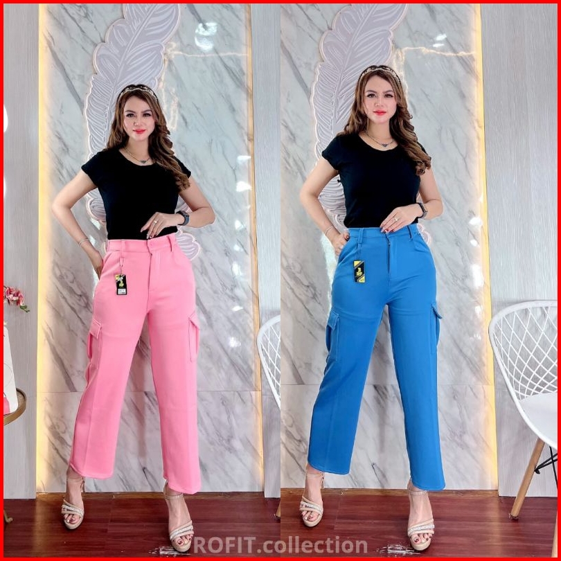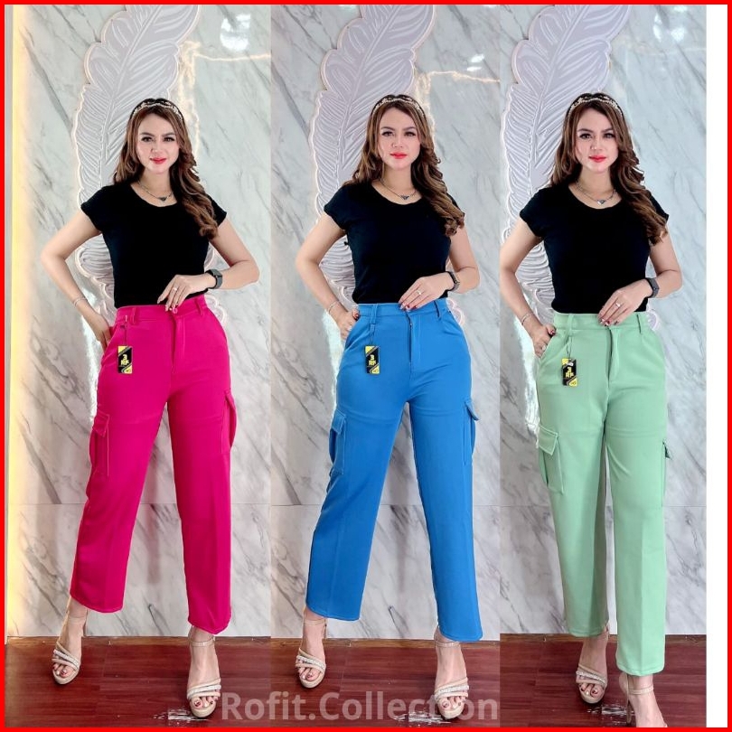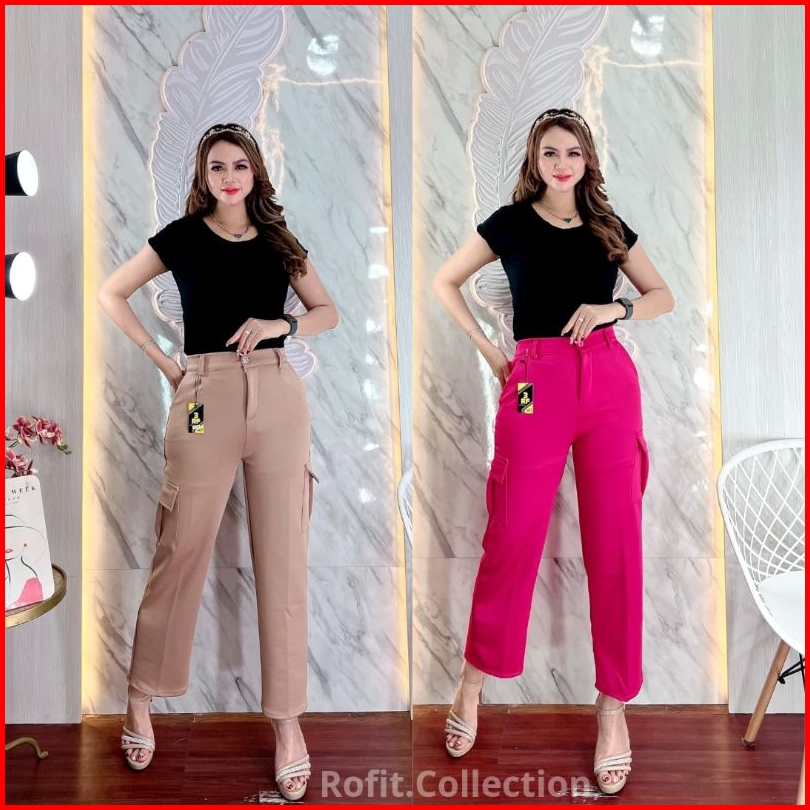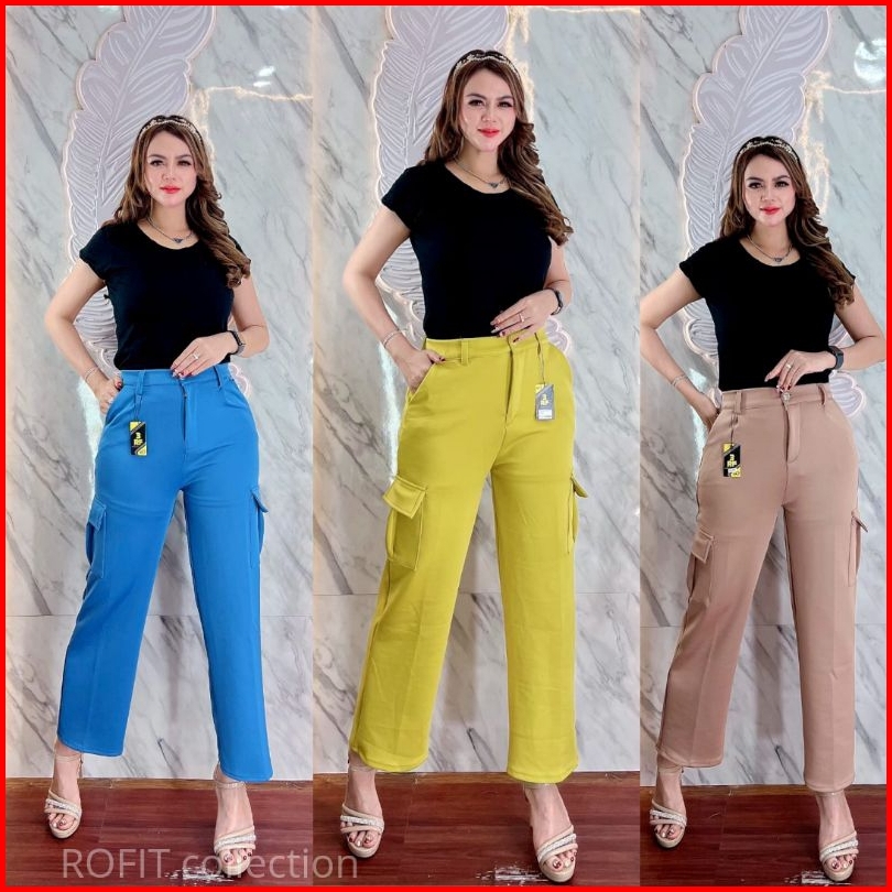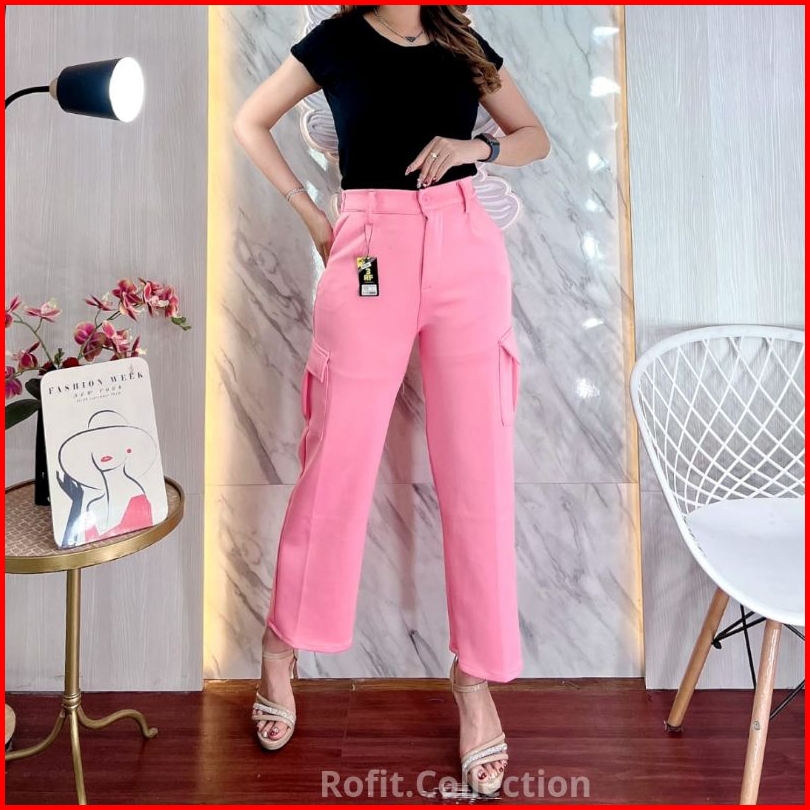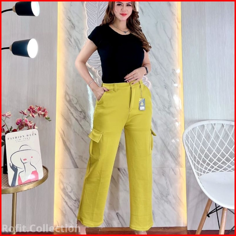 Cargo Pants Scuba Premium Wanita Celana Cargo Scuba Loose Pants Tebal