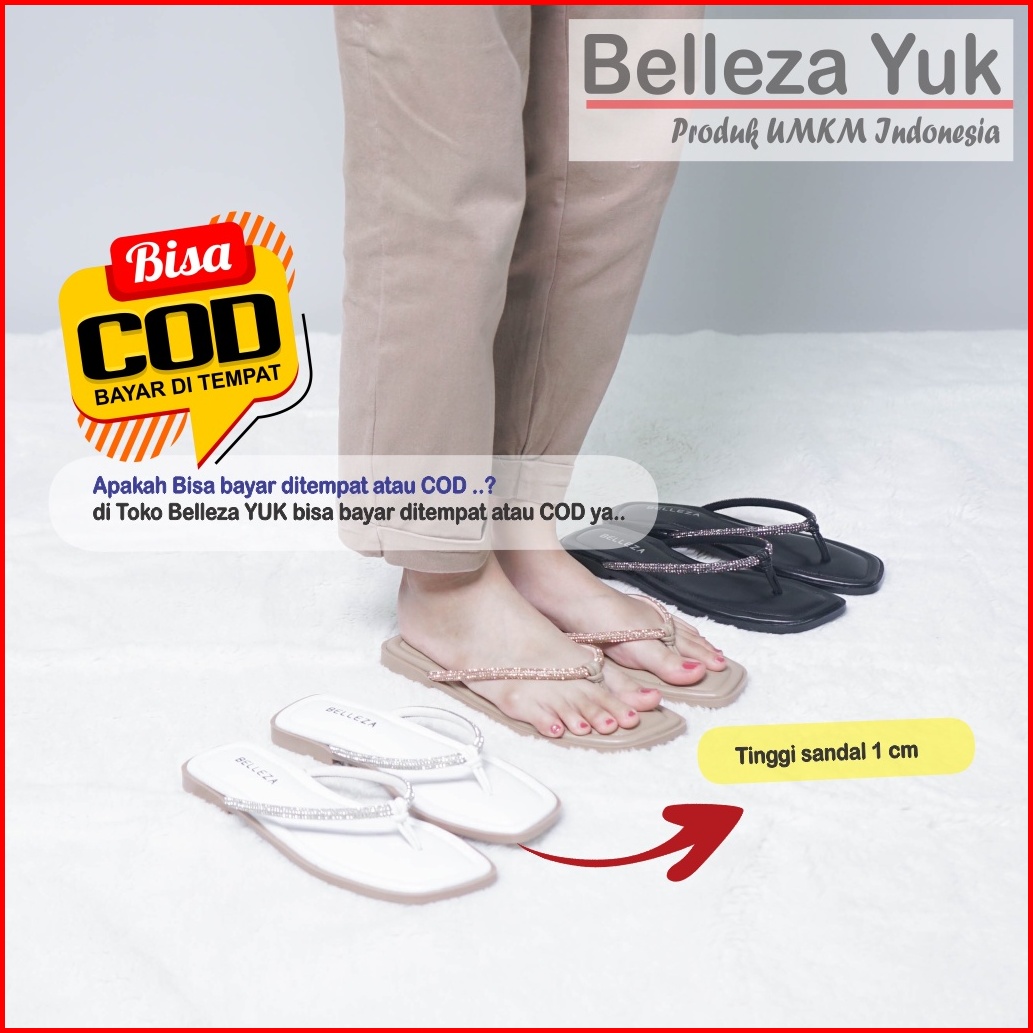 Belleza Yuk - Safi Sandal Wanita Jepit Blink Kristal Size 36 - 40 Beleza Sendal Teplek Flat Cewek Pergi Rumahan Belezza