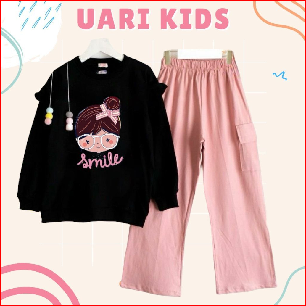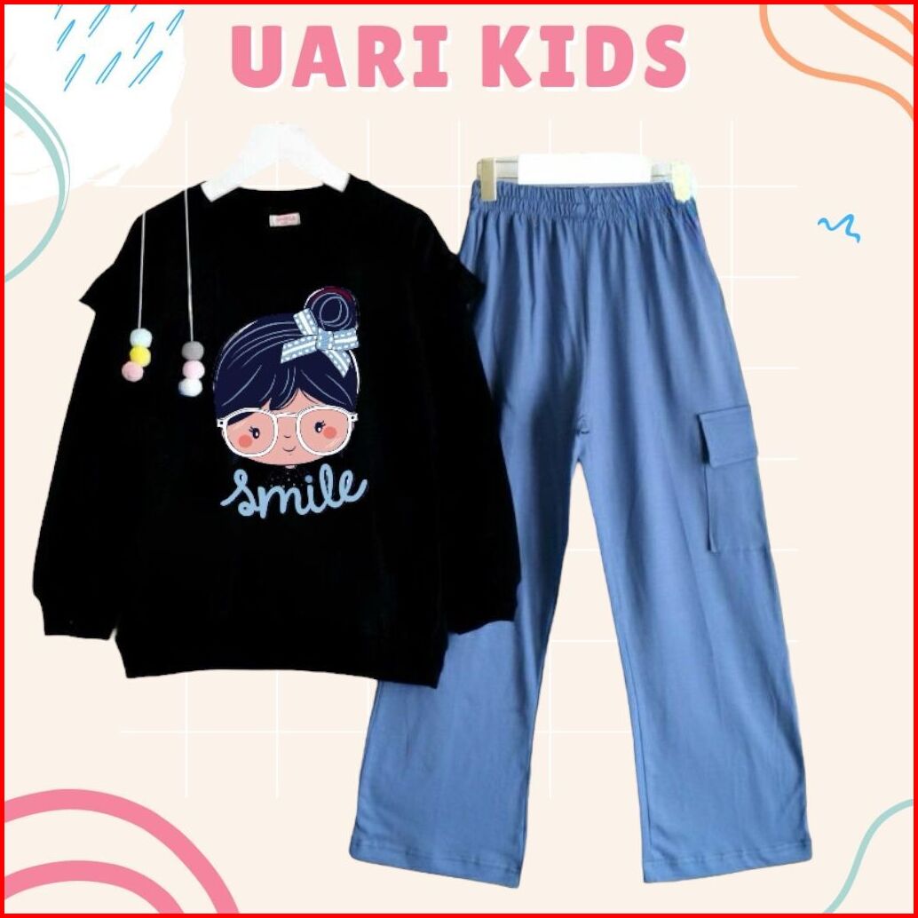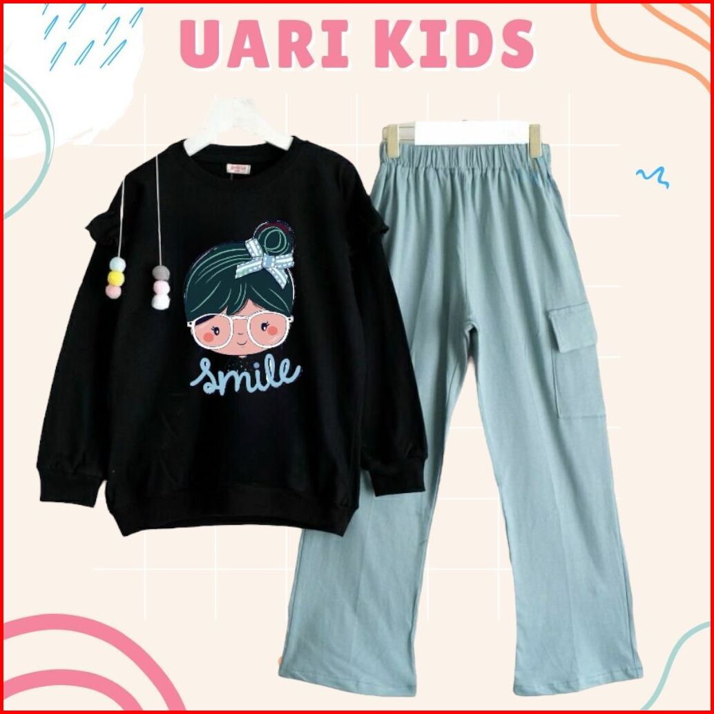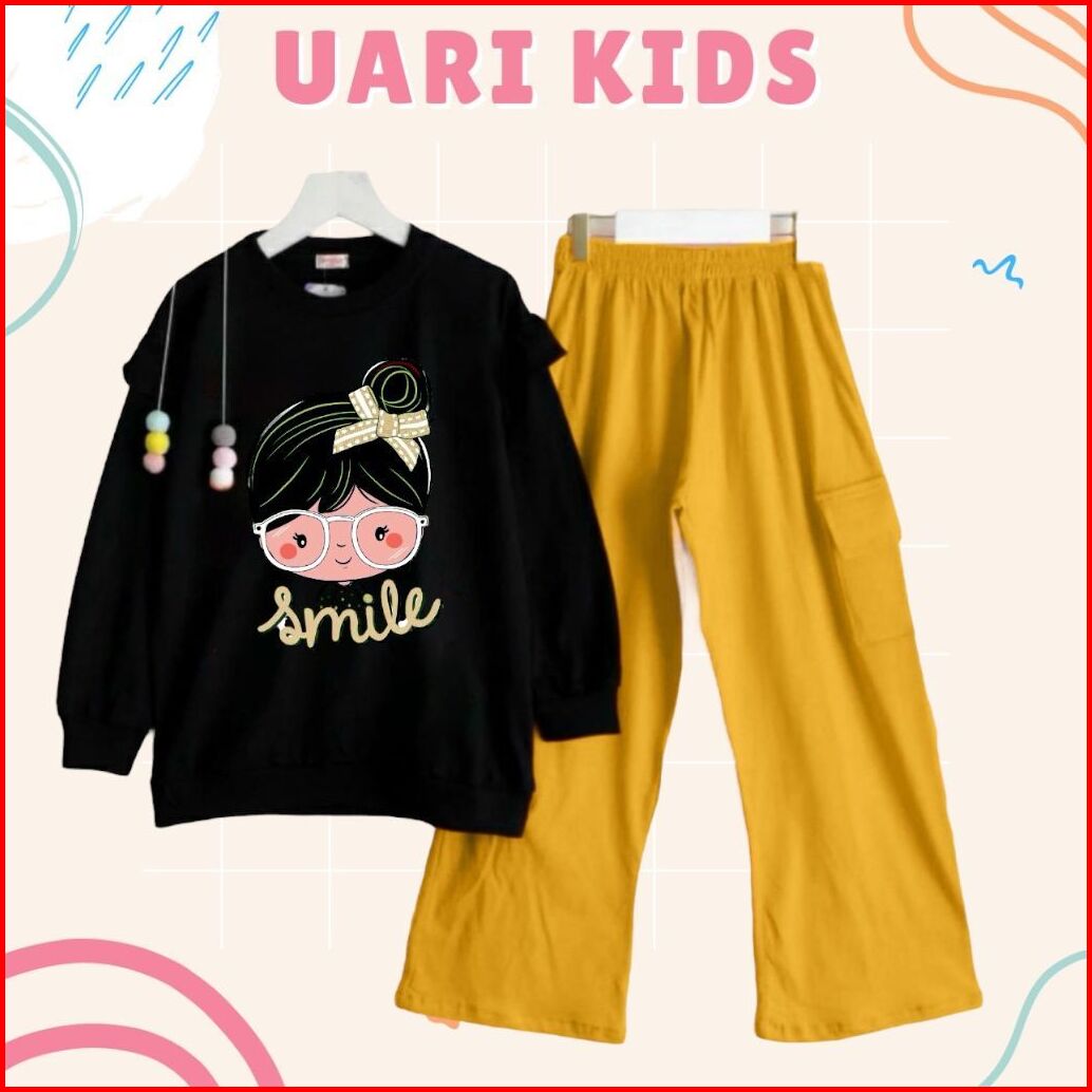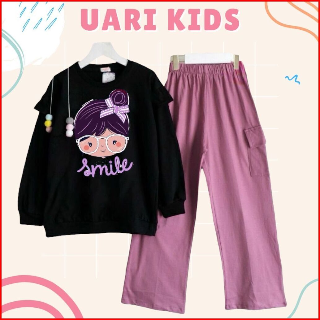 Smile Set Kids 3thn-13thn Celana Cargo Crinkle Printing Setelan Smile One Set Anak Remaja Setelan Anak Kekinian Setelan