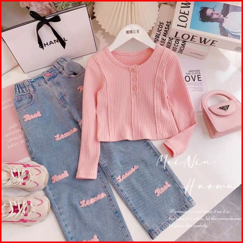 Baju Setelan Anak Perempuan Rajut Premium Fashion Terbaru Baju Setelan Rajut Celana Jeans