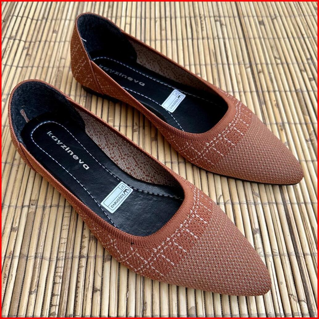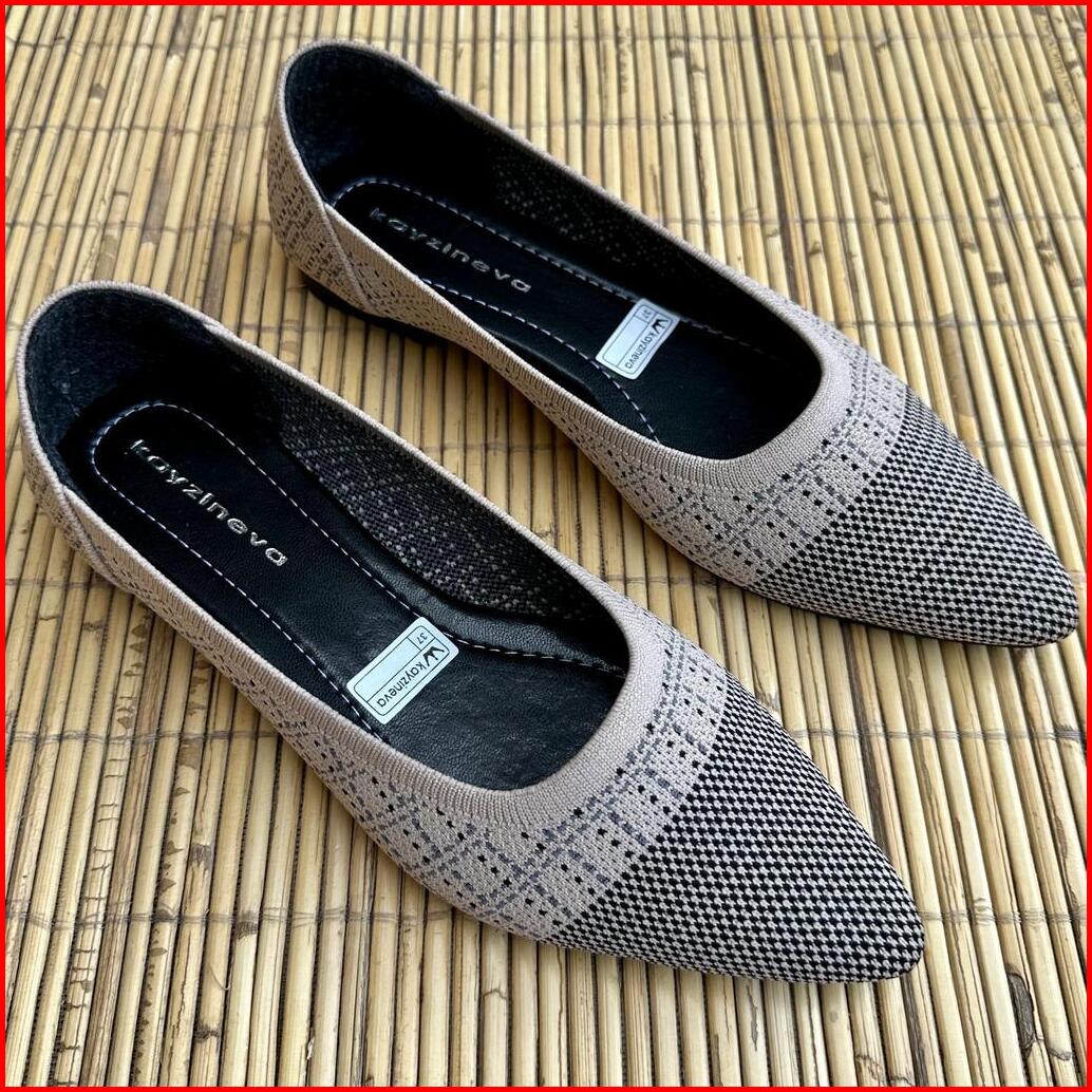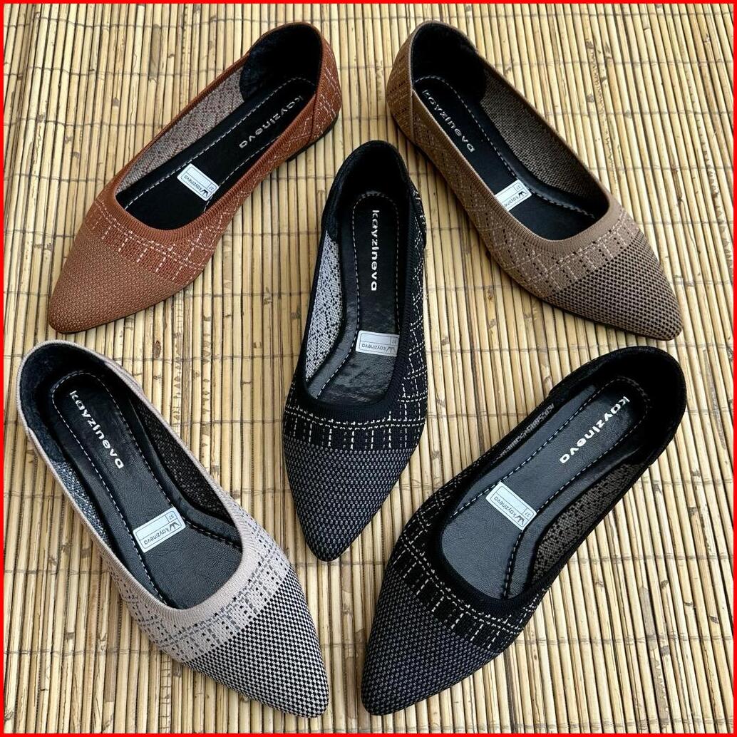 Kayzineva Flat Shoes Wanita Oval Rajut Premium Ujung Lancip Ddn31