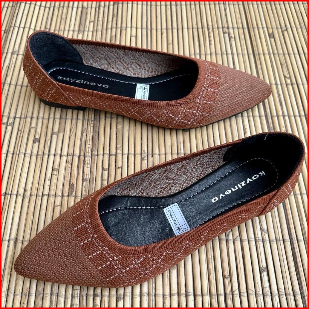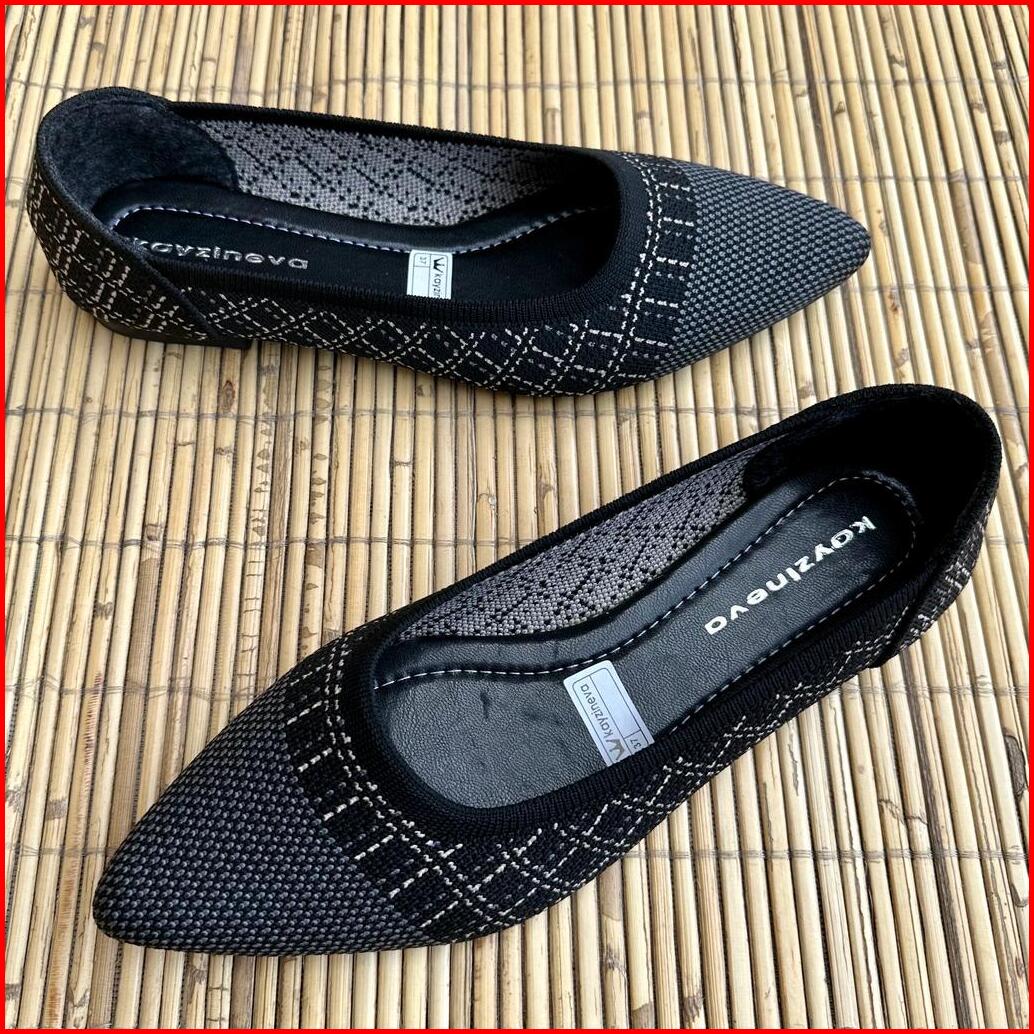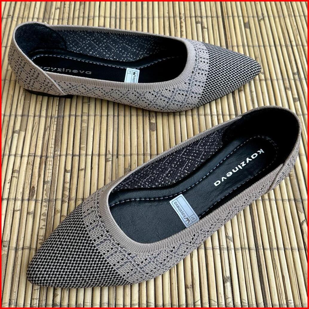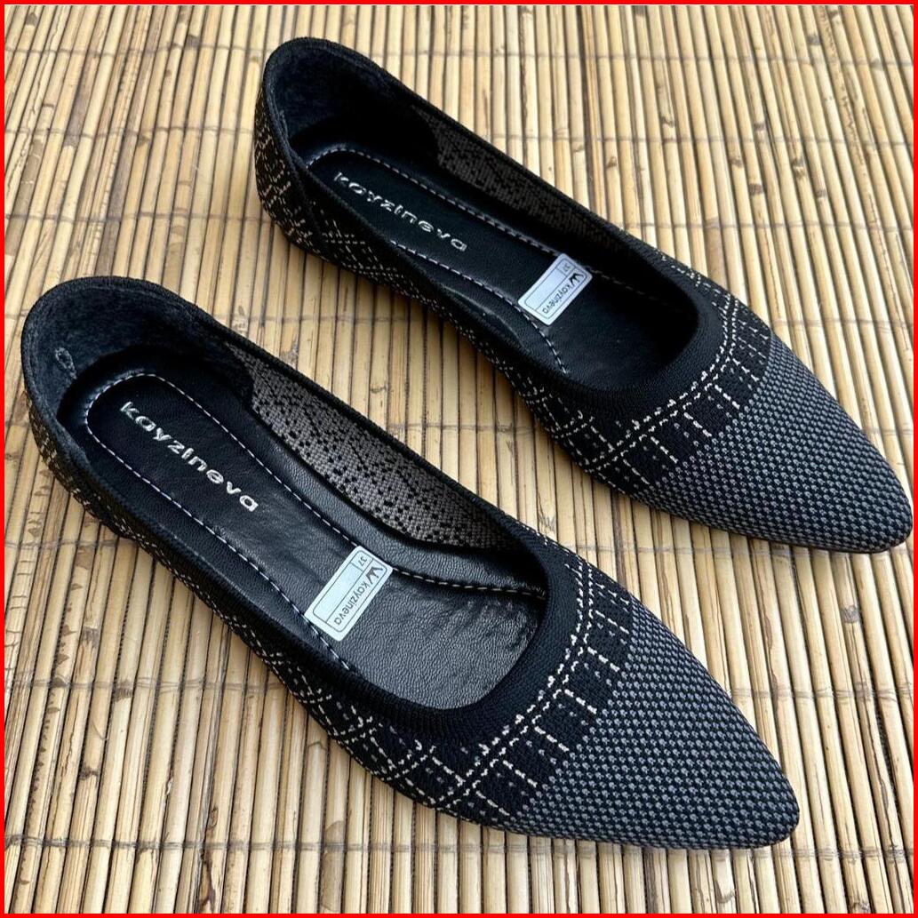 Kayzineva Flat Shoes Wanita Oval Rajut Premium Ujung Lancip Ddn31