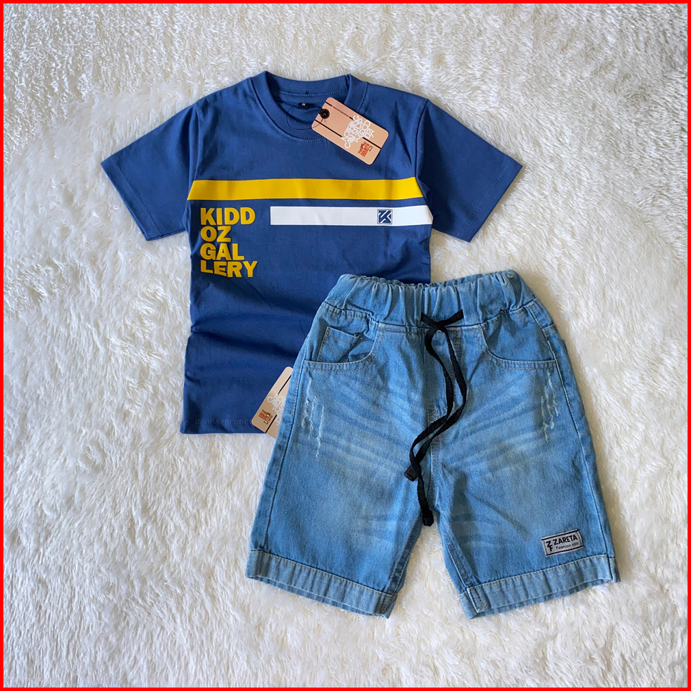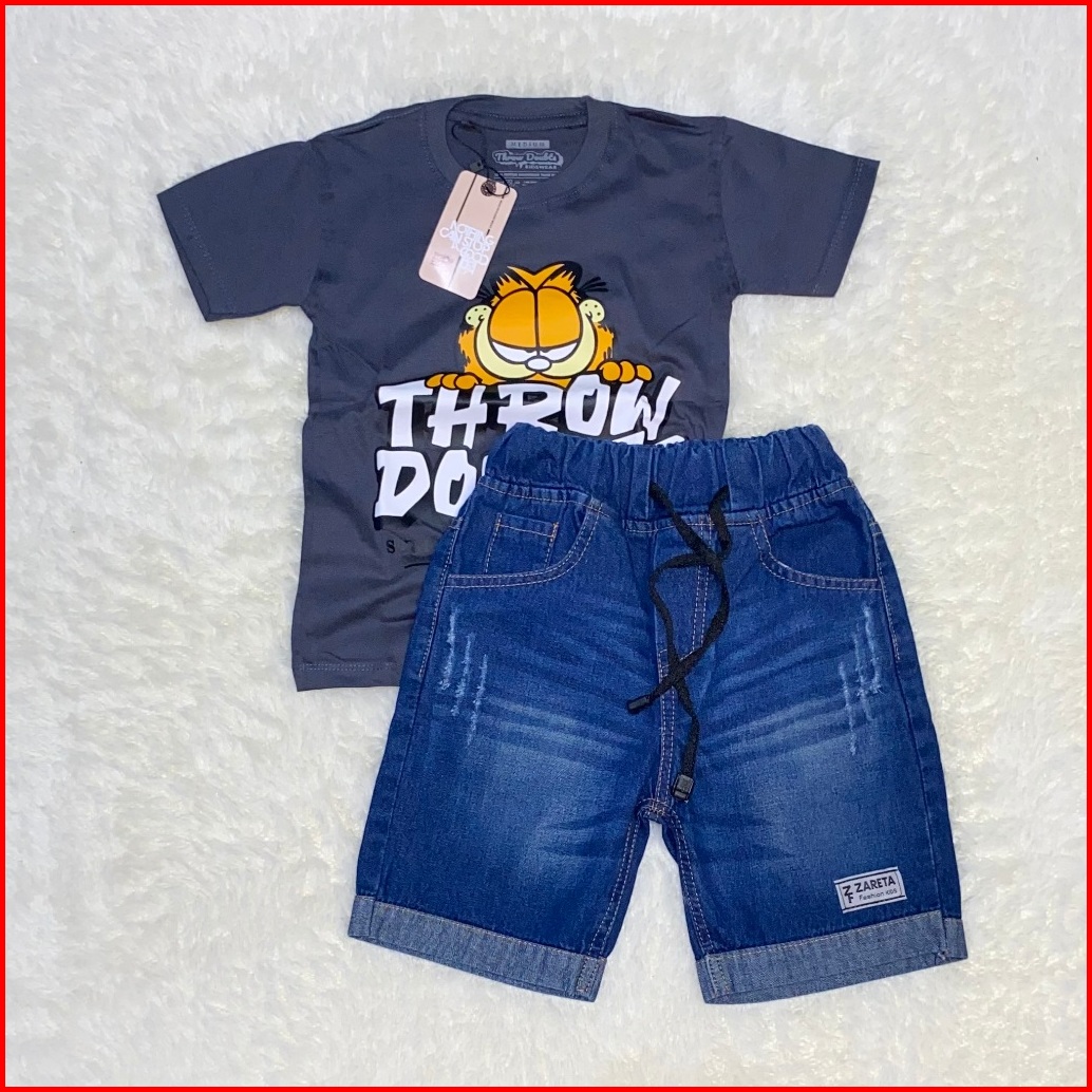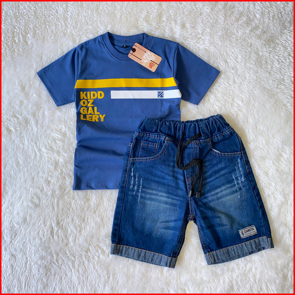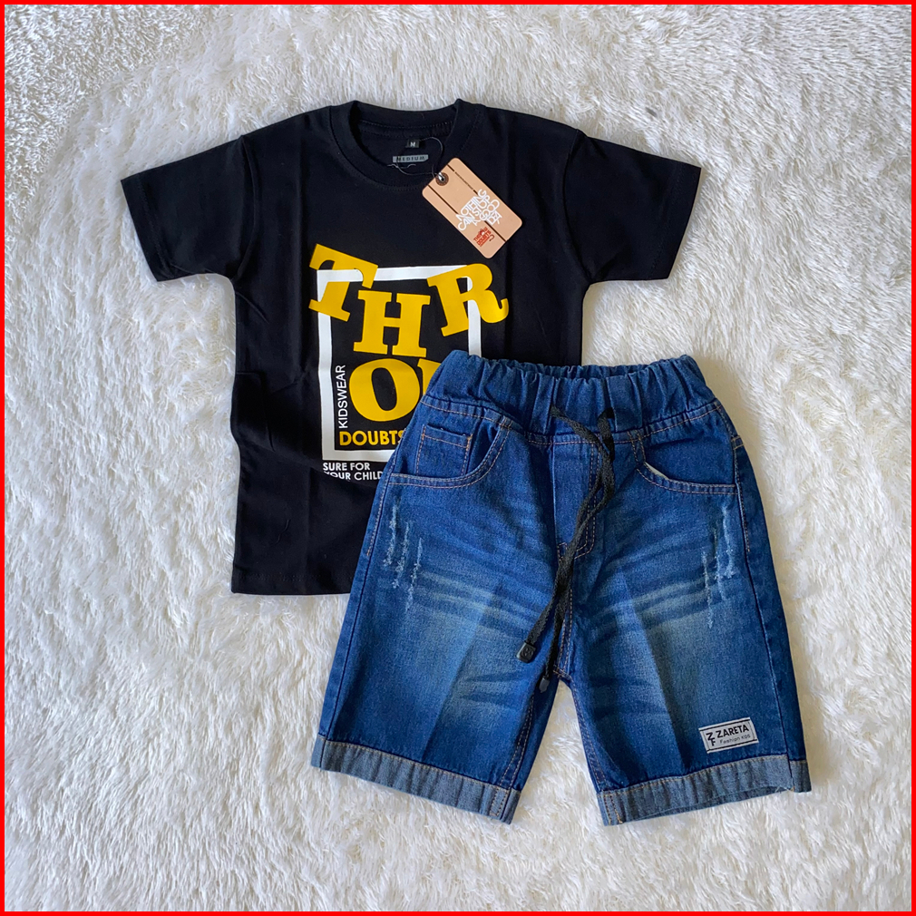 Setelan Jeans Pendek Anak Dan Kaos Distro Bahan Katun Usia 4-12 Tahun Danim K1