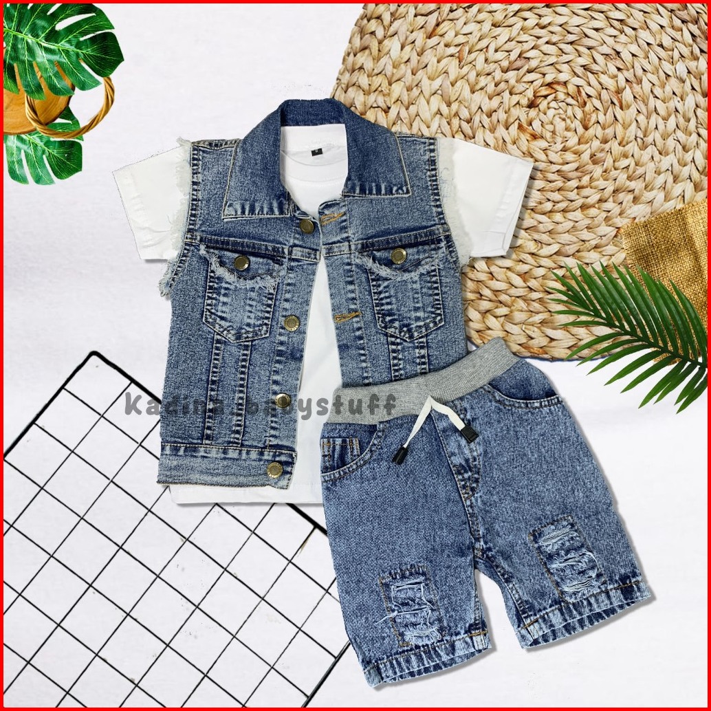 Setelan Jeans Anak Laki-laki Celana Pendek Anak Rompi Jeans Anak Usia 1-8 Tahun