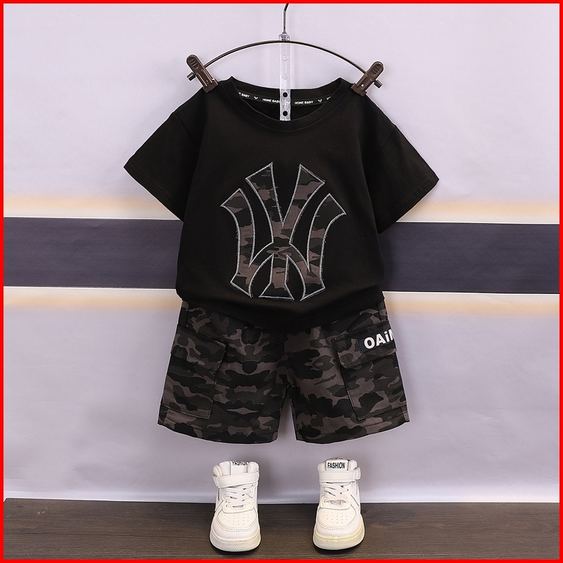Setelan Anak Laki-laki Trendy Lengan Pendek Set Pakaian Anak Cowok Trendy Kekinian Setelan Baju Anak Terbaru Set Pakaian