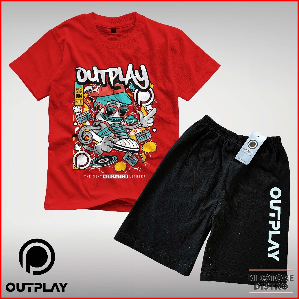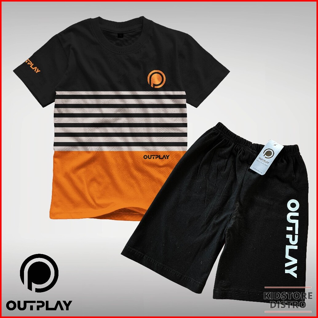 Setelan Anak Laki Laki Cowok Baju Kaos Celana Pendek Stelan Distro Kombinasi Katun Lembut Keren
