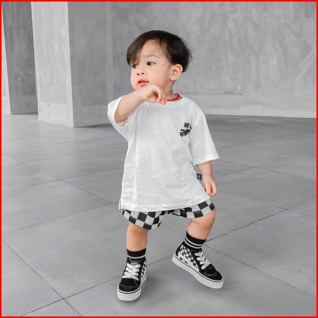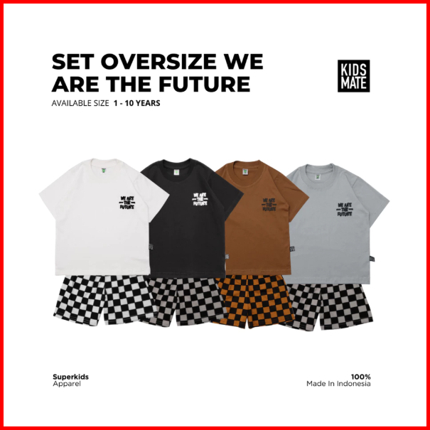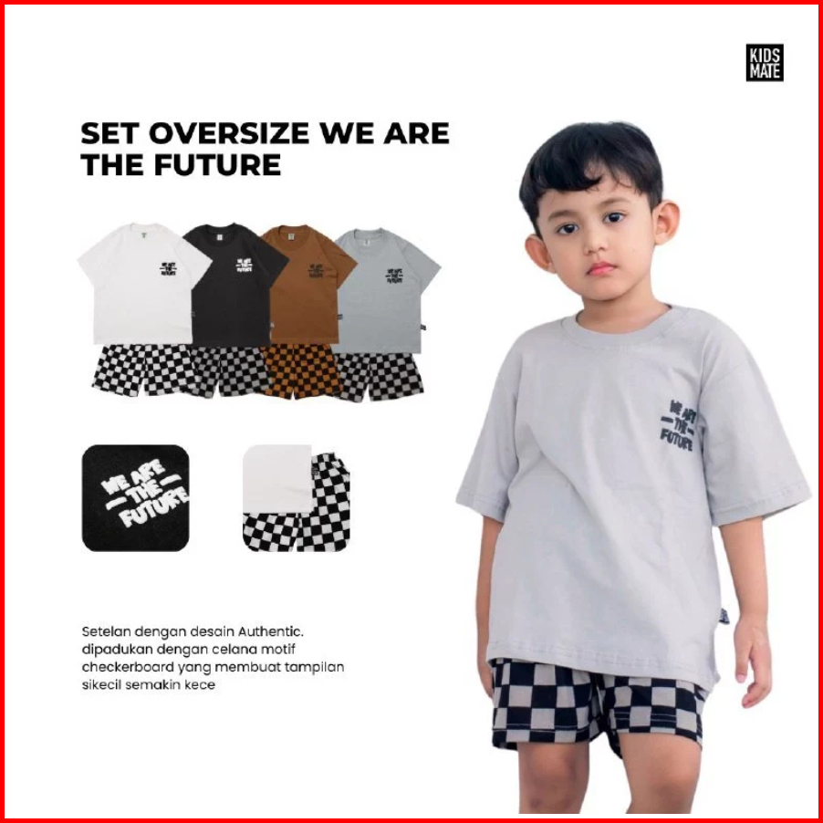 Krucilkuu-setelan Oversize We Are The Future Sablon Puff Motif Catur Keren Umur 1-10 Tahun
