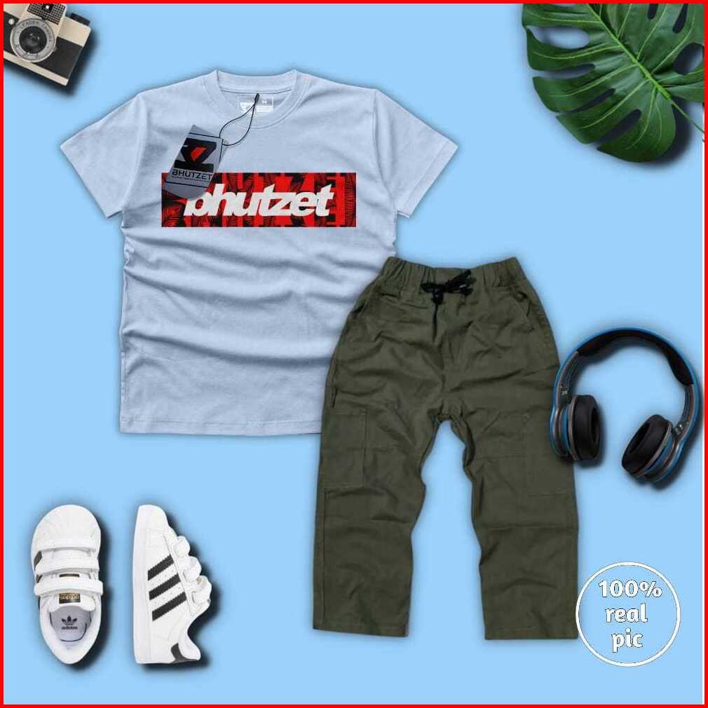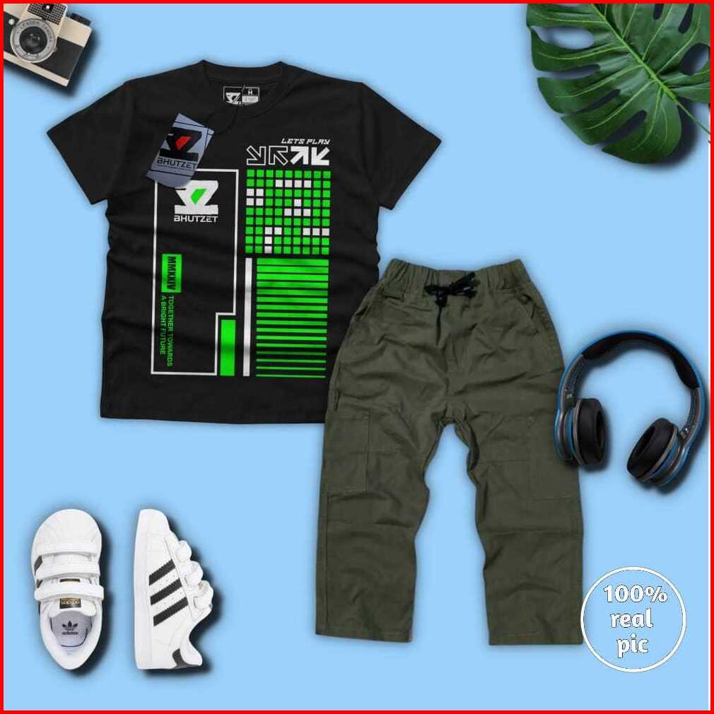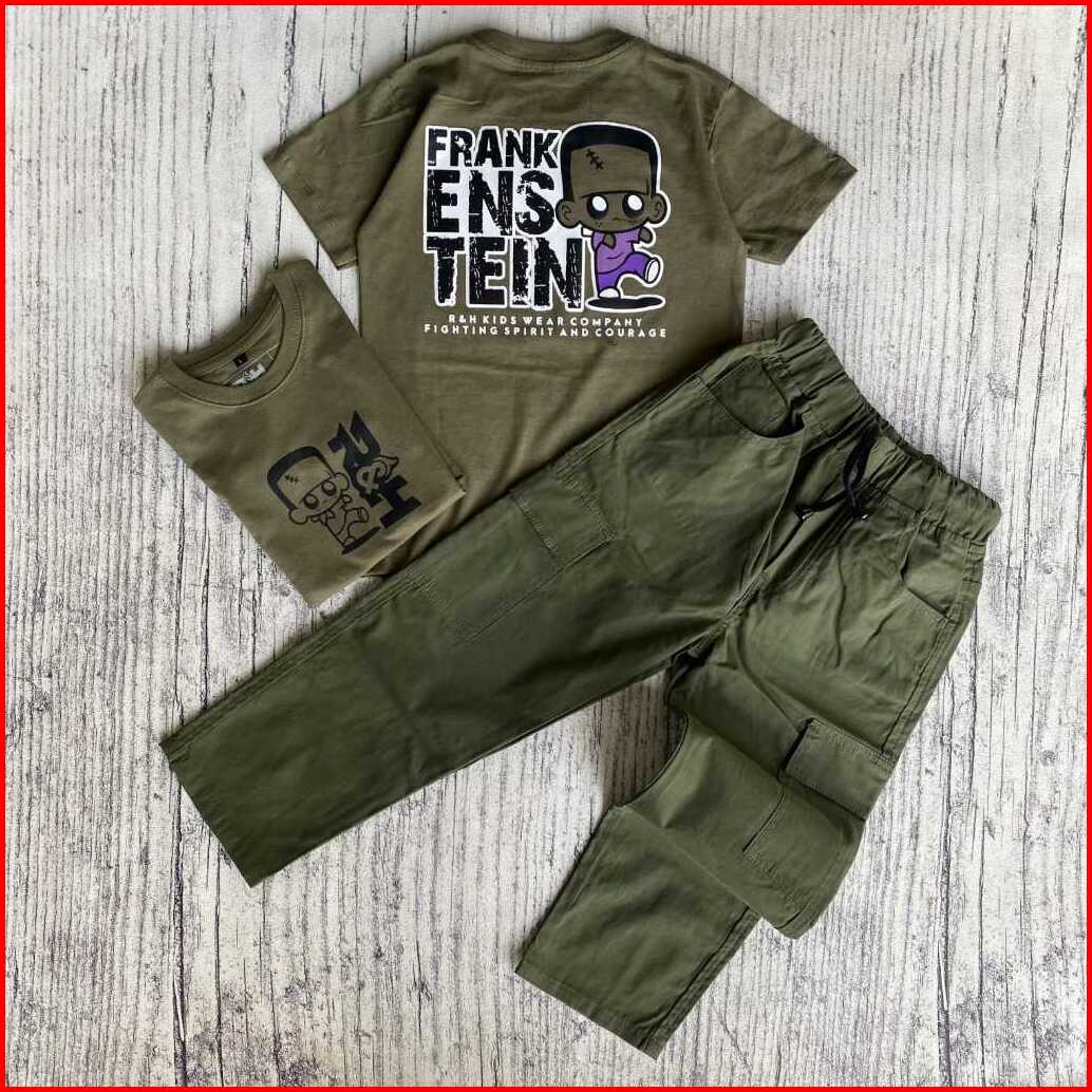 Setelan Celana Cargo Panjang Dan Baju Kaos Anak Laki-laki Usia 4-12 Tahun