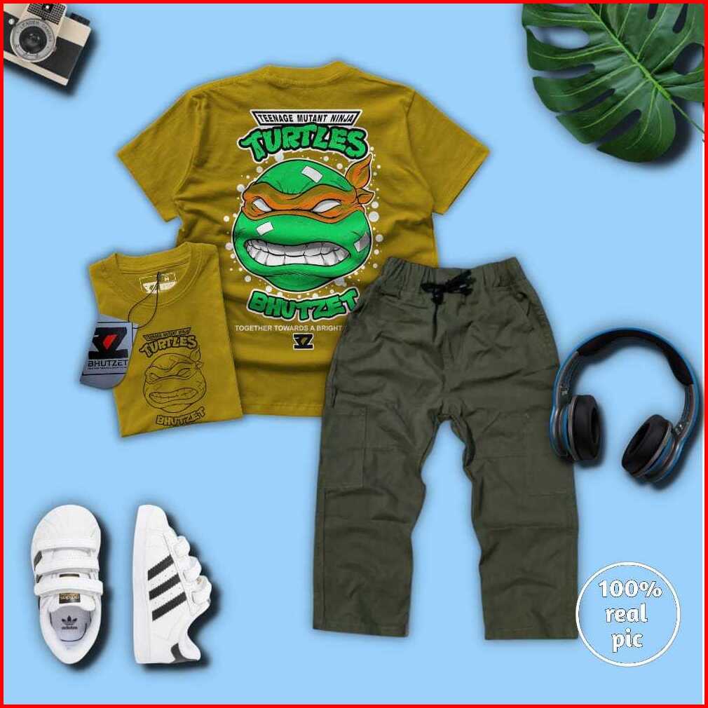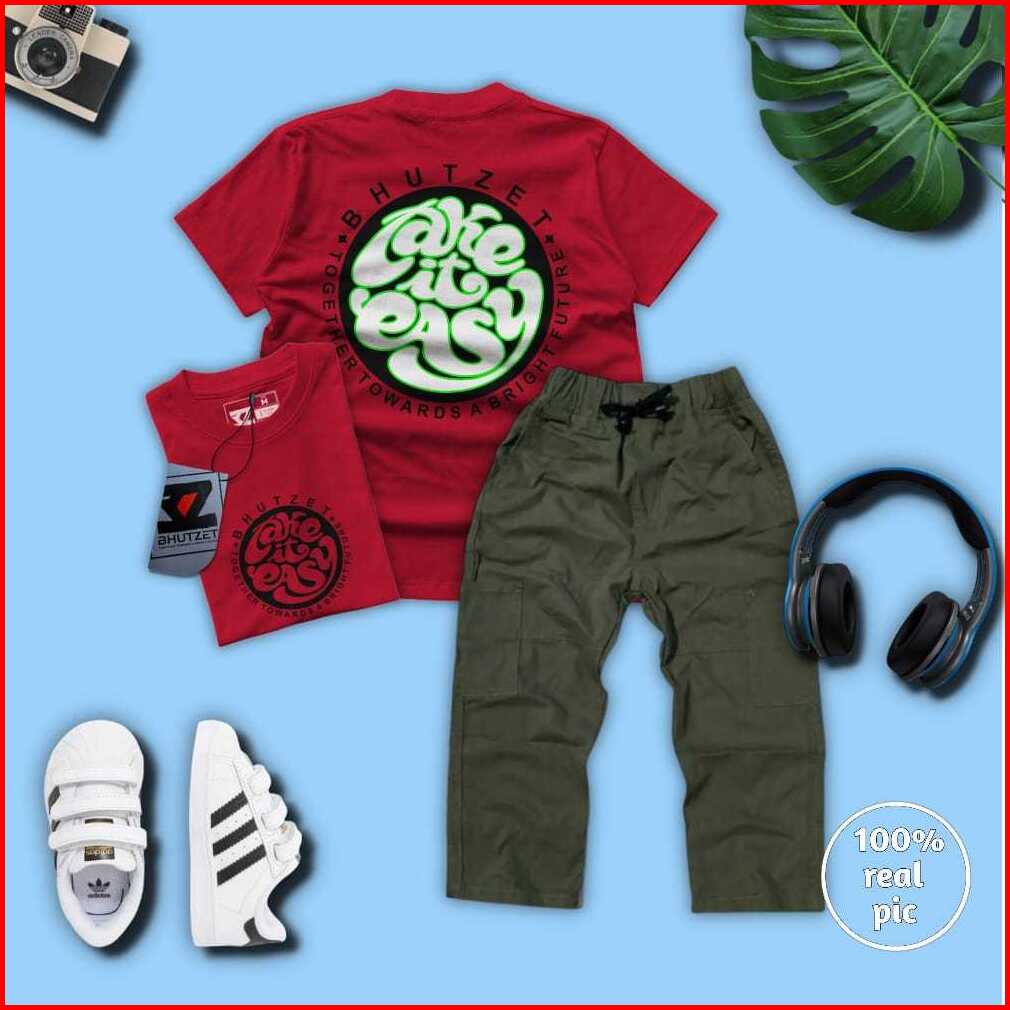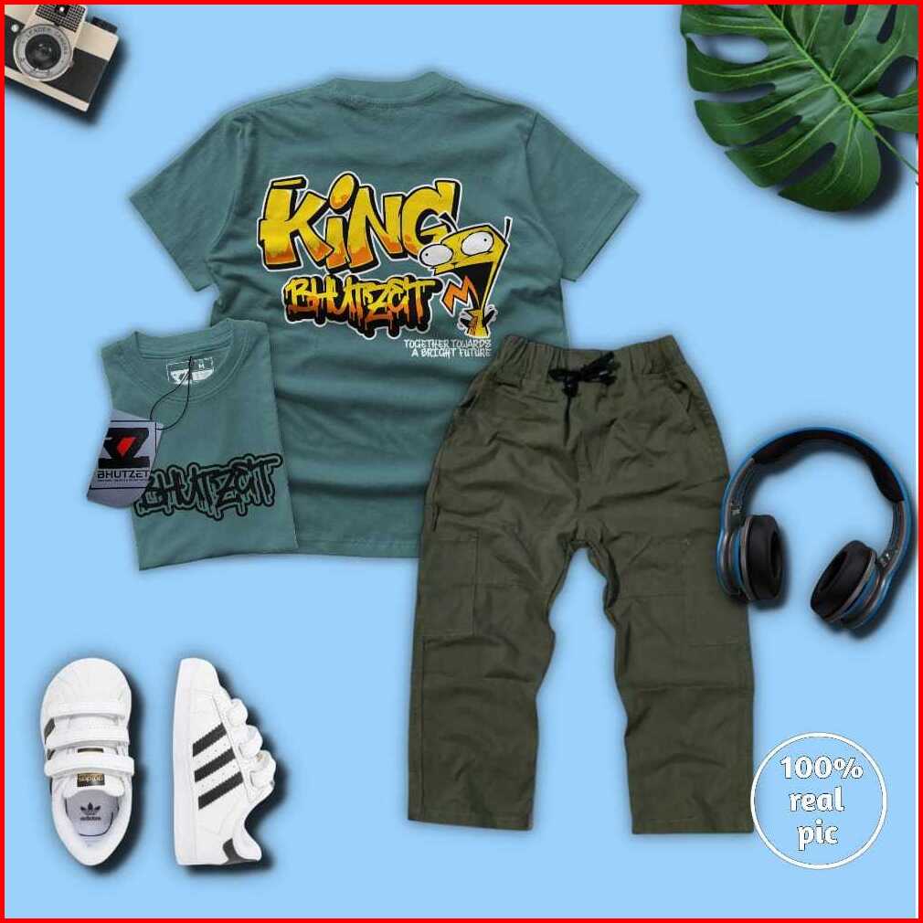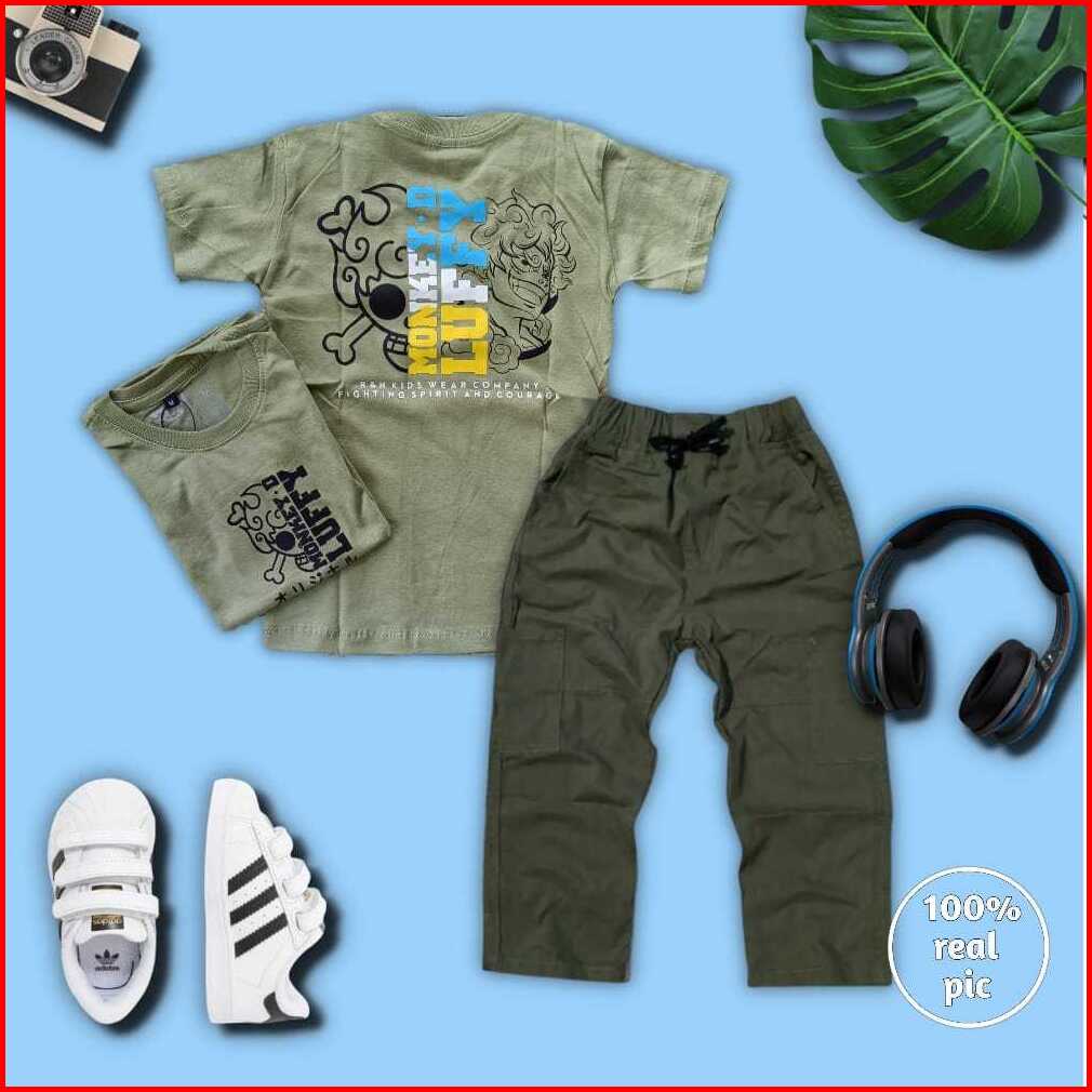 Setelan Celana Cargo Panjang Dan Baju Kaos Anak Laki-laki Usia 4-12 Tahun