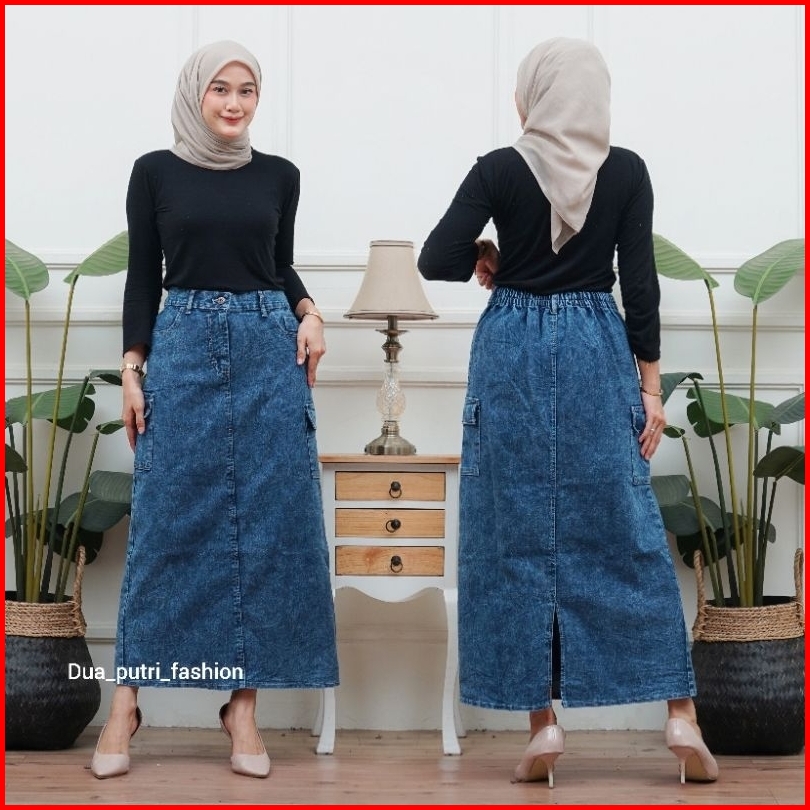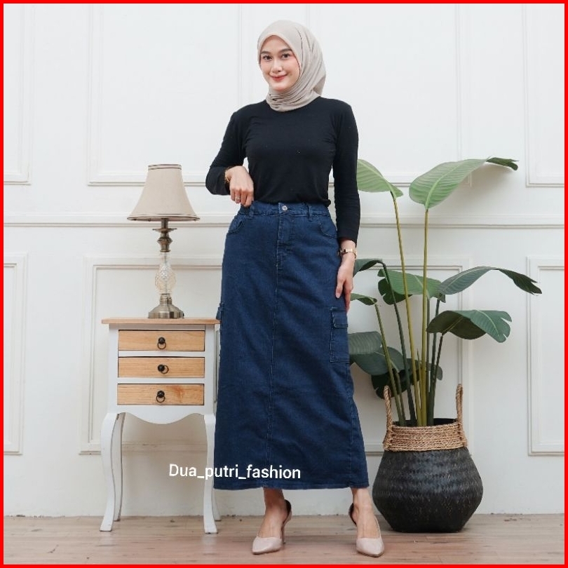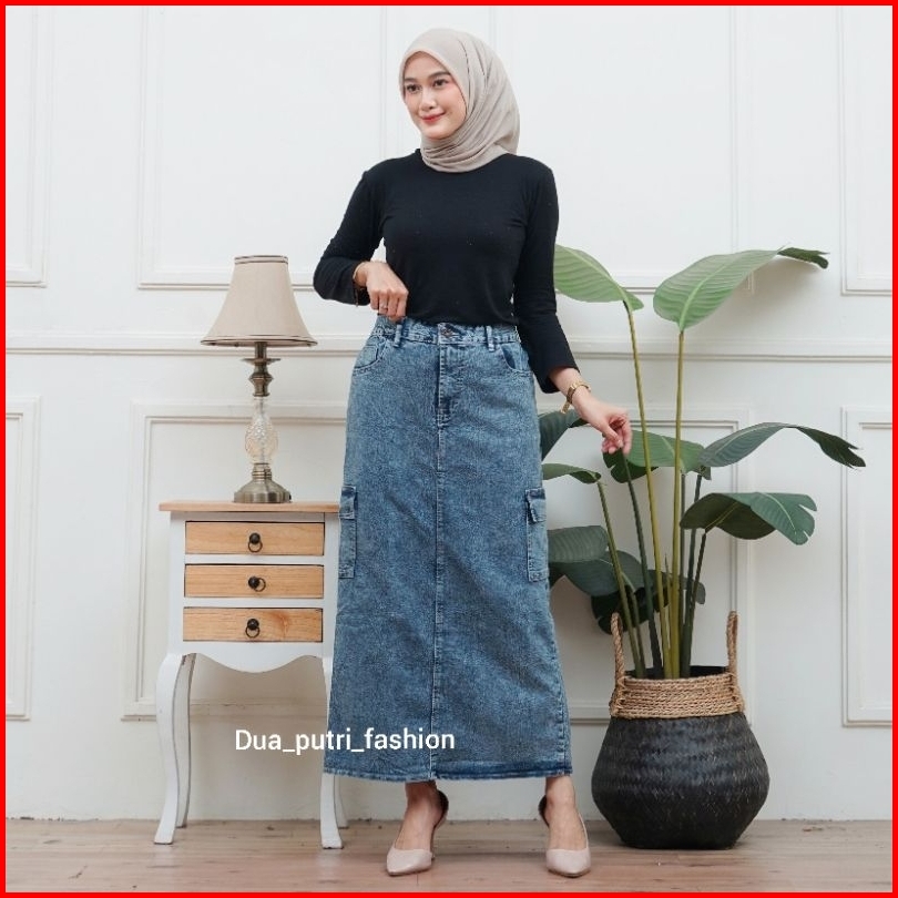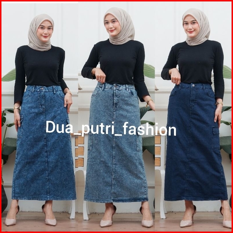 Rok Jeans Cargo - Highwaist Rok Jeans Cargo Wanita Korean Style Kekinian