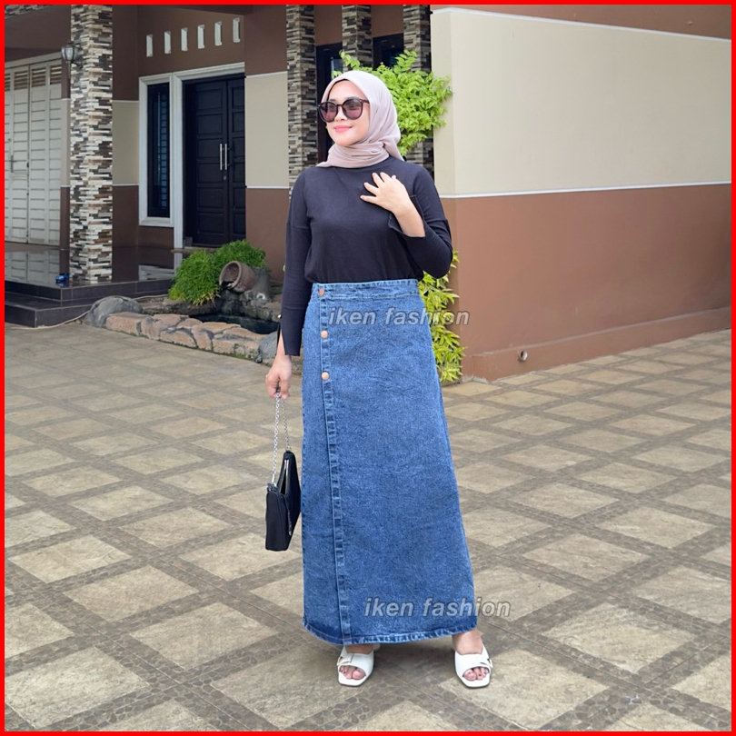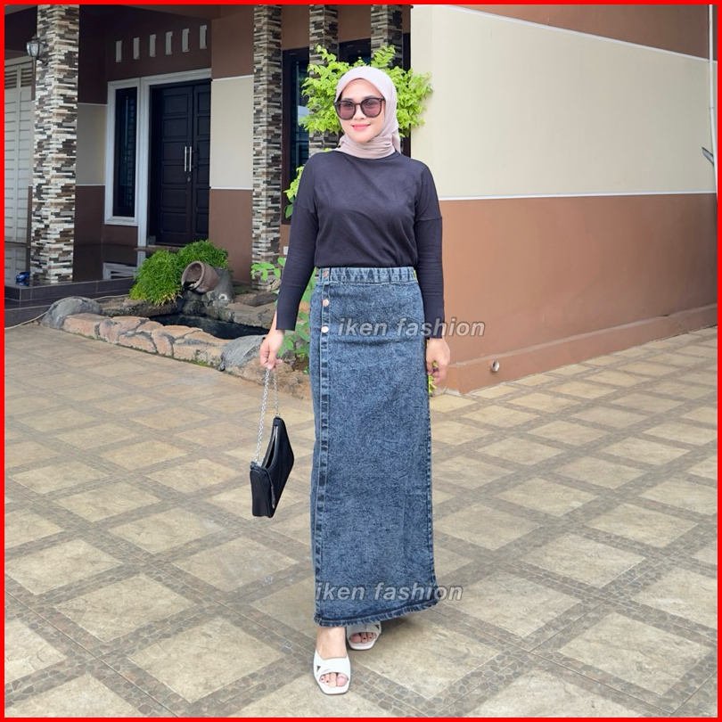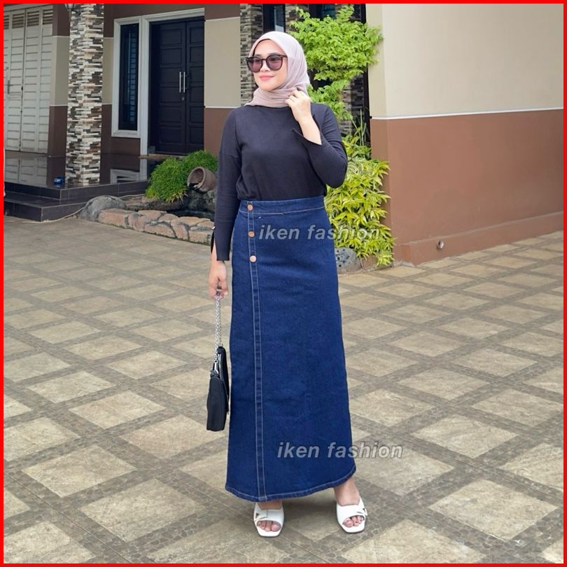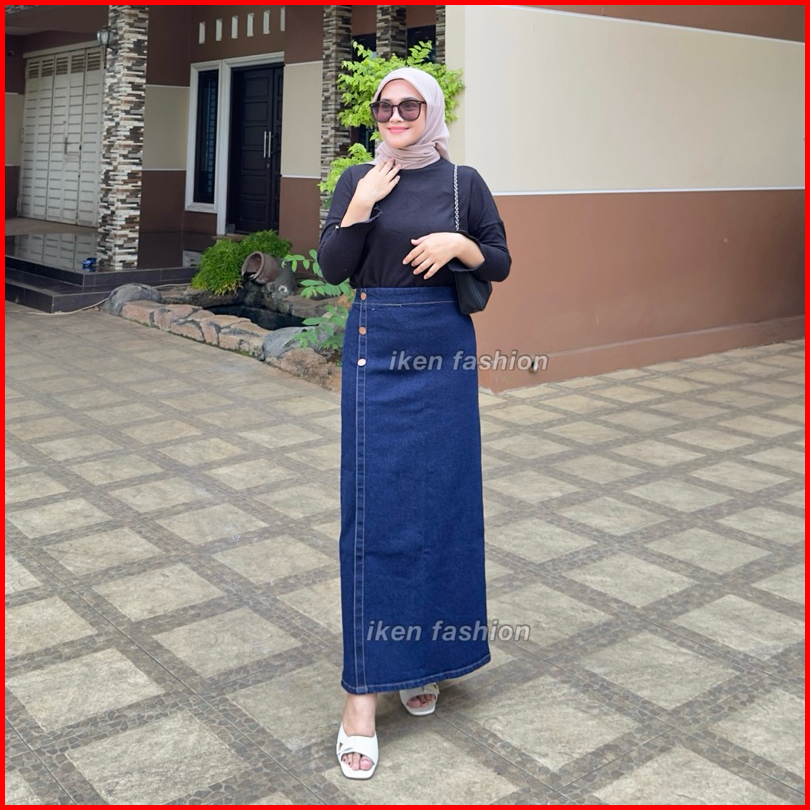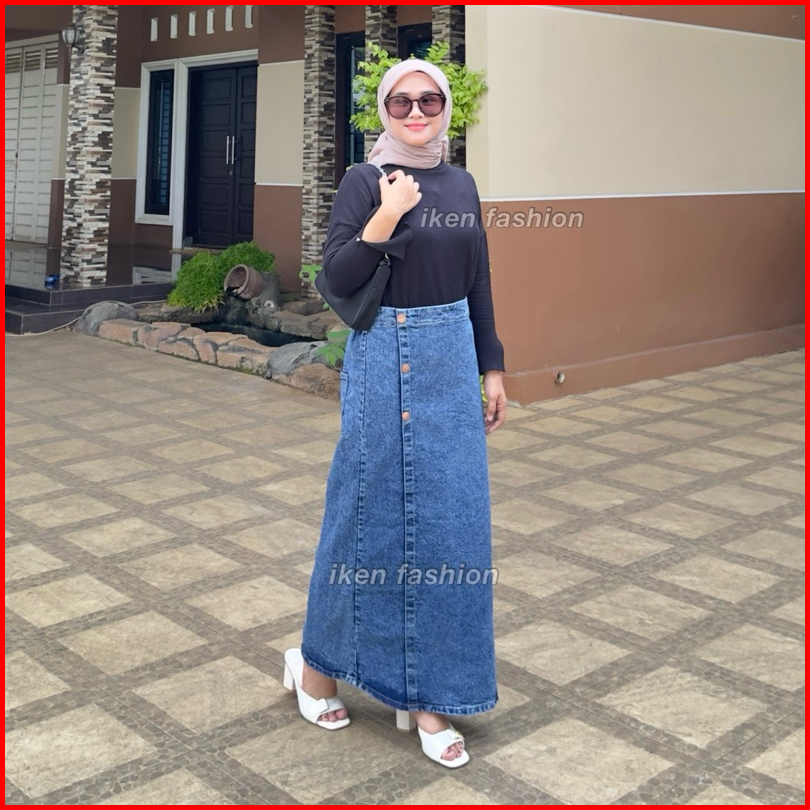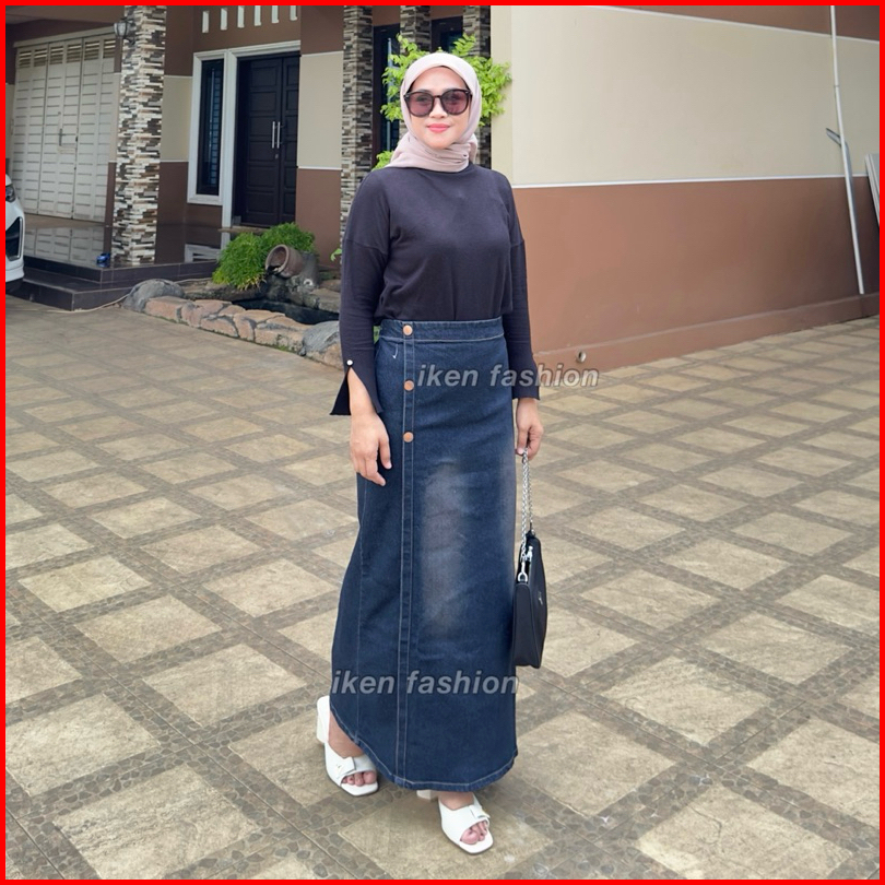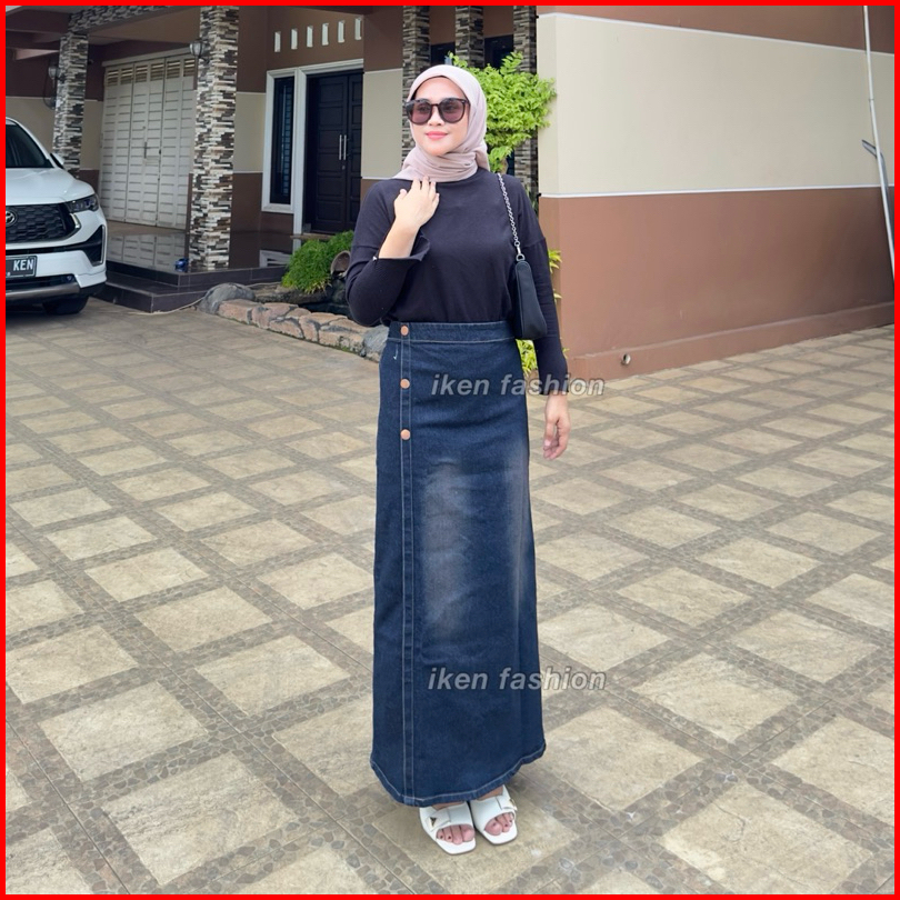 Luna Skirt Premium Denim Stretch Rok Jeans Panjang Wanita Bahan Melar Semi A Line