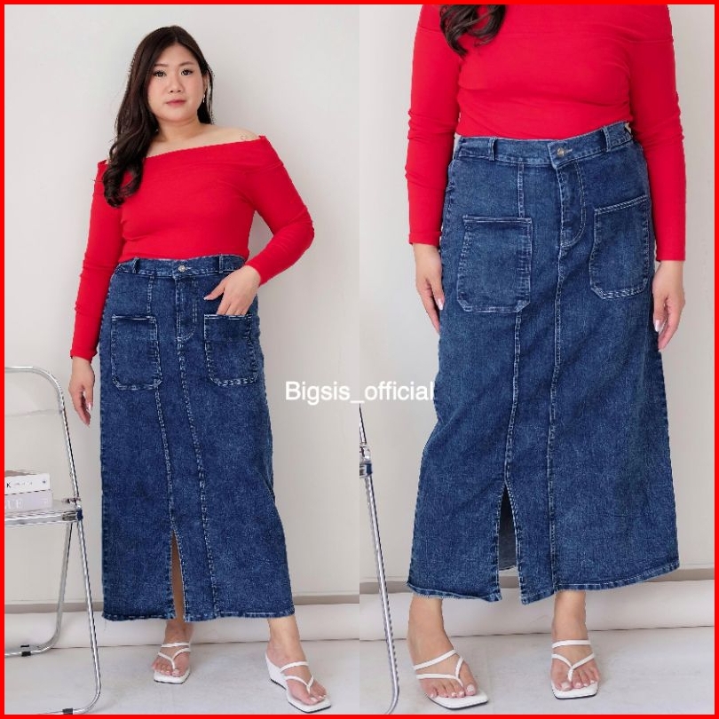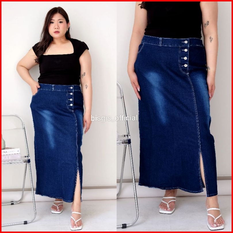 Bigsis Rok Jeans Stretch Style Skirt Jeans Kancing Jumbo
