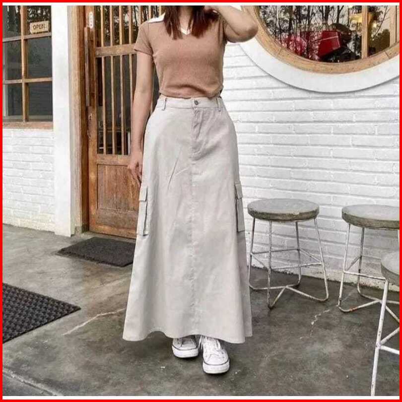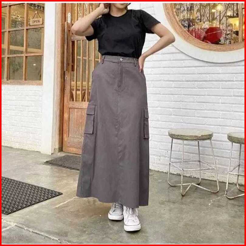 Rok Cargo Wanita Panjang Terbaru Rok Korean Style Kekinian Rok Cargo Wanita Jumbo