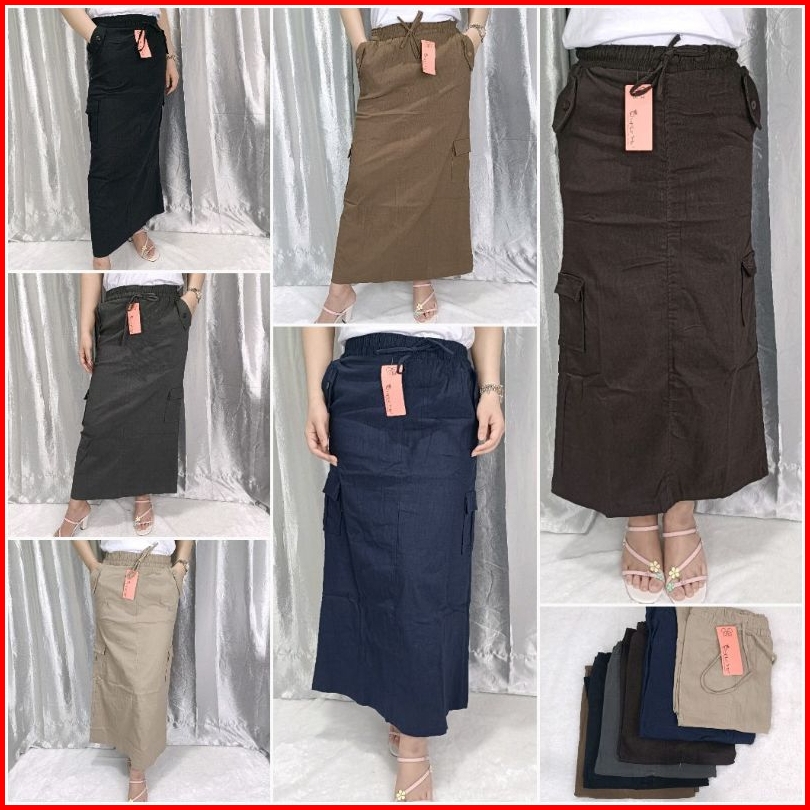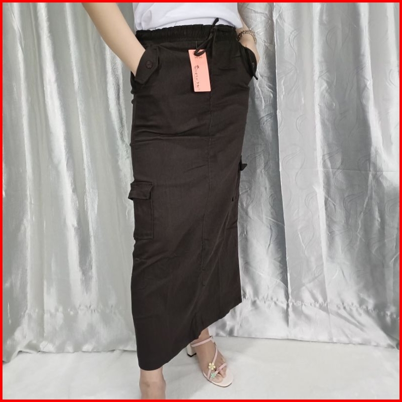 Rok Span Cargo Panjang Stretch Import Rok Cargo Panjang Wanita Super Melar Rok Cargo Span Import Super Melar Panjang