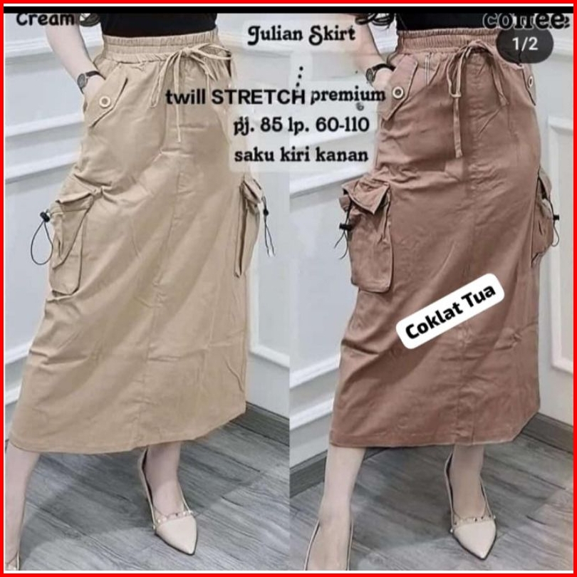 Rok Cargo Skirt Bahan Twill Combed Premium Tali Serut