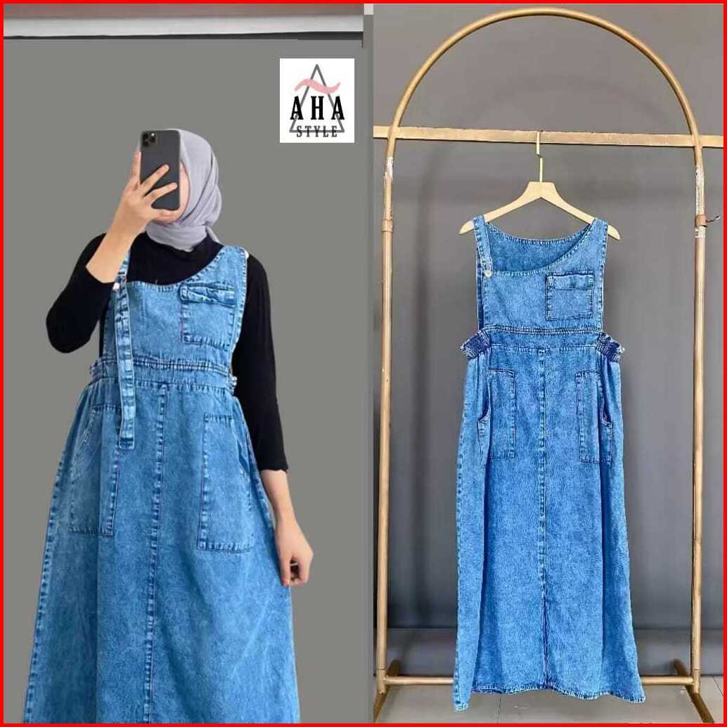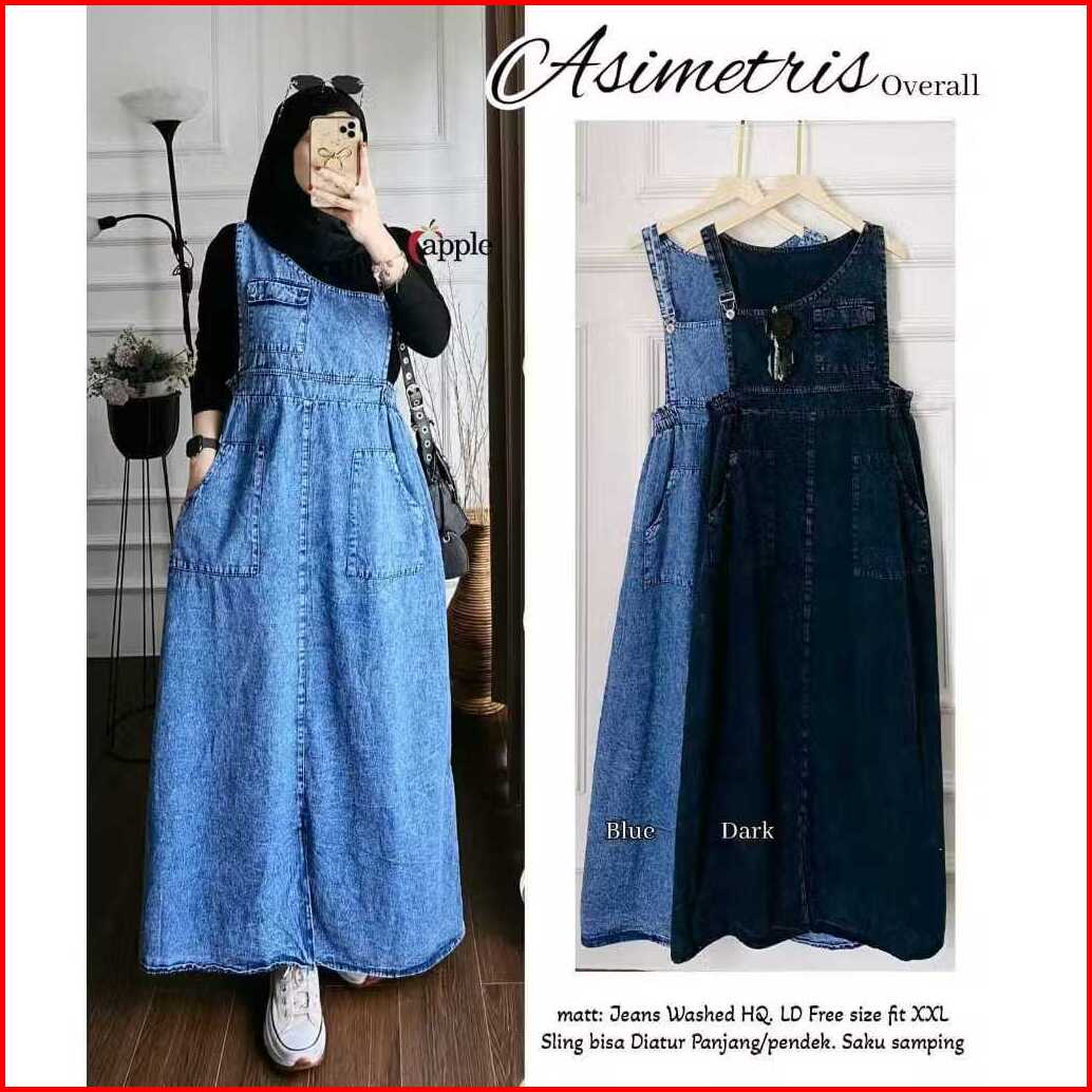 Asimetris Overall Jeans Wash Premium Jumsuit Baju Kodok Wanita Korean Style Overall Dress Jeans Wanita Terbaru