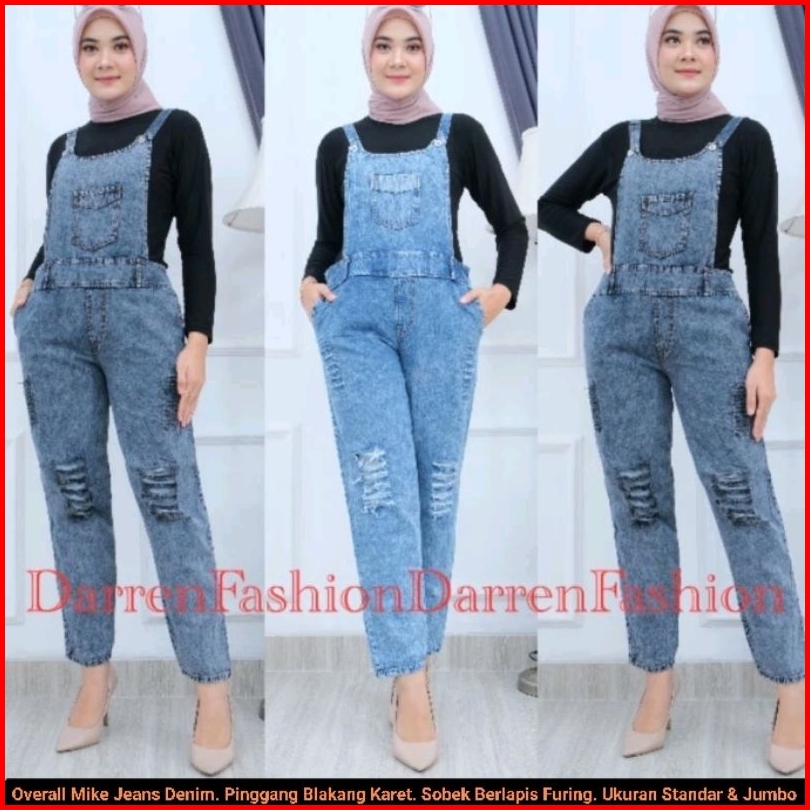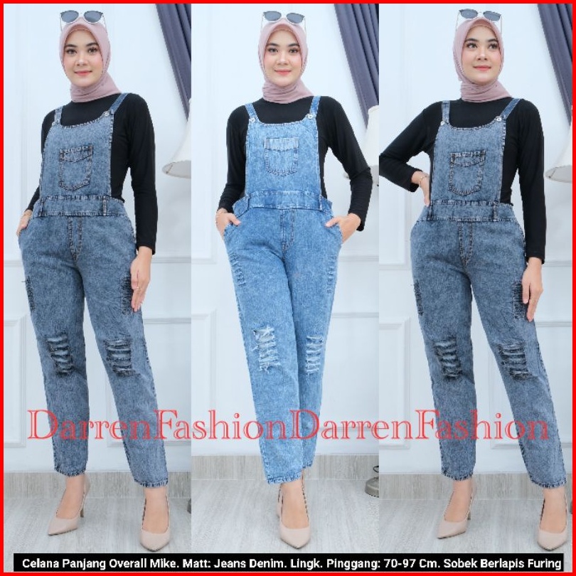 Celana Panjang Overall Jeans Denim Ripped Mike