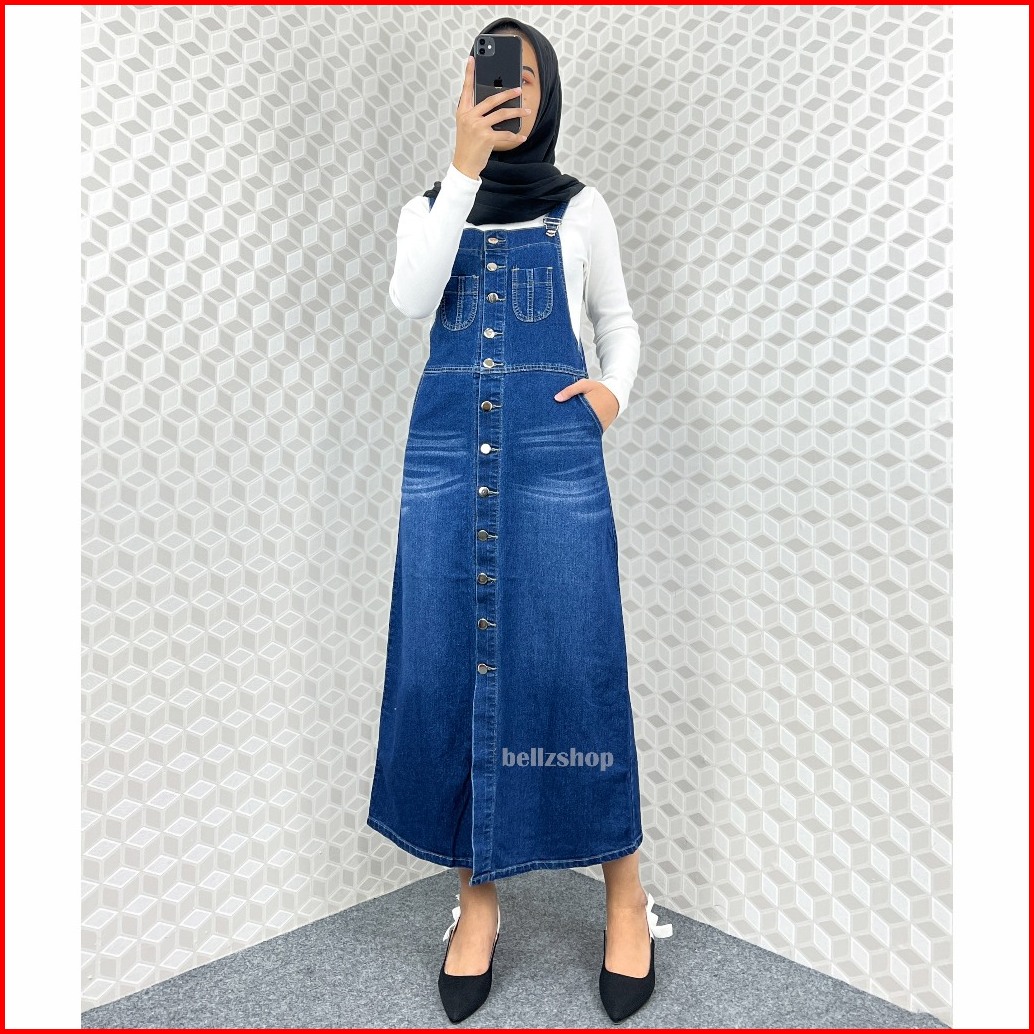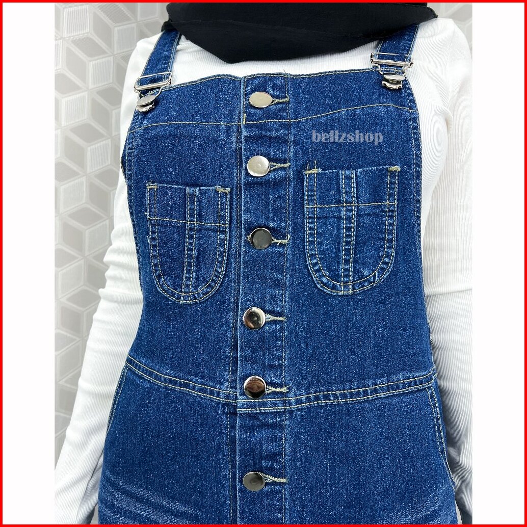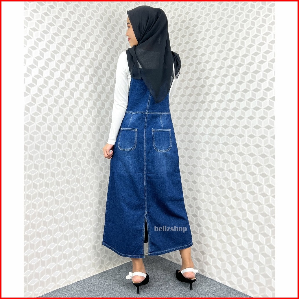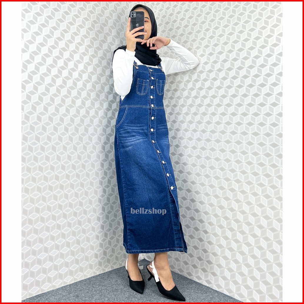 Overall Jeans Rok Panjang Dark Blue Baju Kodok Wanita Premium Safira Size 27 - 34
