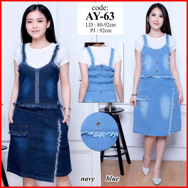Overall Jeans Rok Kodok Pendek Rumbai Ay-63.