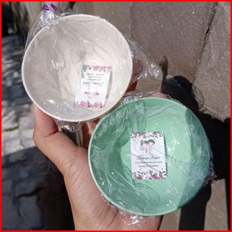 100pcs Souvenir Mangkok Plastik Bulat Gratis Kartu Ucapan Terima Kasih Souvenir Pernikahan Cantik Souvenir Hawa
