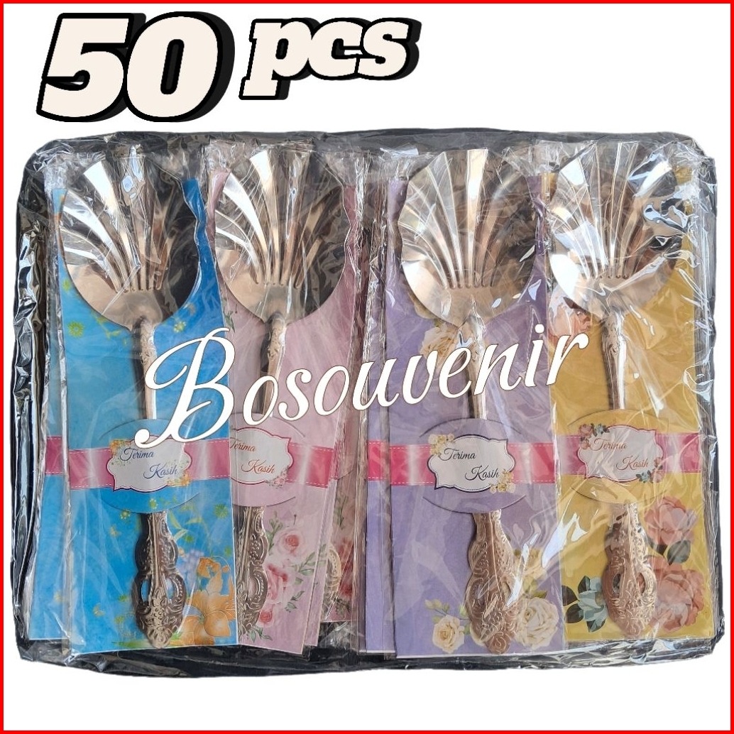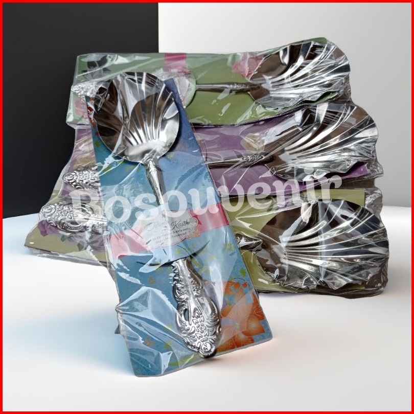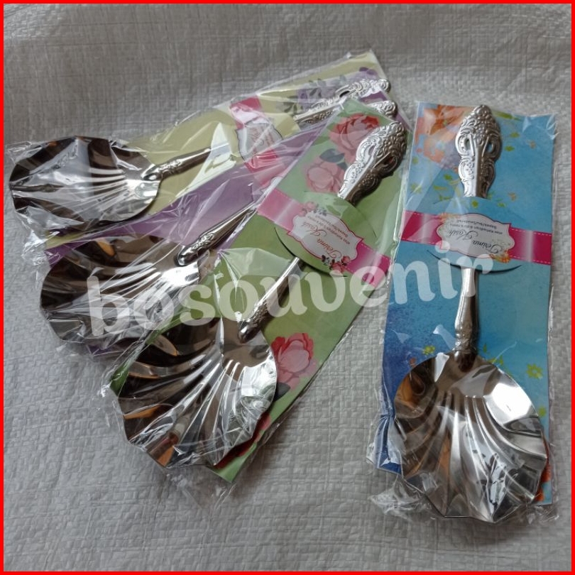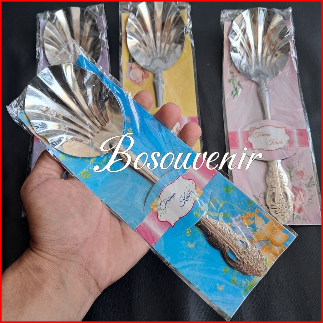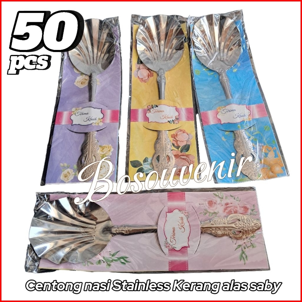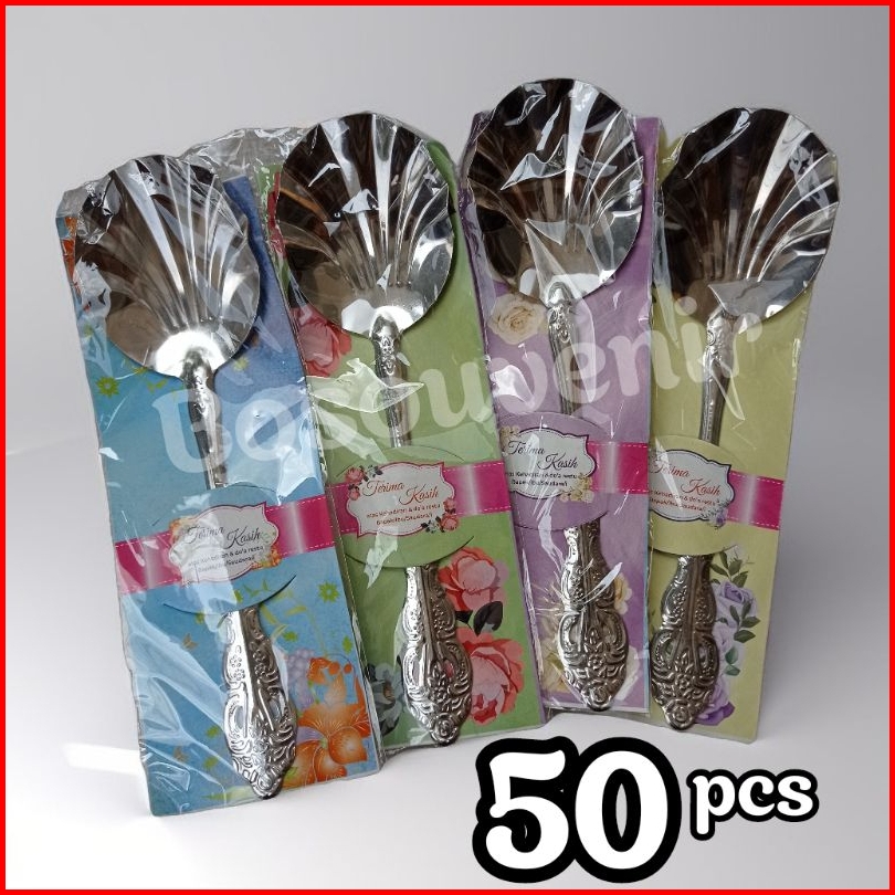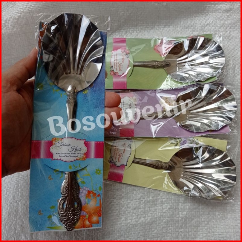 Isi 50 Souvenir Pernikahan Centong Stainless Kerang Alas Saby