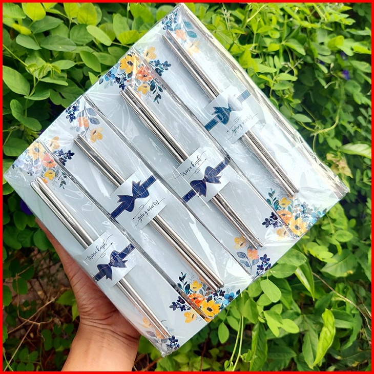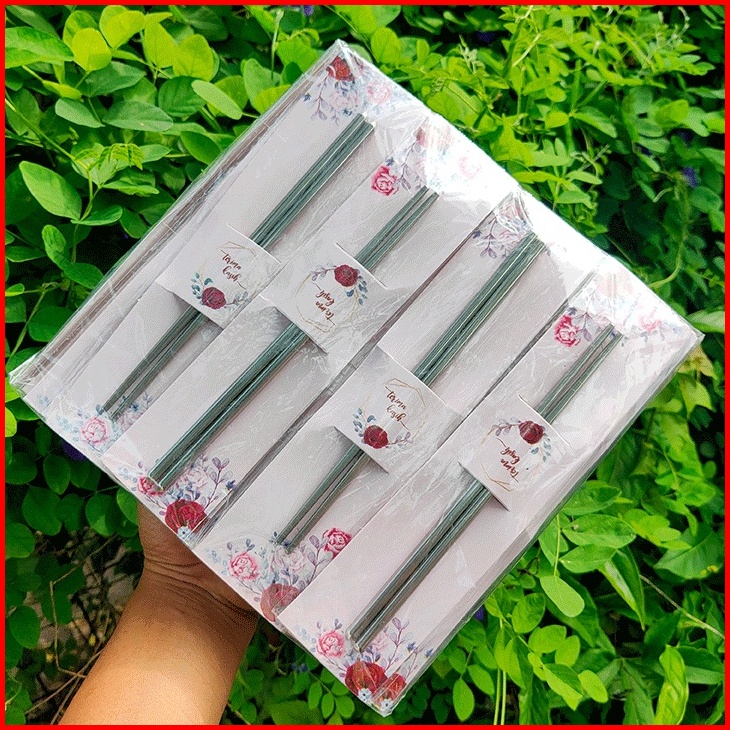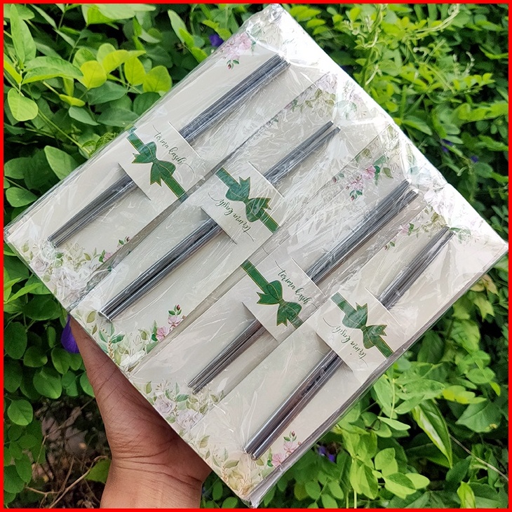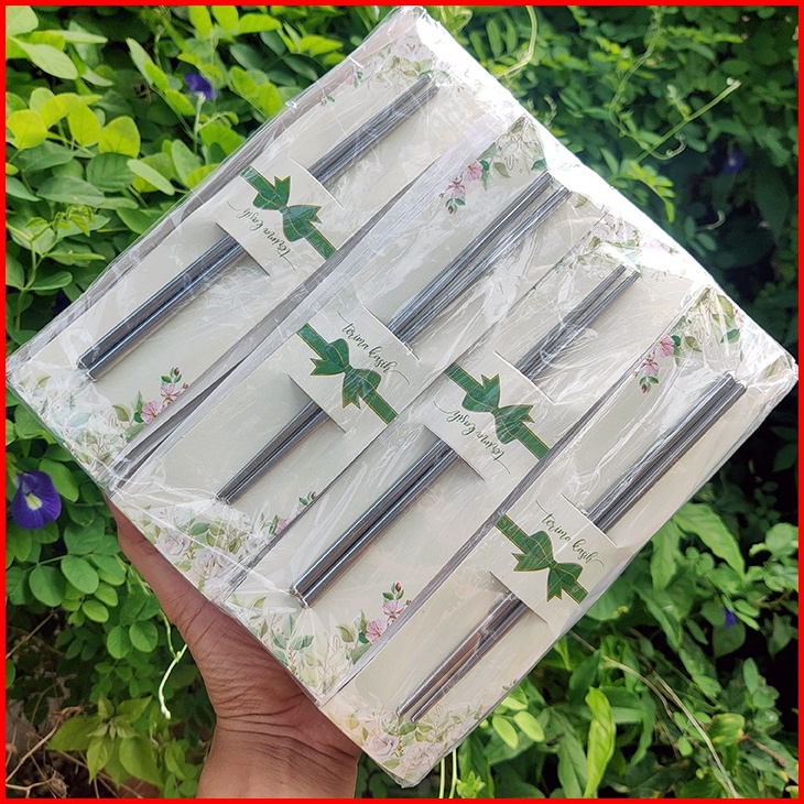 50 Pasang Souvenir Sumpit Stainless Alas Shabby Kemas Plastik