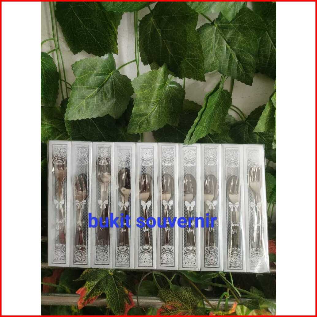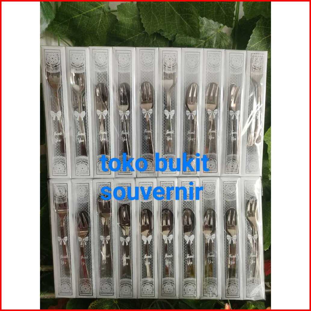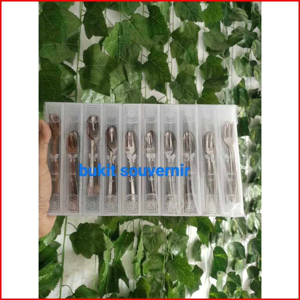 50pcs Souvenir Pernikahan Sendok Garpu Puding Sendok Garpu Kecil Kemasan Mika Motif
