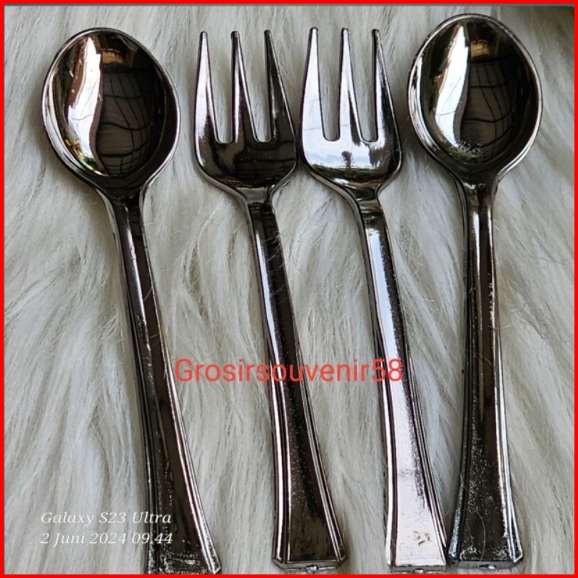 Isi 50pcs Sendok Garpu Silver Kemasan Mika