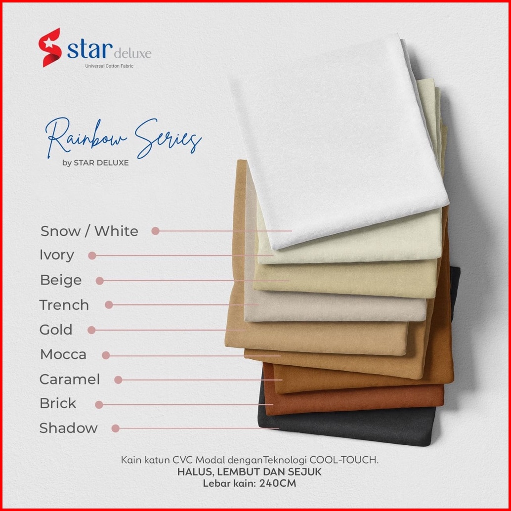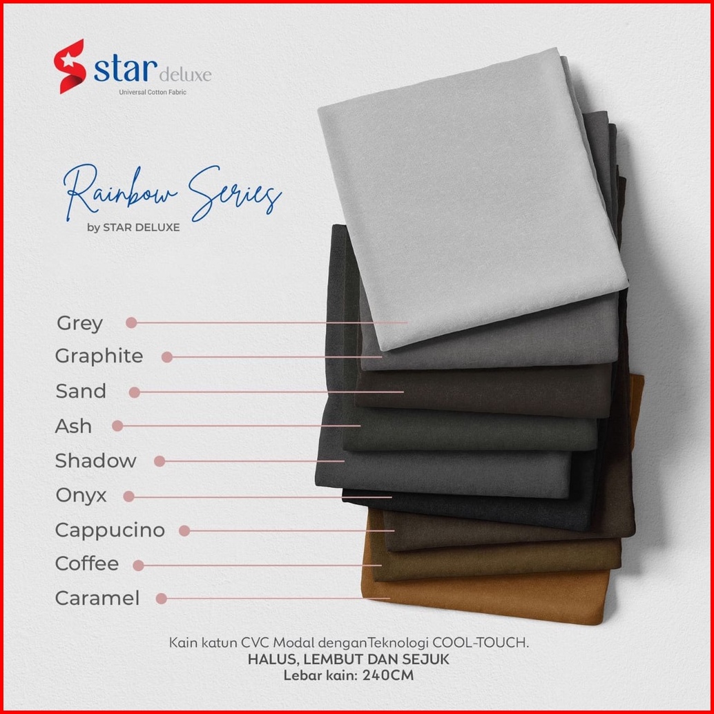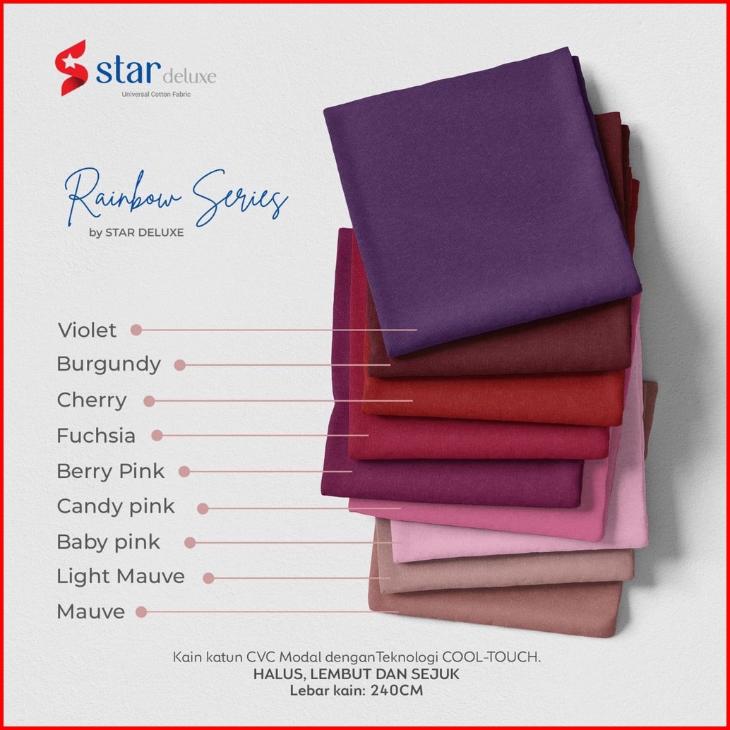 Sapphire, Gold, Graphite, Grey, Onyx, White/snow, Peach, Baby blue, Sage green, Midori, Lavender, Beige, Sky blue, Blue denim, Fuchsia, Merah, Caramel, Daffodil, Citrus, Trench, Baby pink, Cappuccino, Blue atoll, Request warna