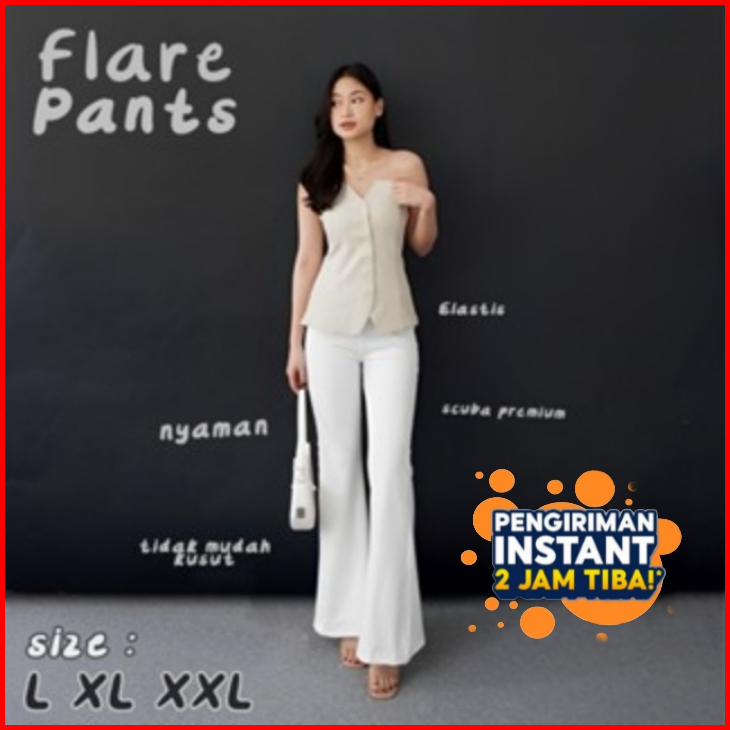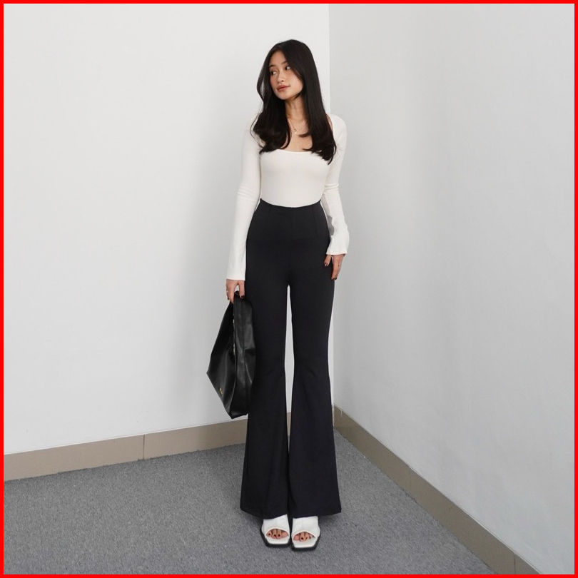 Celana Cutbray Wanita Scuba Premium Flare Pants High Waist Stretch Bb 40-75 Kg