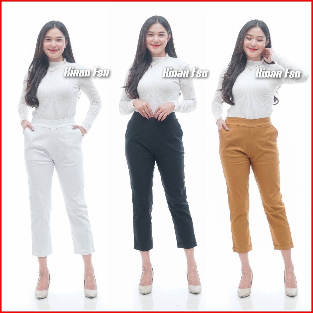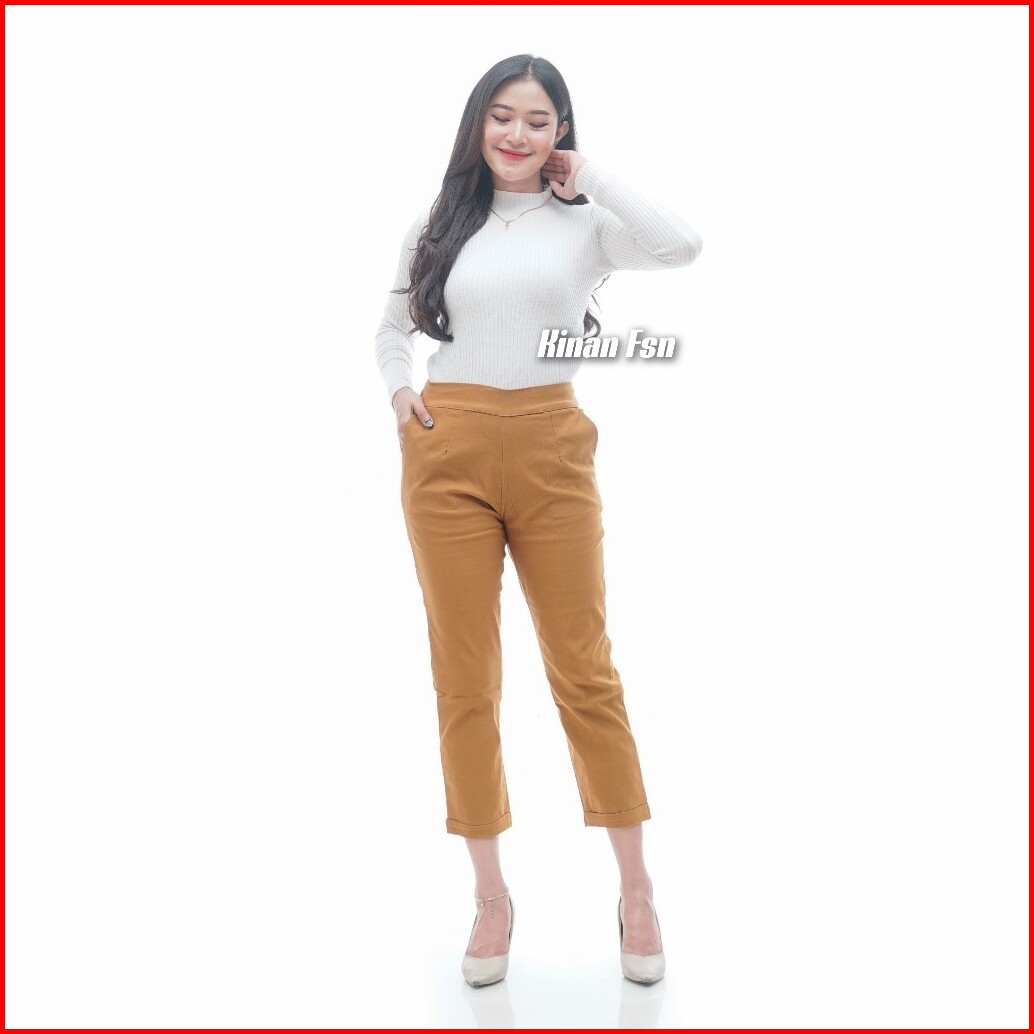 Gio Celana Katun Wanita Stretch 7 9 Gio Pants Chinos Tebal Melar