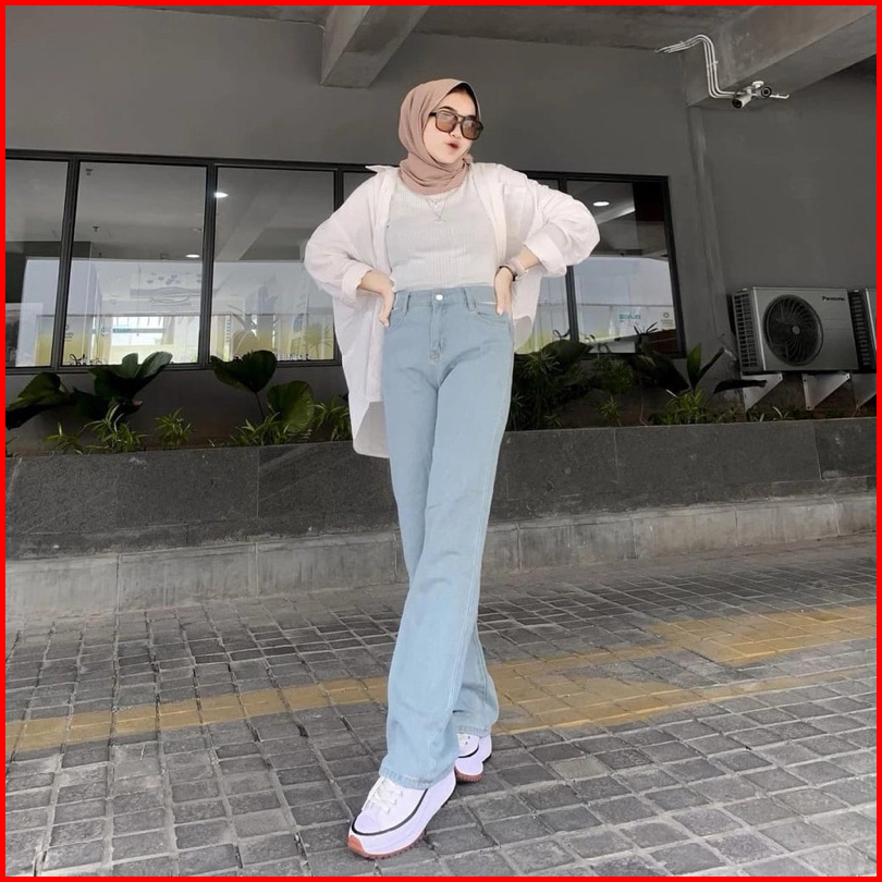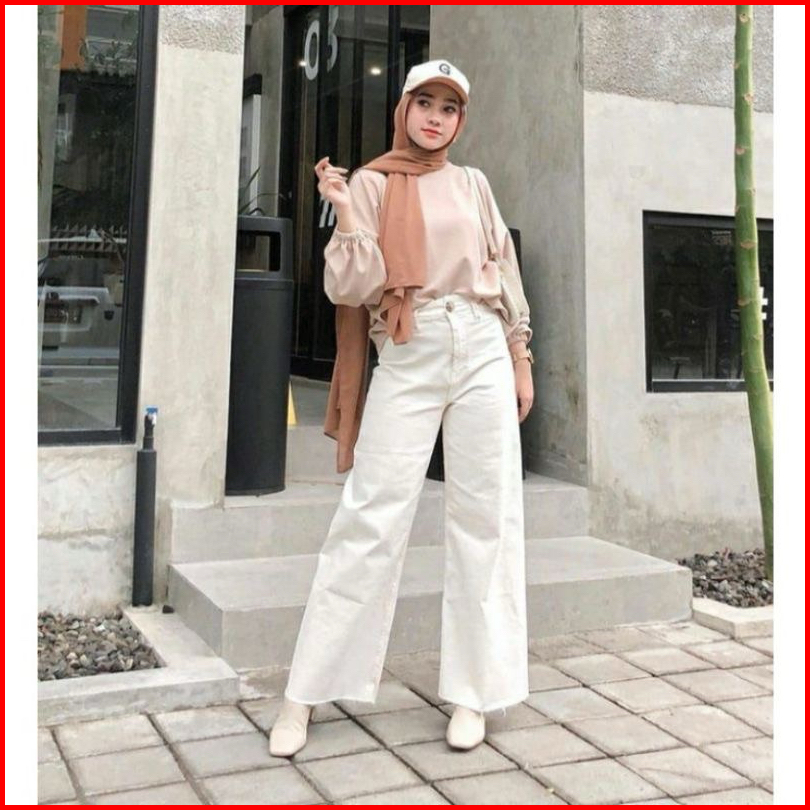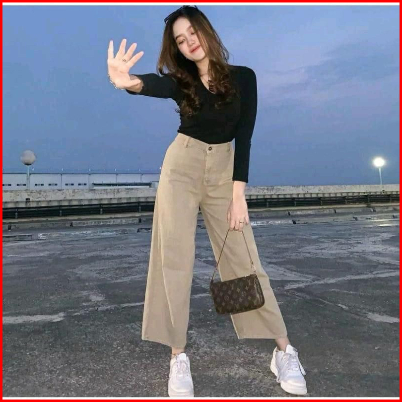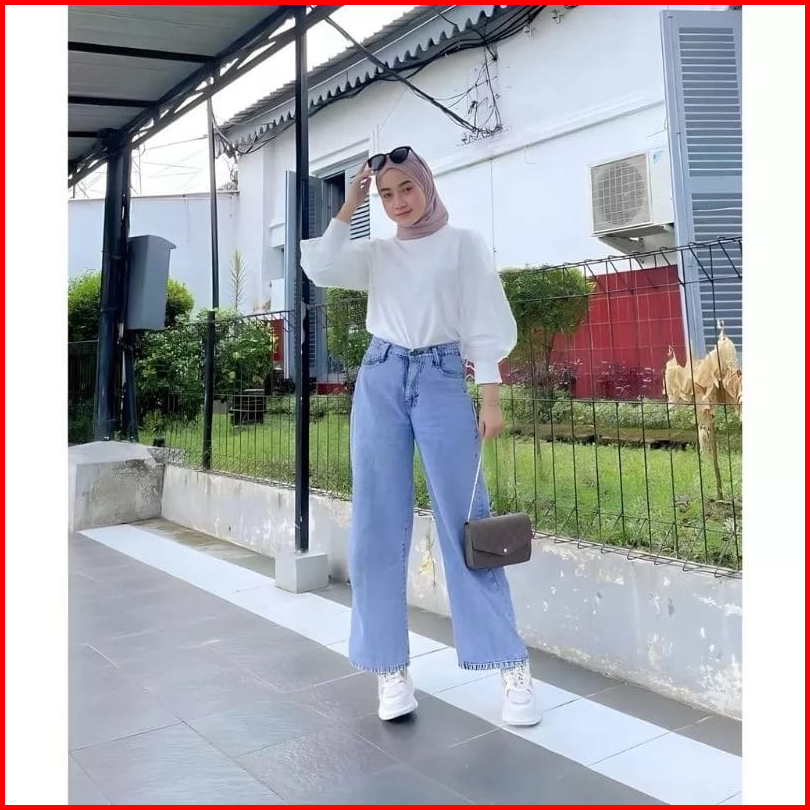 Celana Panjang Jeans Kulot Snow Black Snow Blue Wanita Celana Bawahan Haighwaist Kulot Snow Panjang Cewek