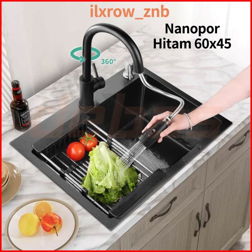 Paket Kitchen Sink 6045 Wastafel Cuci Piring Stainless Dengan Keran Tarik Keluar