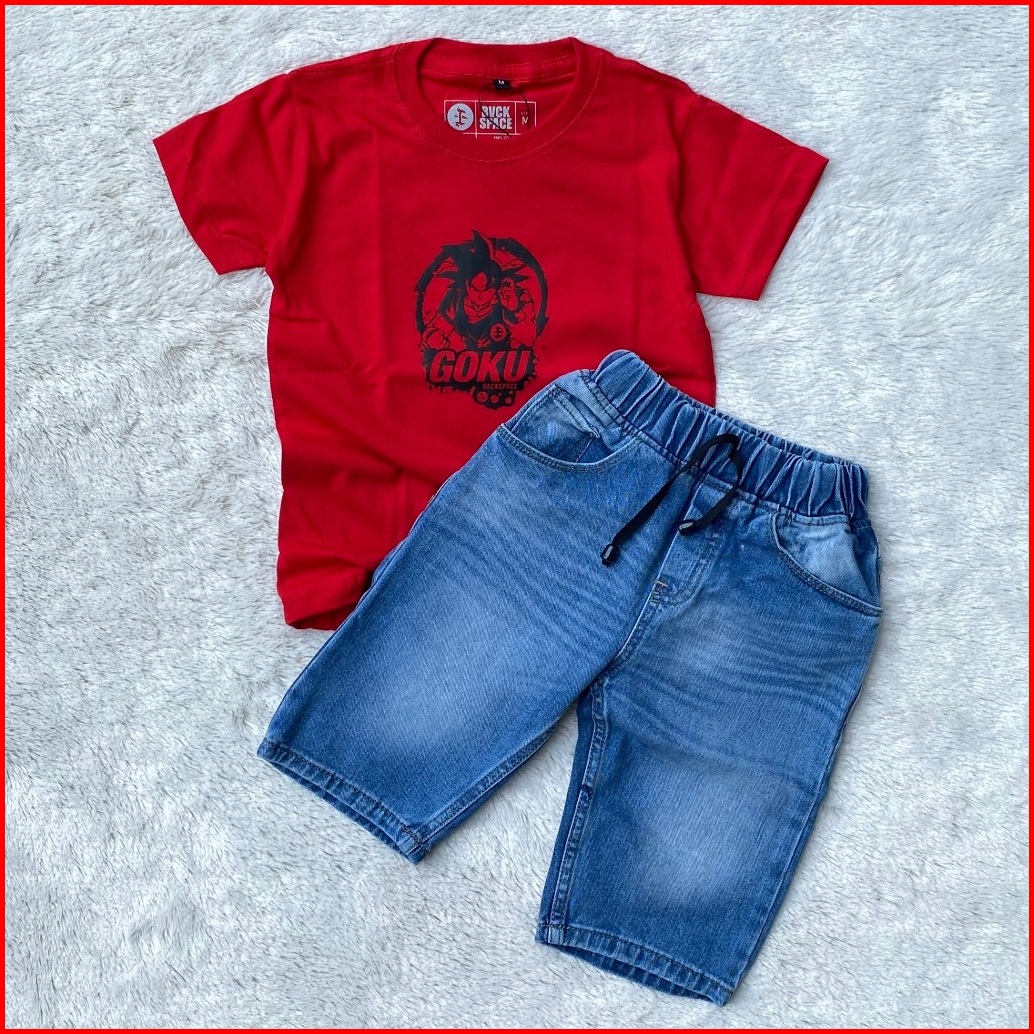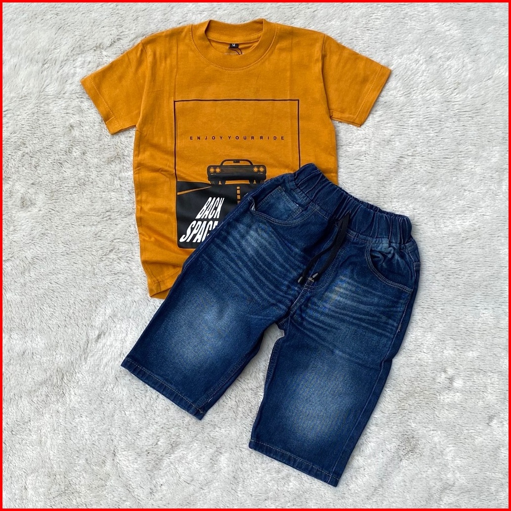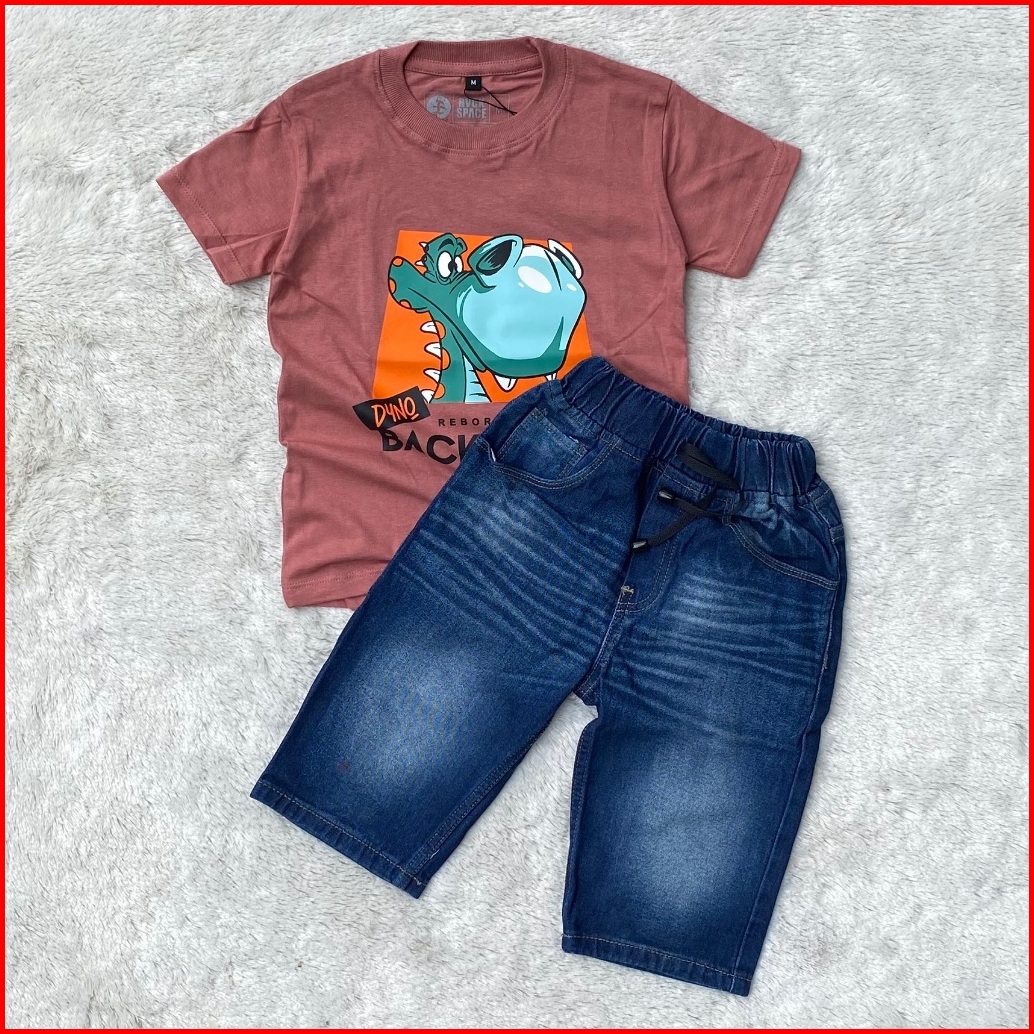Setelan Kaos Distro Anak Bahan Cotton Dan Jeans Pendek Laki-laki