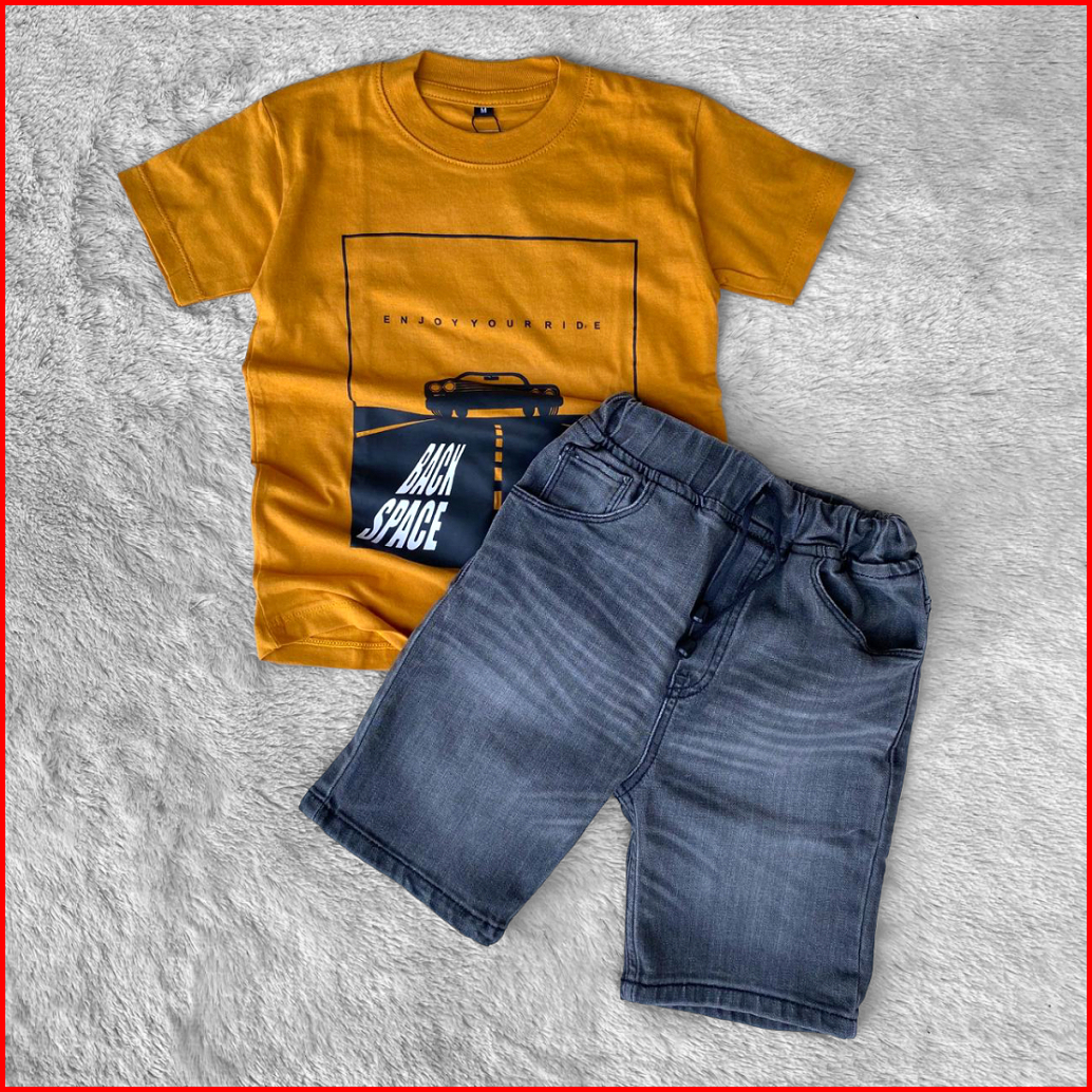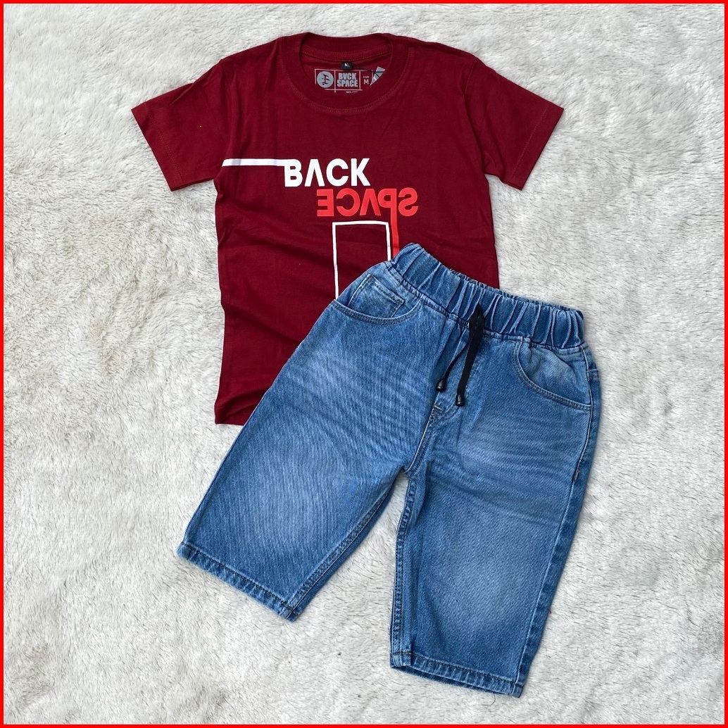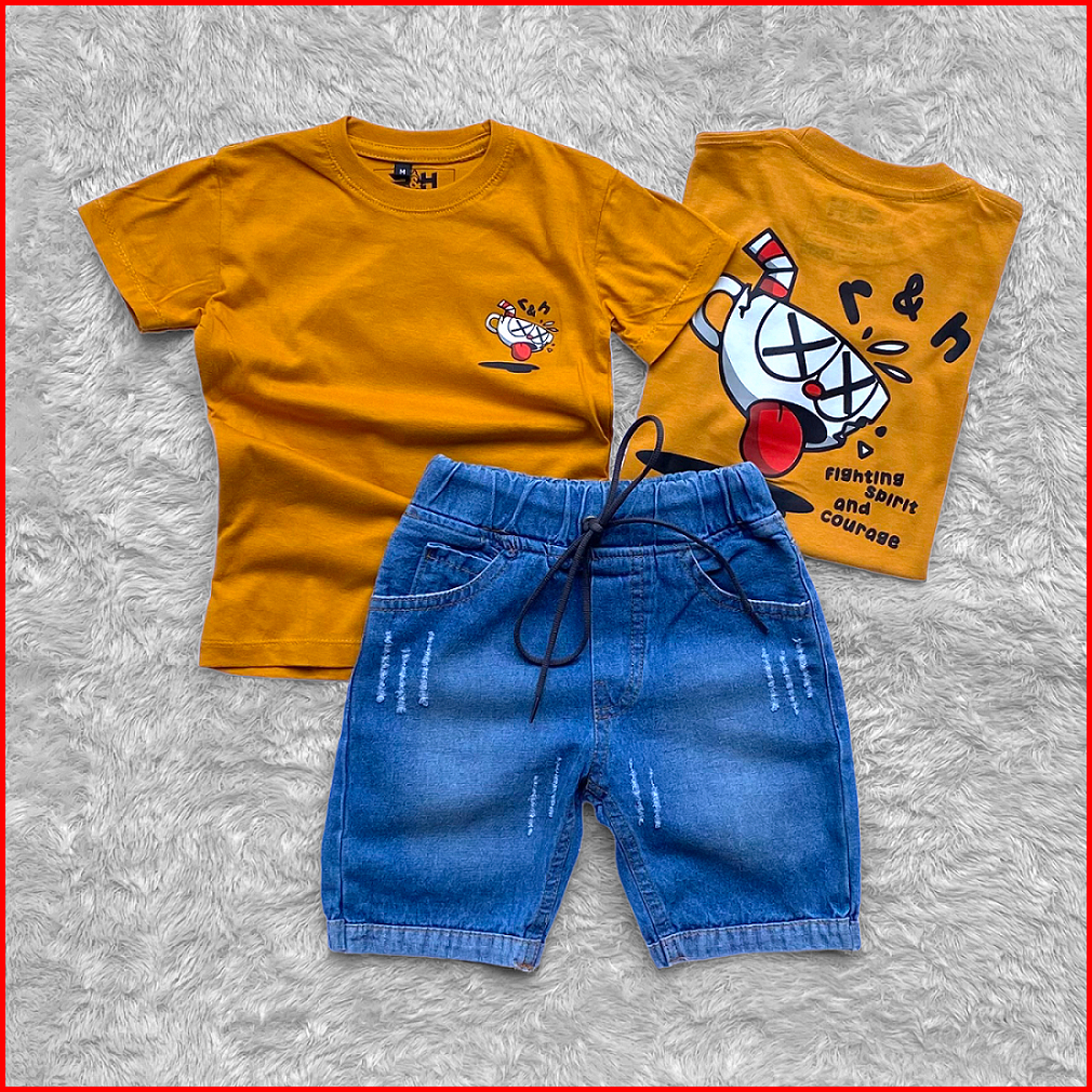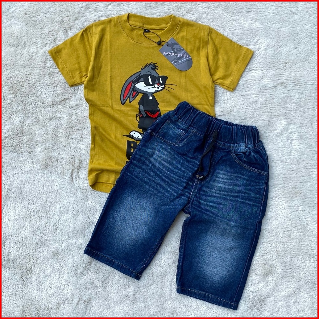 Setelan Kaos Distro Anak Bahan Cotton Dan Jeans Pendek Laki-laki