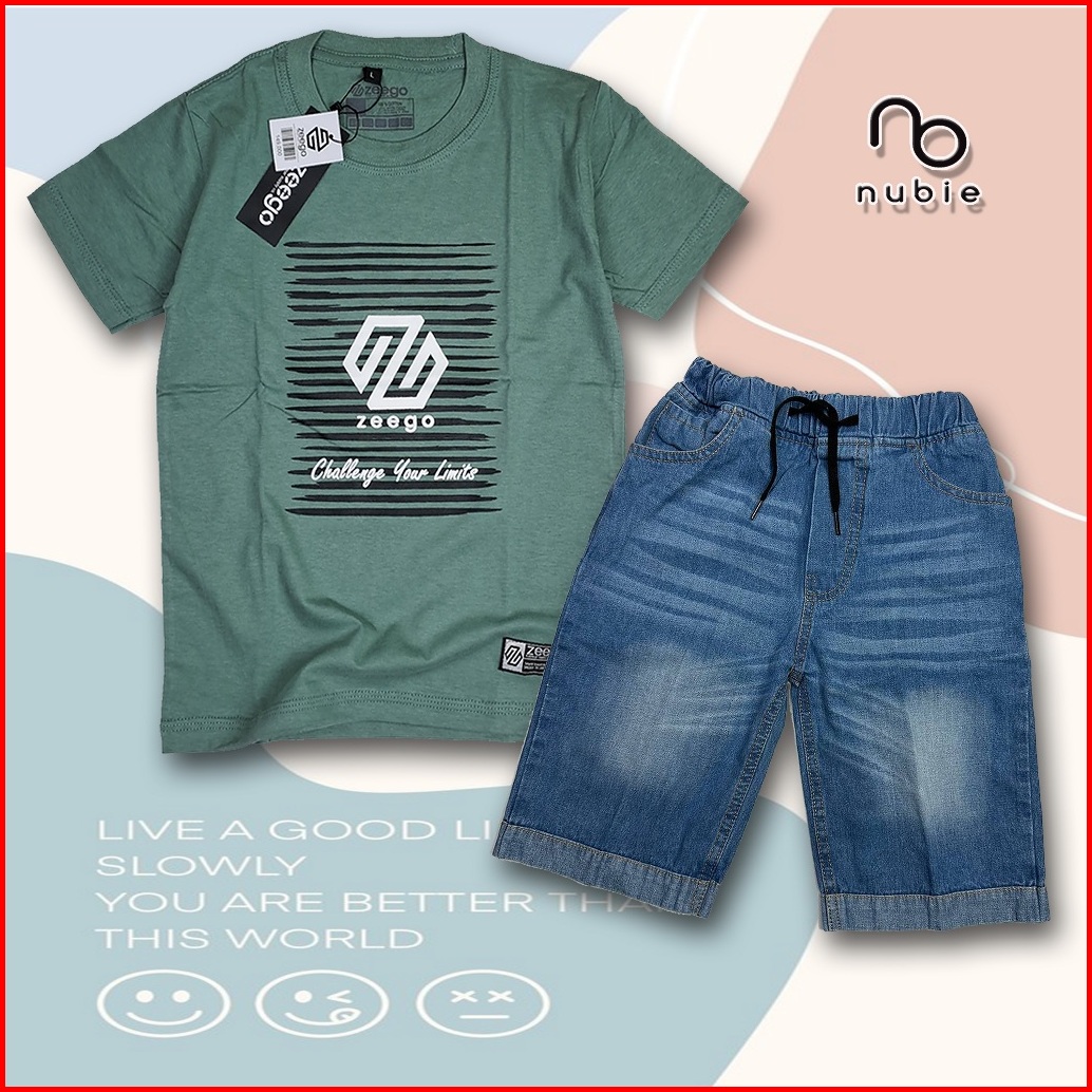 Kaos Setelan Pendek Jeans Anak Laki-laki Usia 3-12 Tahun