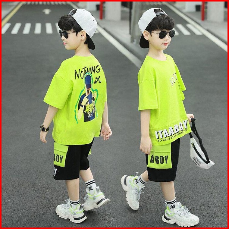Amspro -setelan Anak Laki-laki Bentley Baju Kaos Kasual 7-8 9-10 11-12 Tahun Model Terbaru Tren 2024